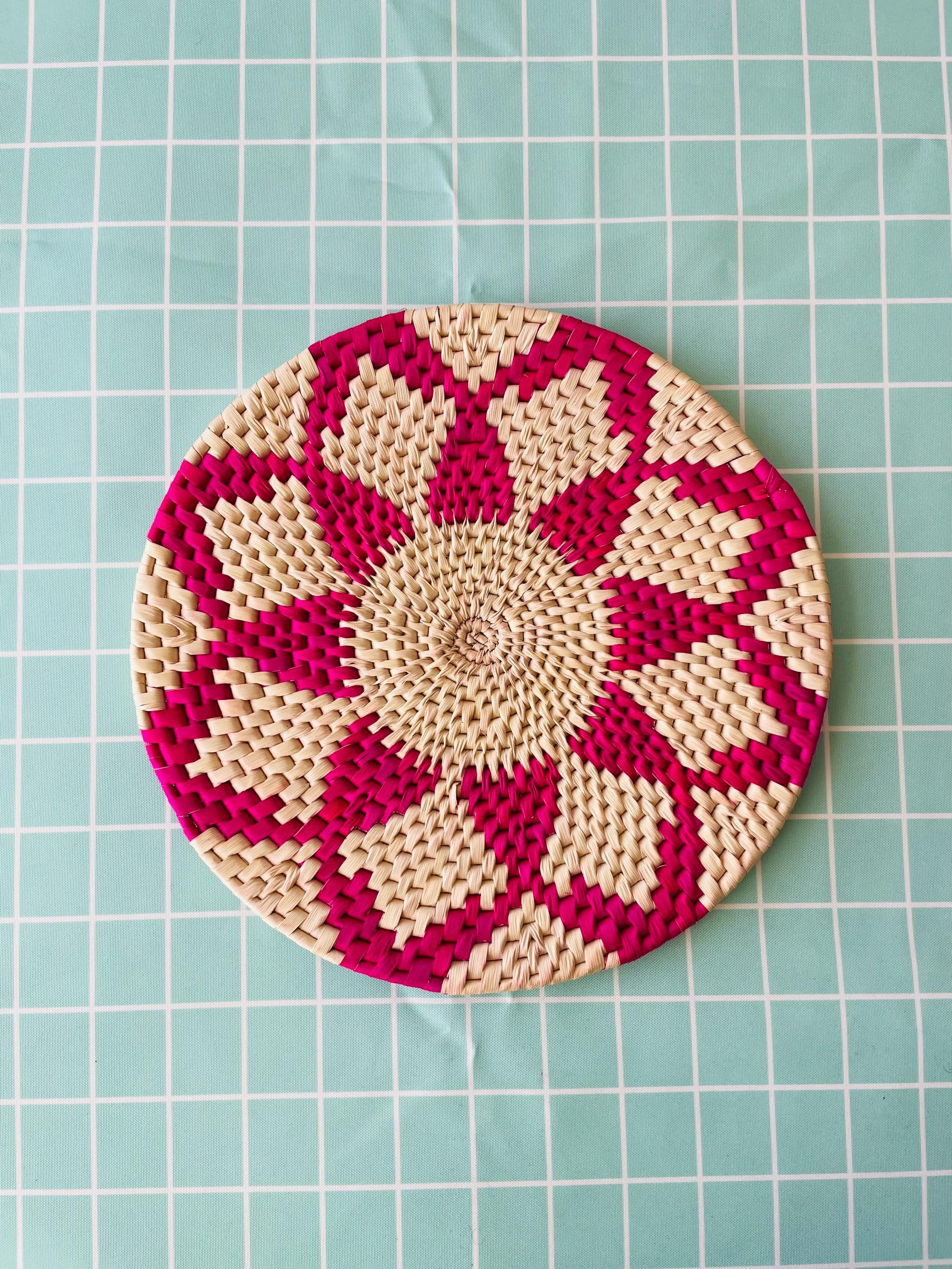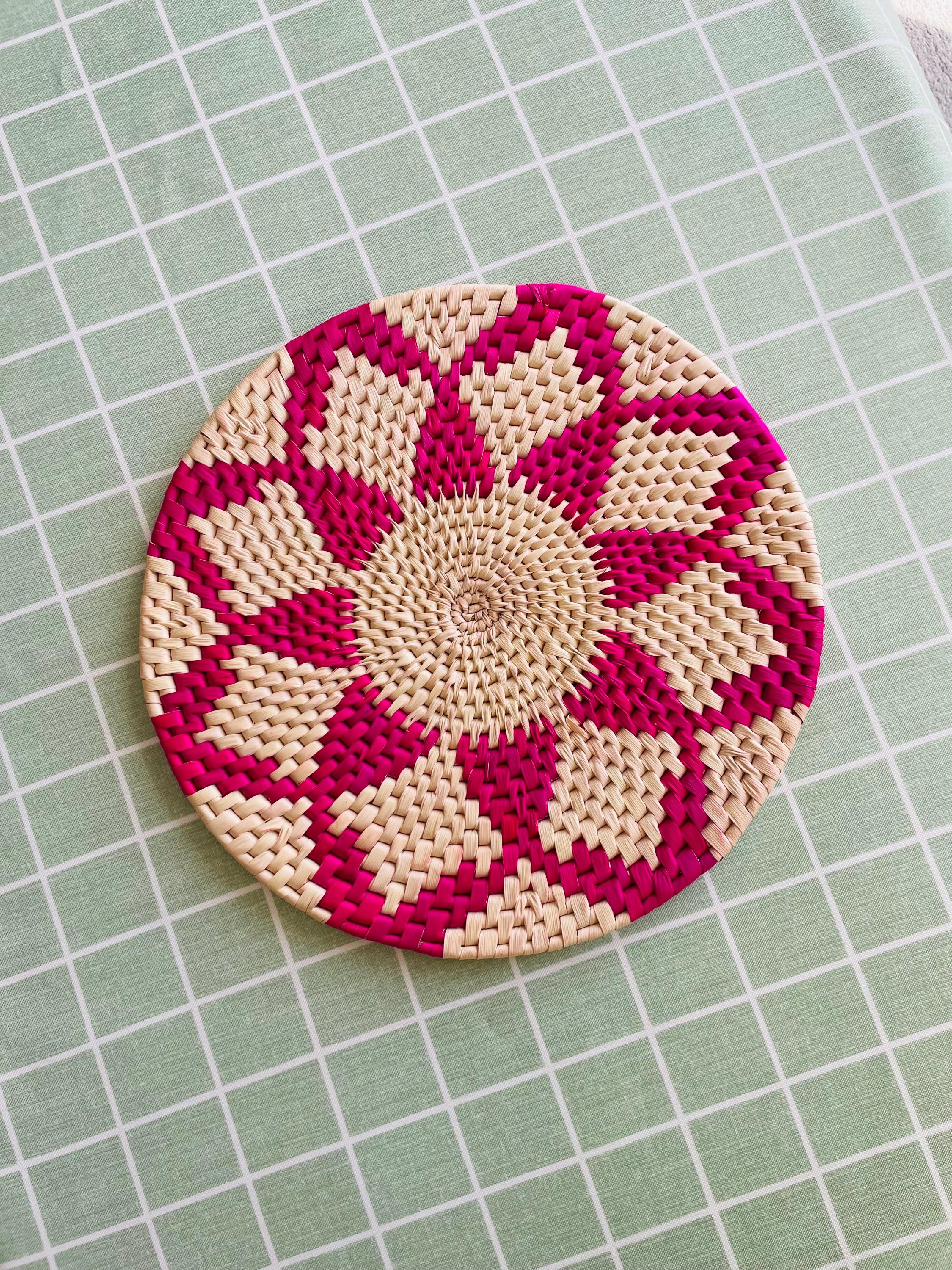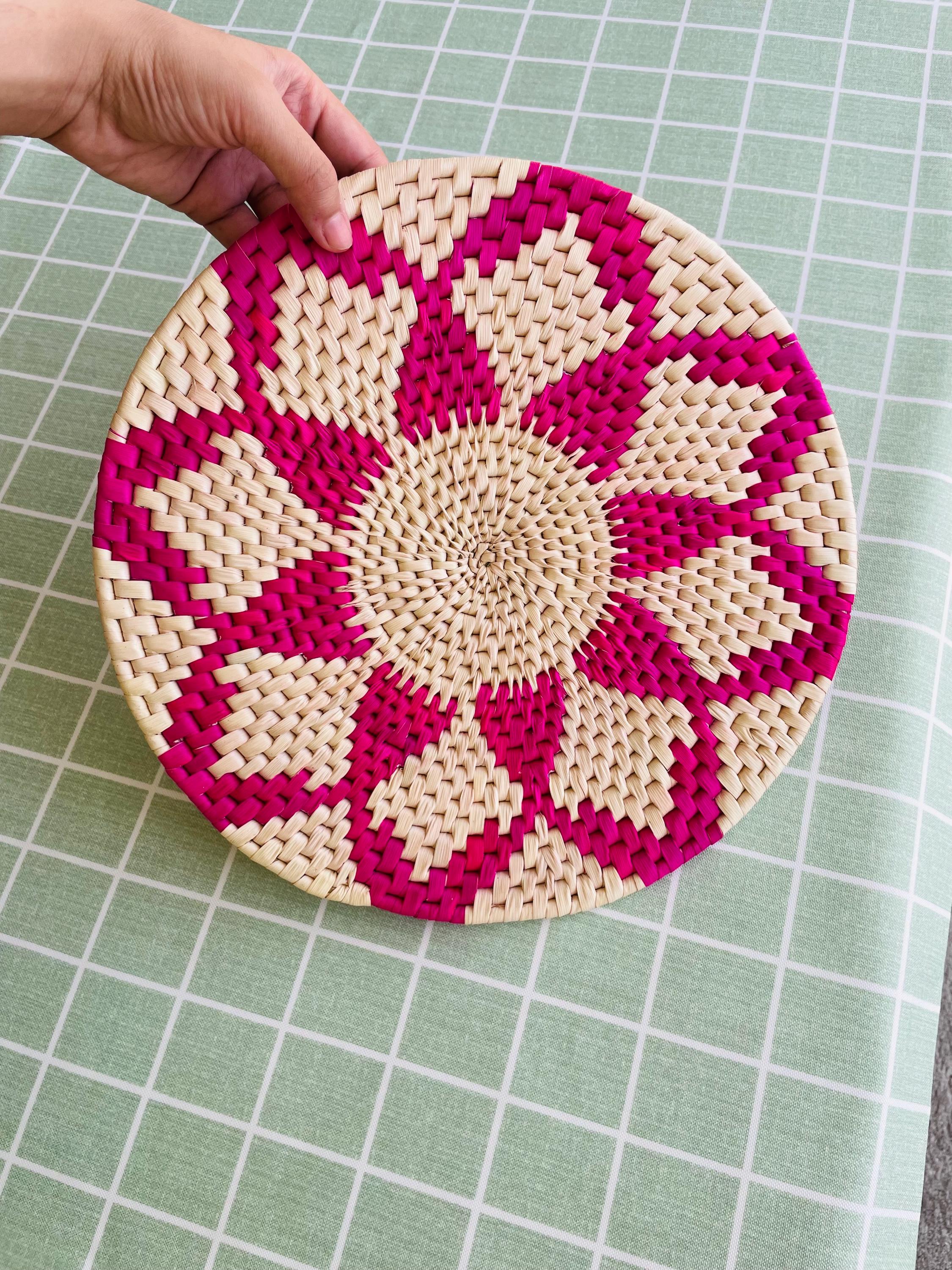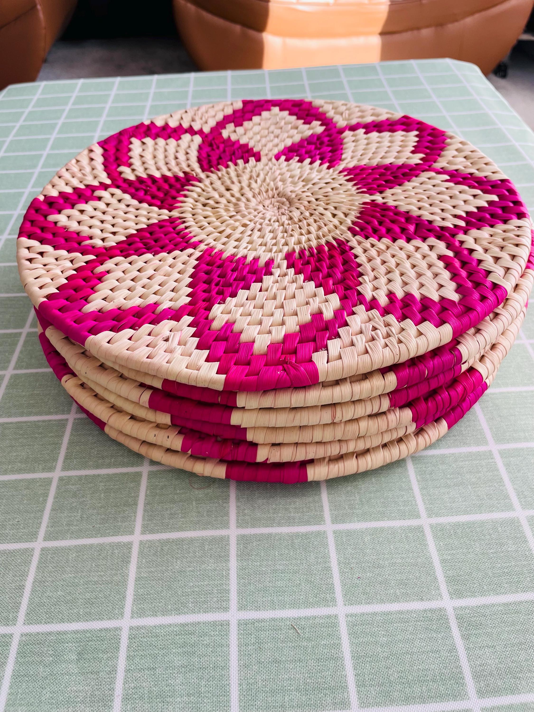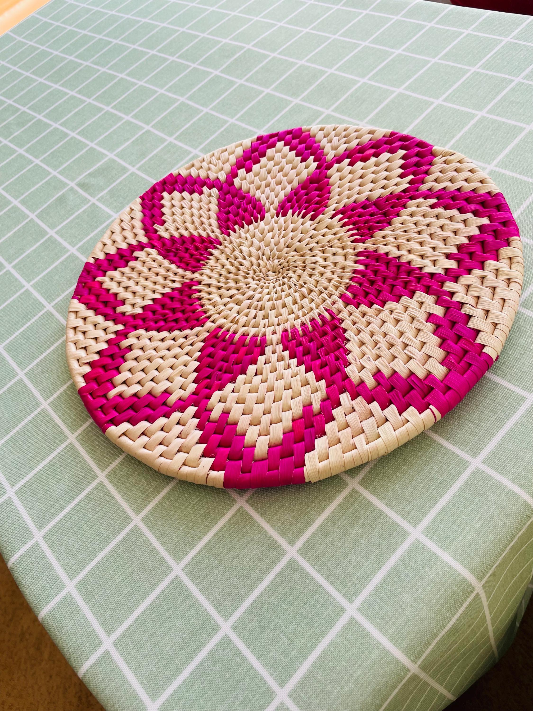 Add natural texture to your table! This pink placemat is made from date palm fiber gathered from the various palm plantations that surround the artisans' village. Natural materials means that each woven placemat has its own unique color variations.