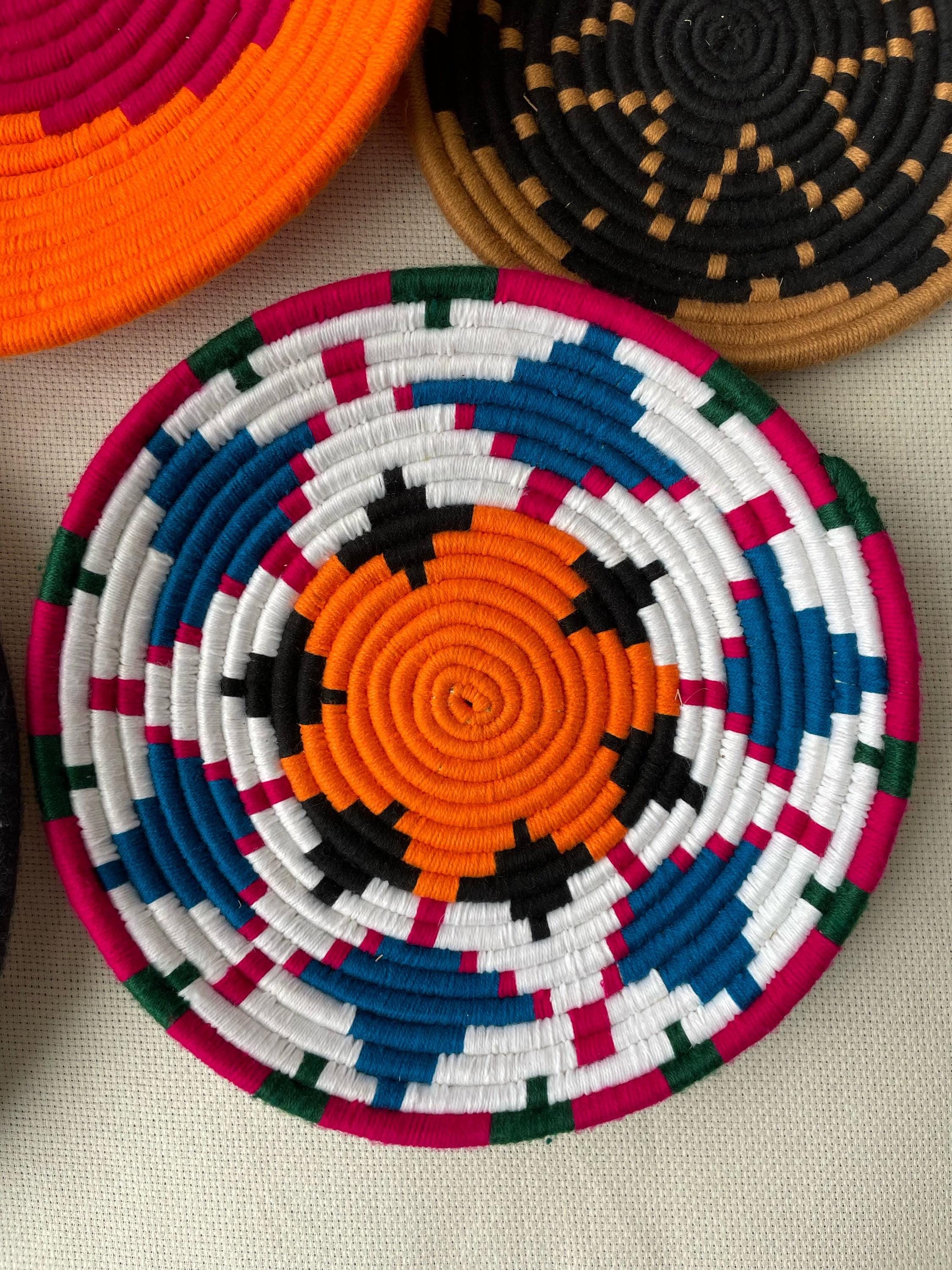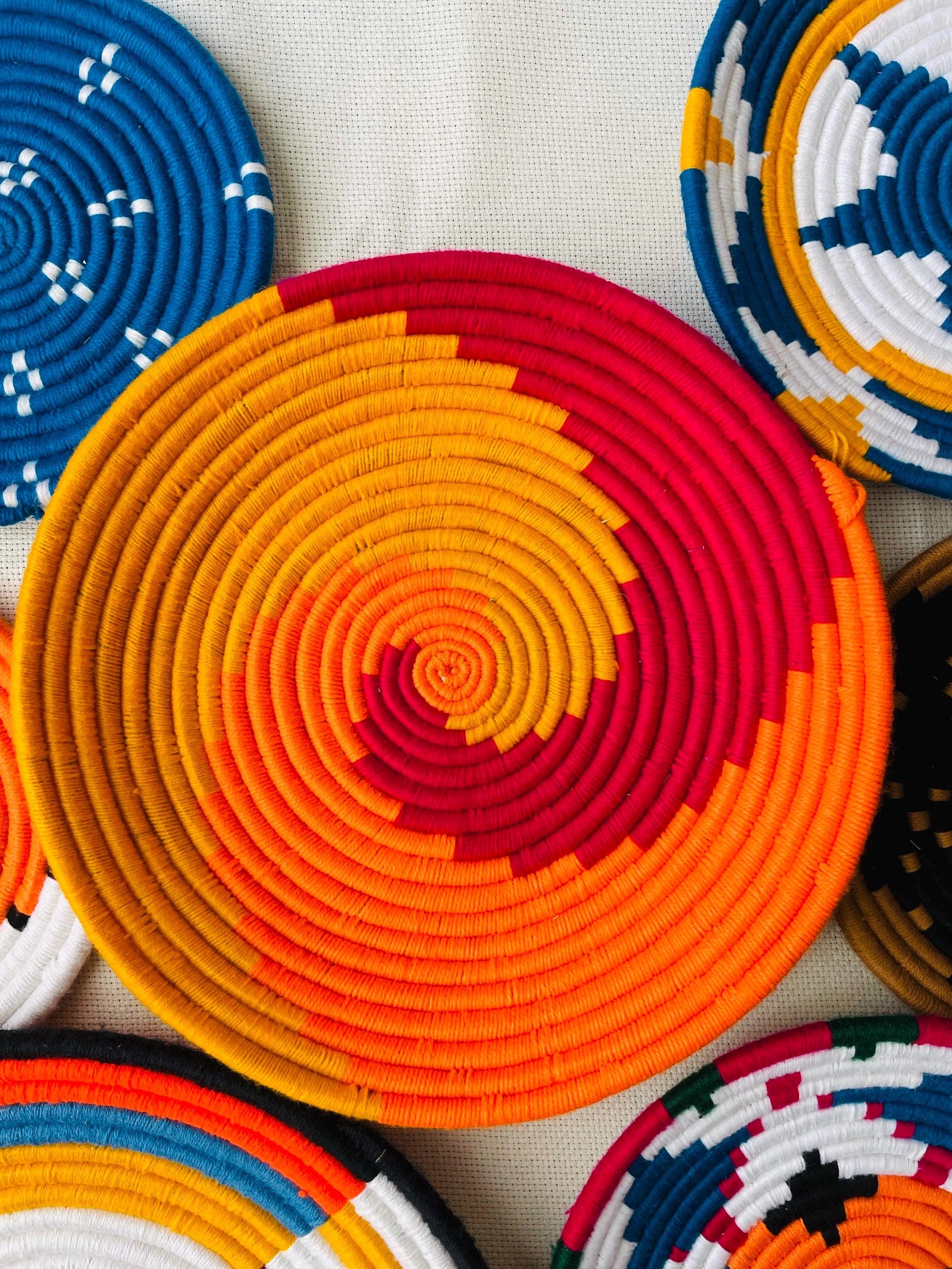 Create a unique atmosphere in every corner of your home with elegant and colorful handwoven wall baskets.