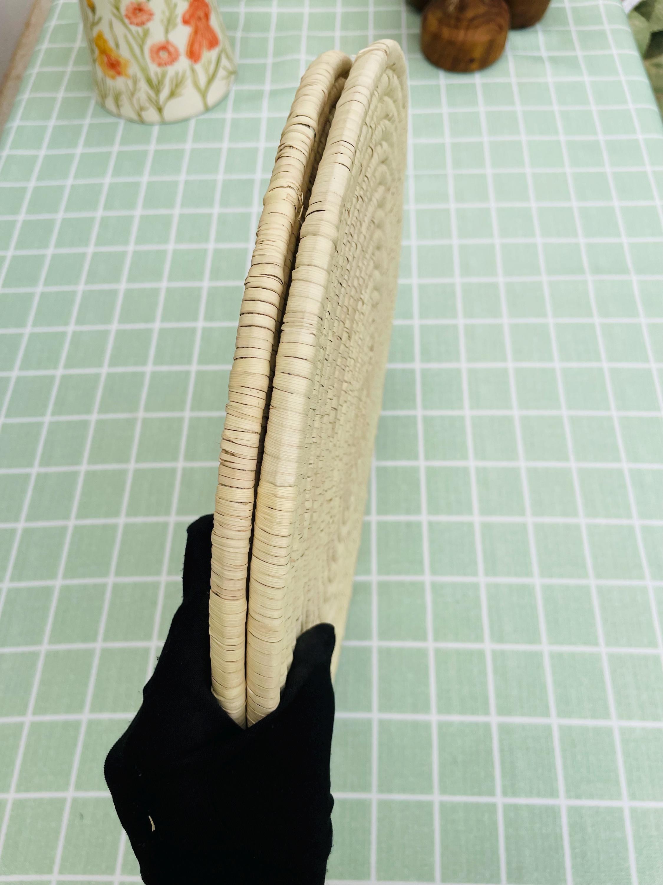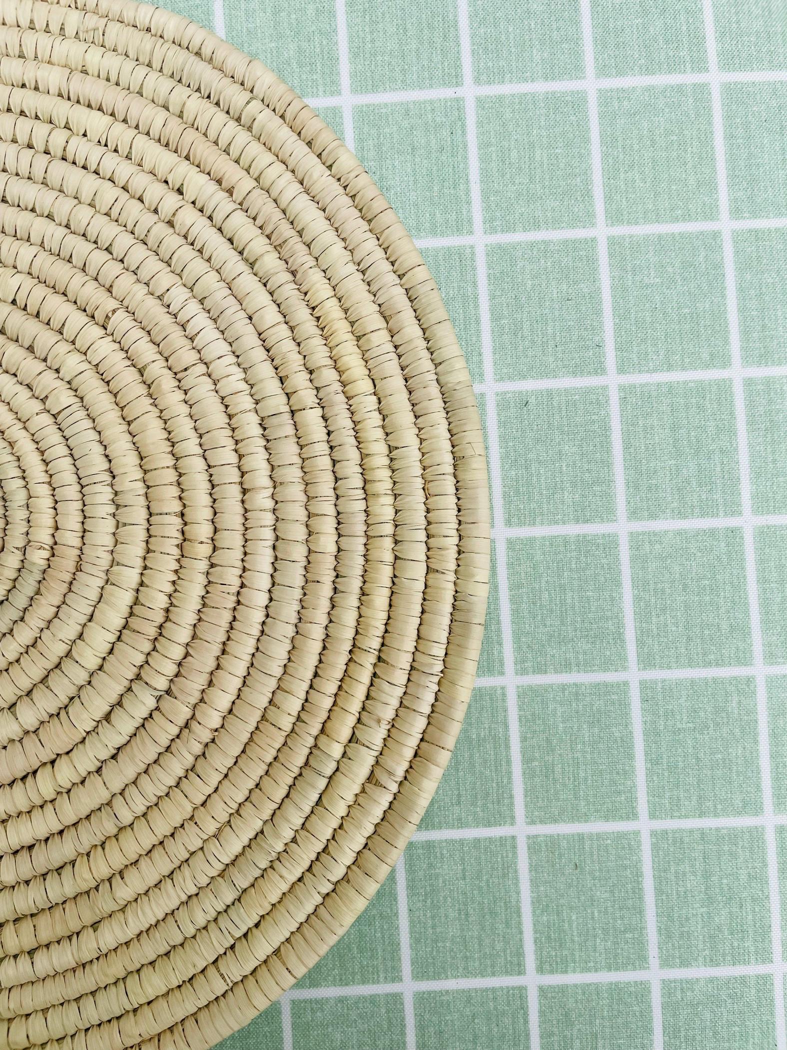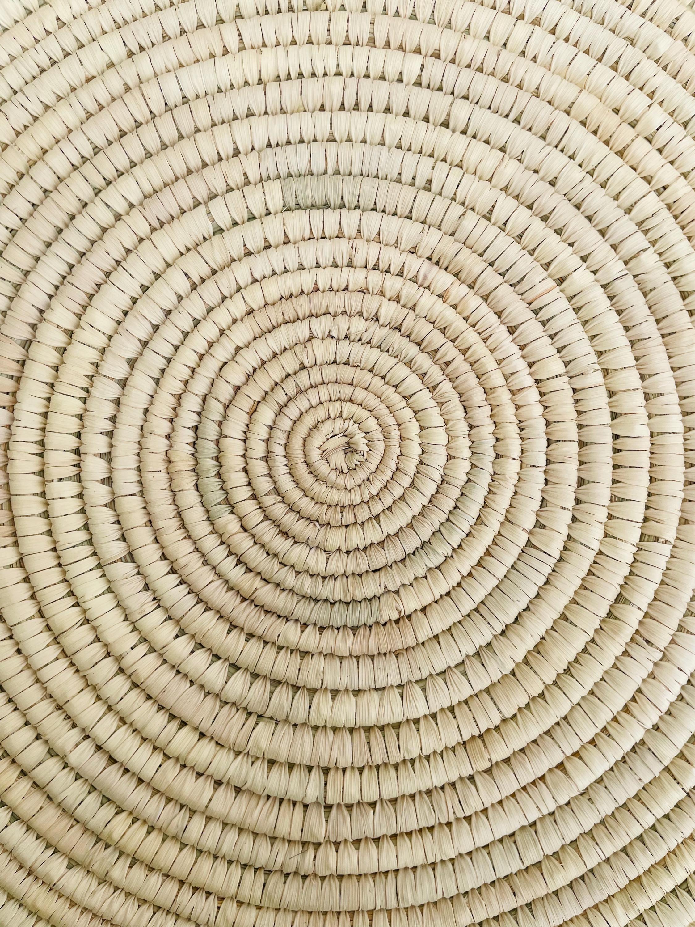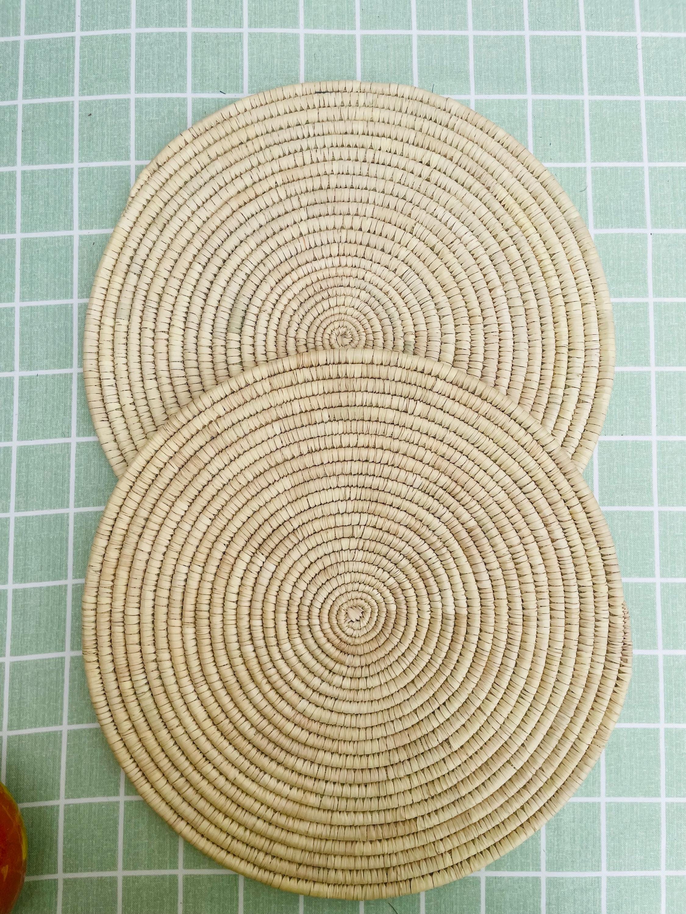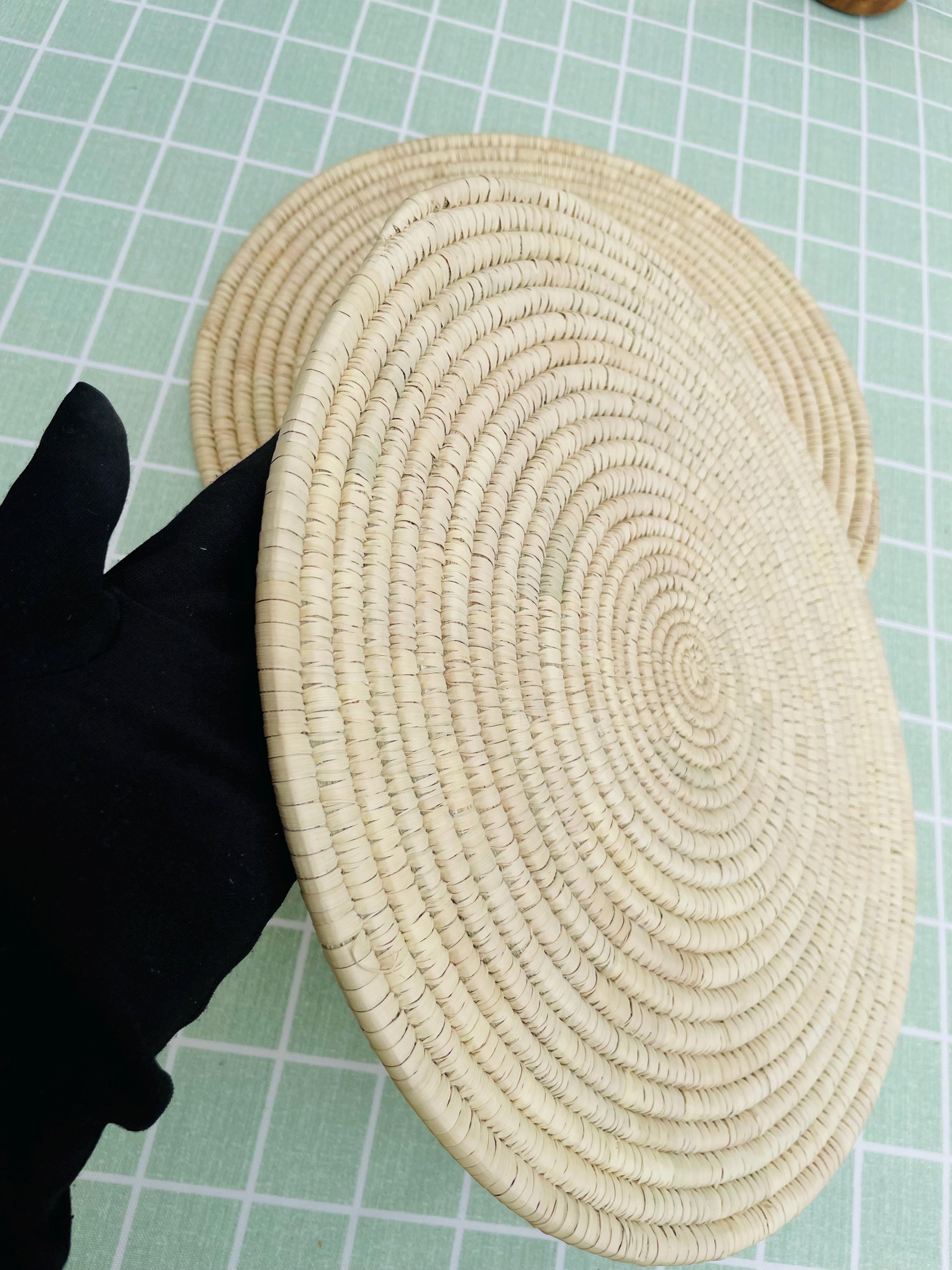These hand woven round placemats is made from date palm fiber gathered from the various palm plantations that surround the artisans' village.