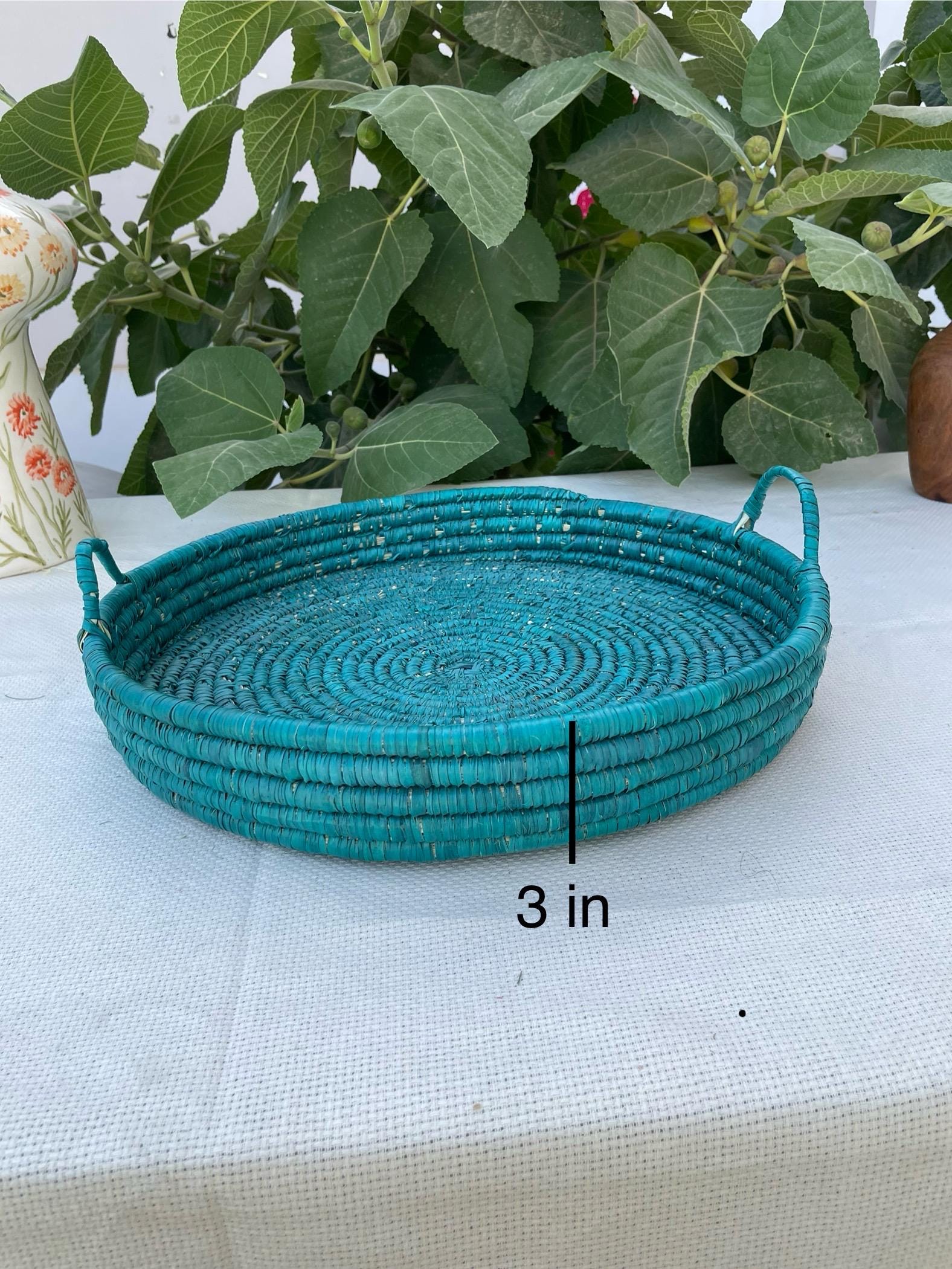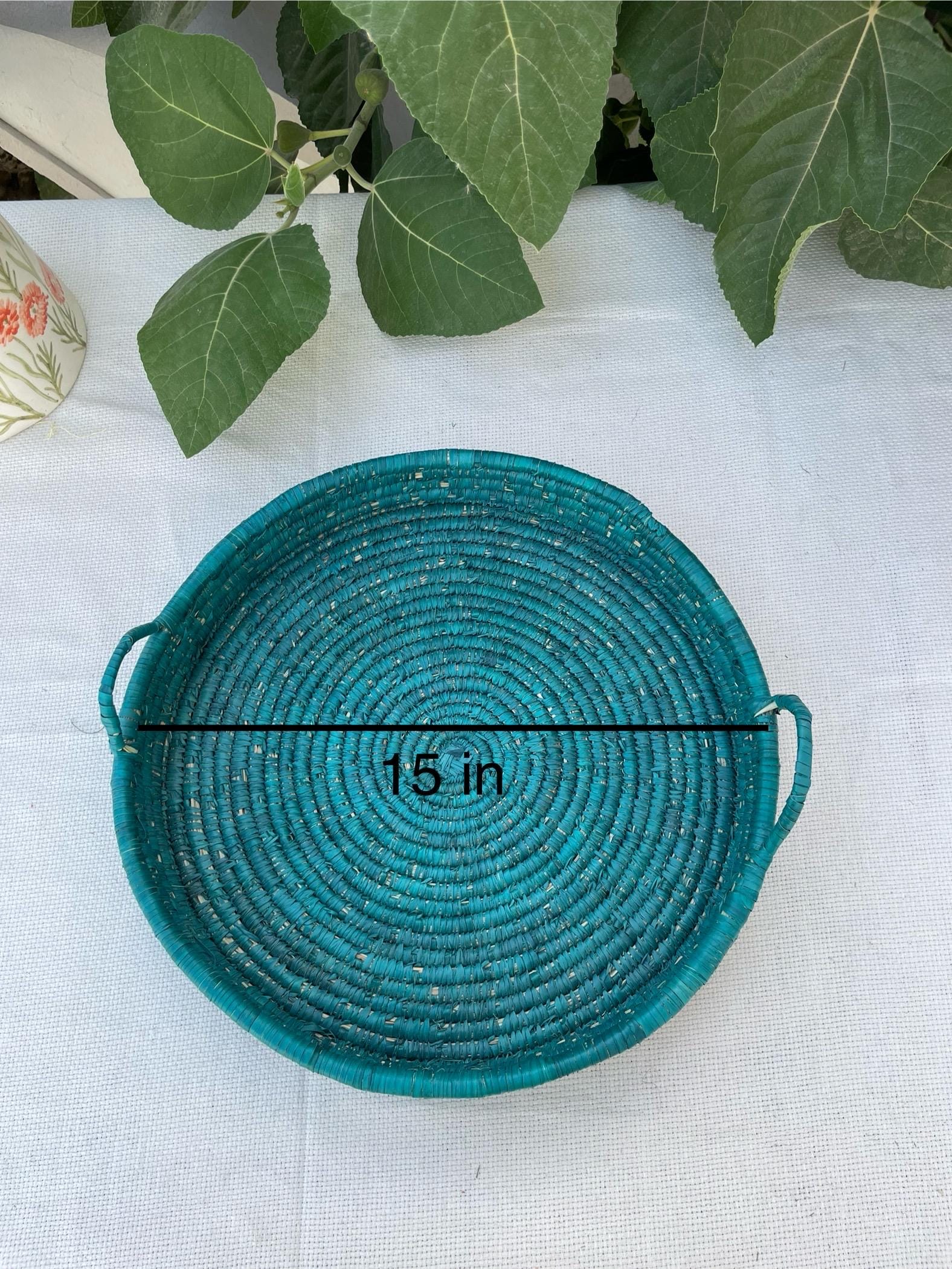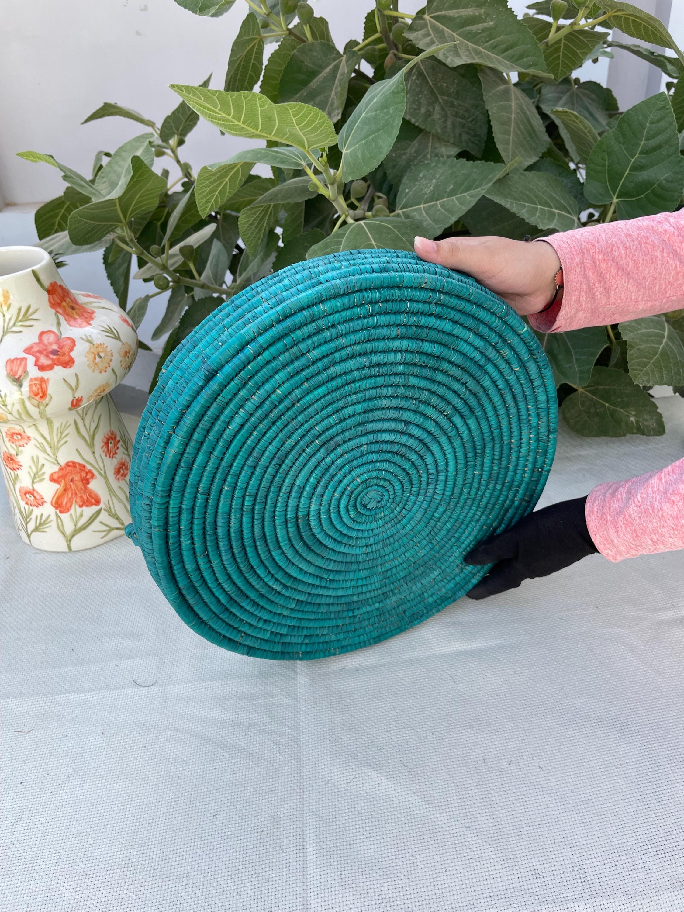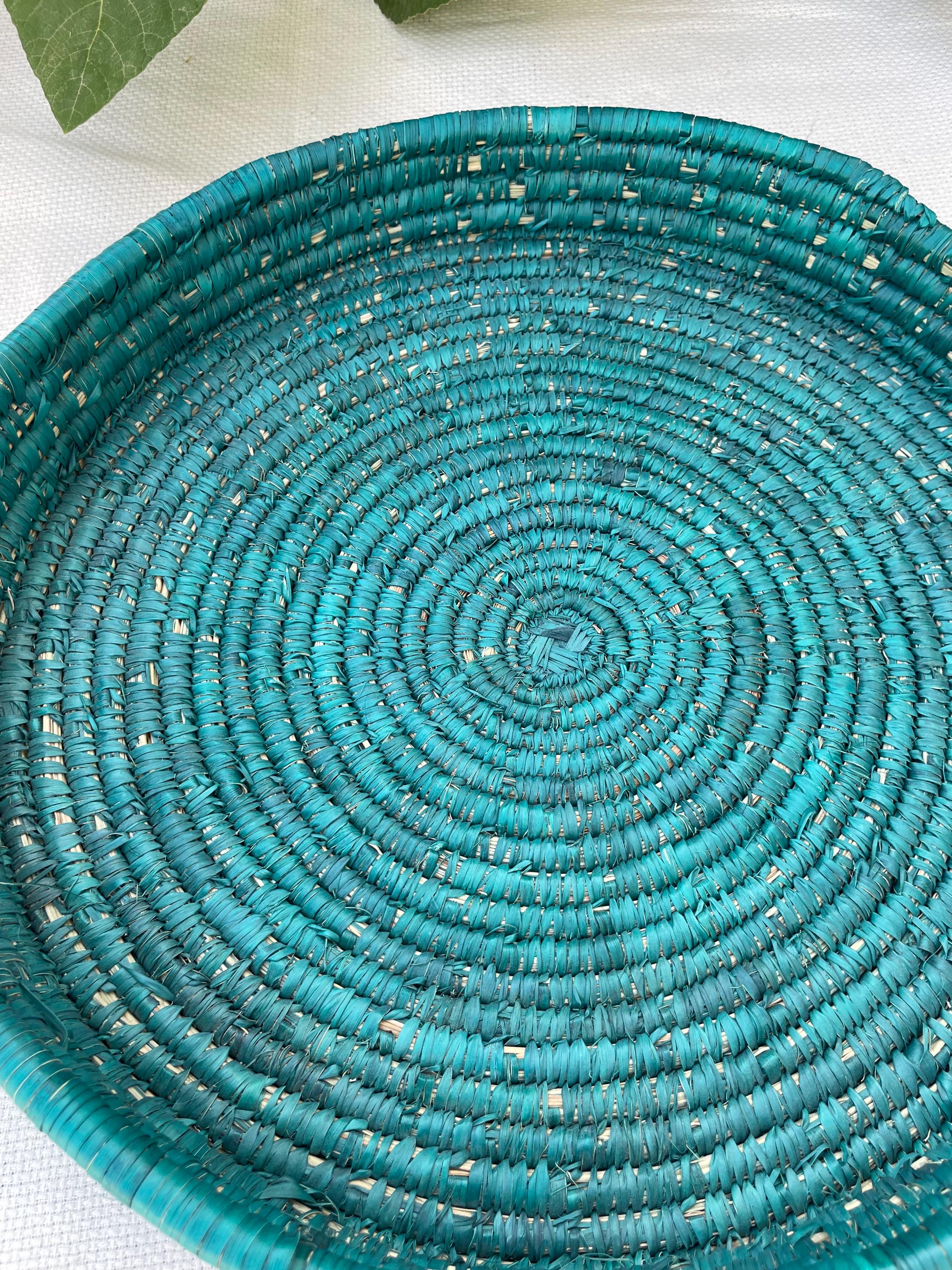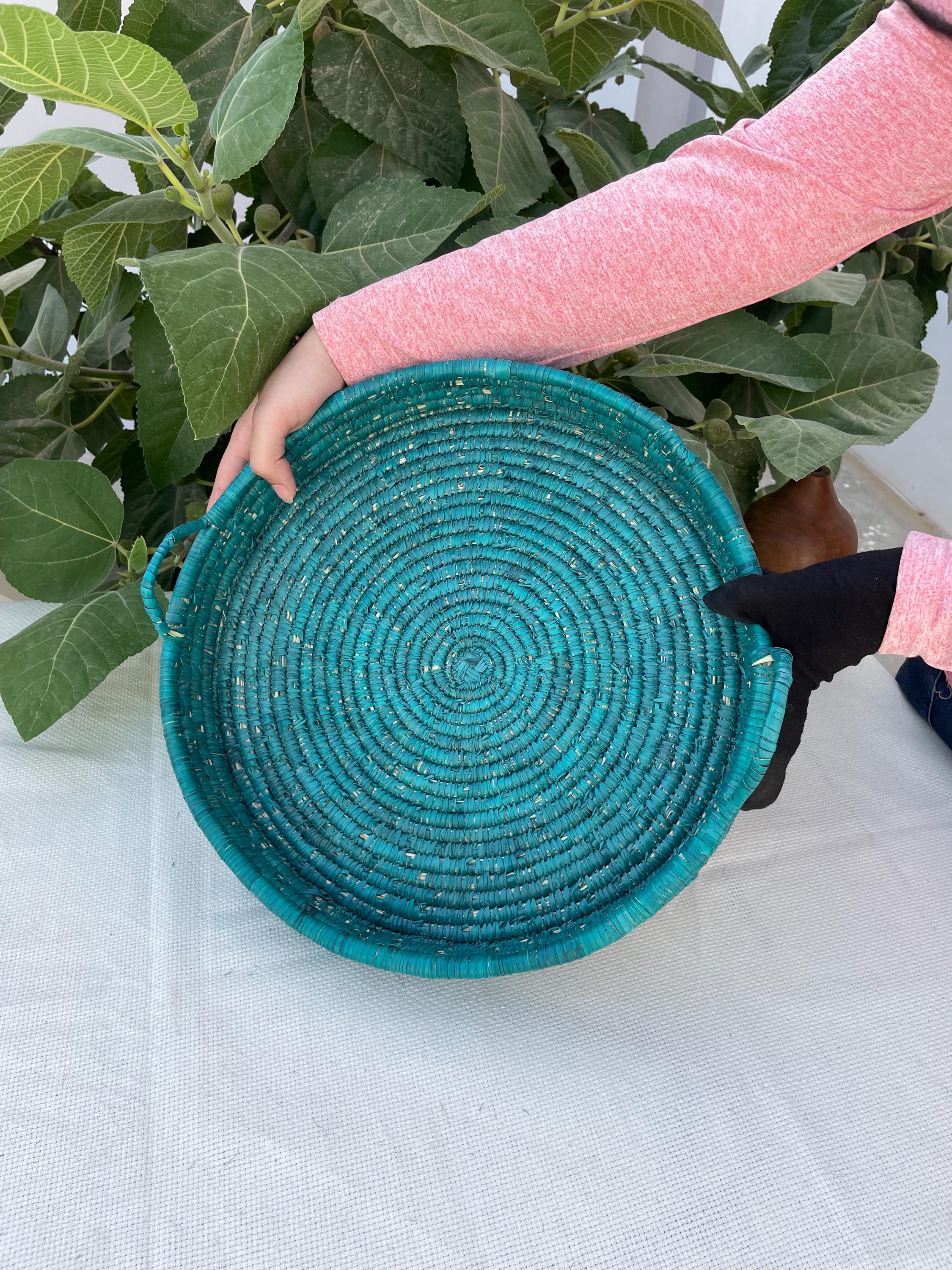 This handmade boho basket tray is made from date palm fiber gathered from the various palm plantations that surround the artisans' village.