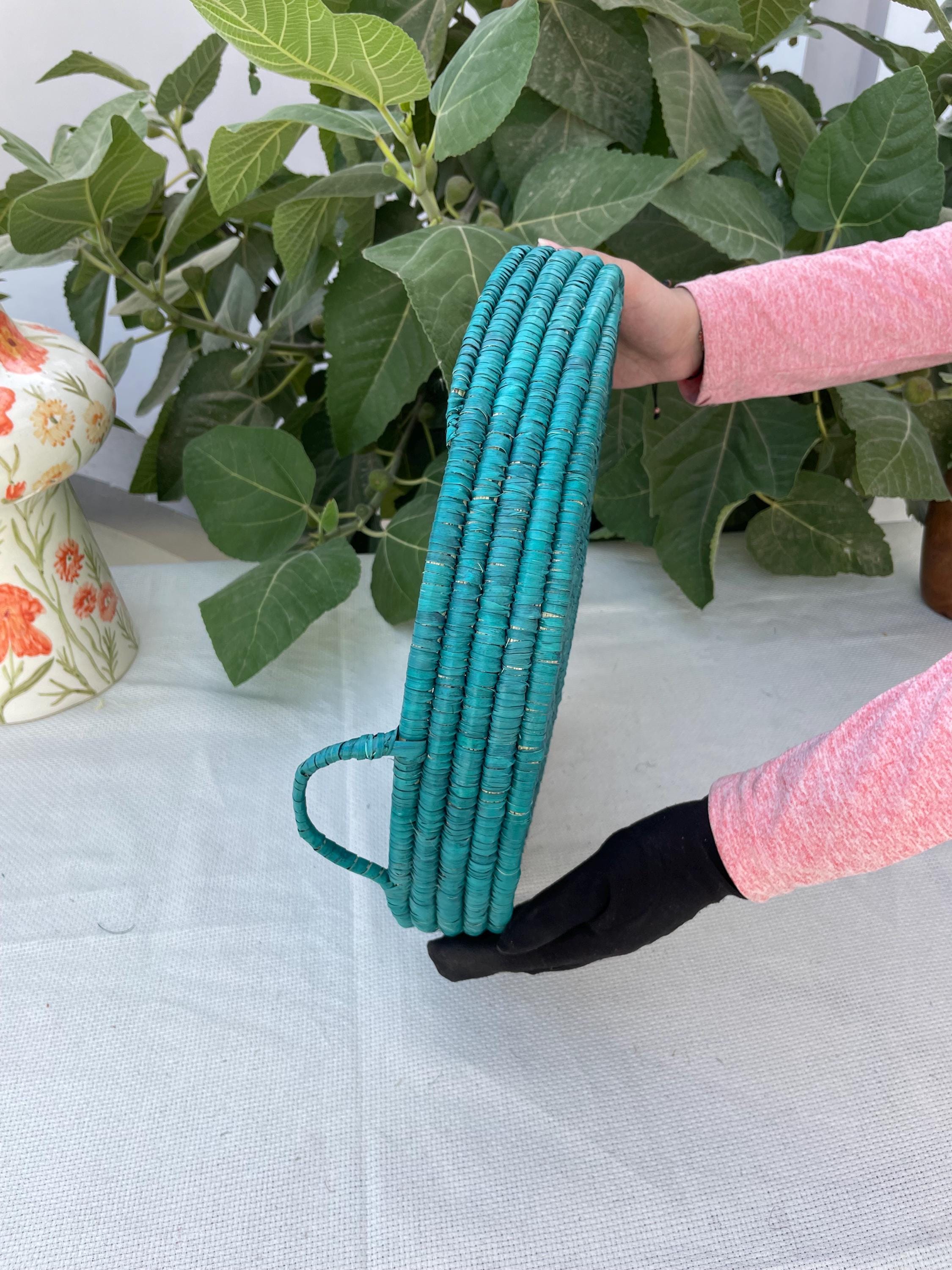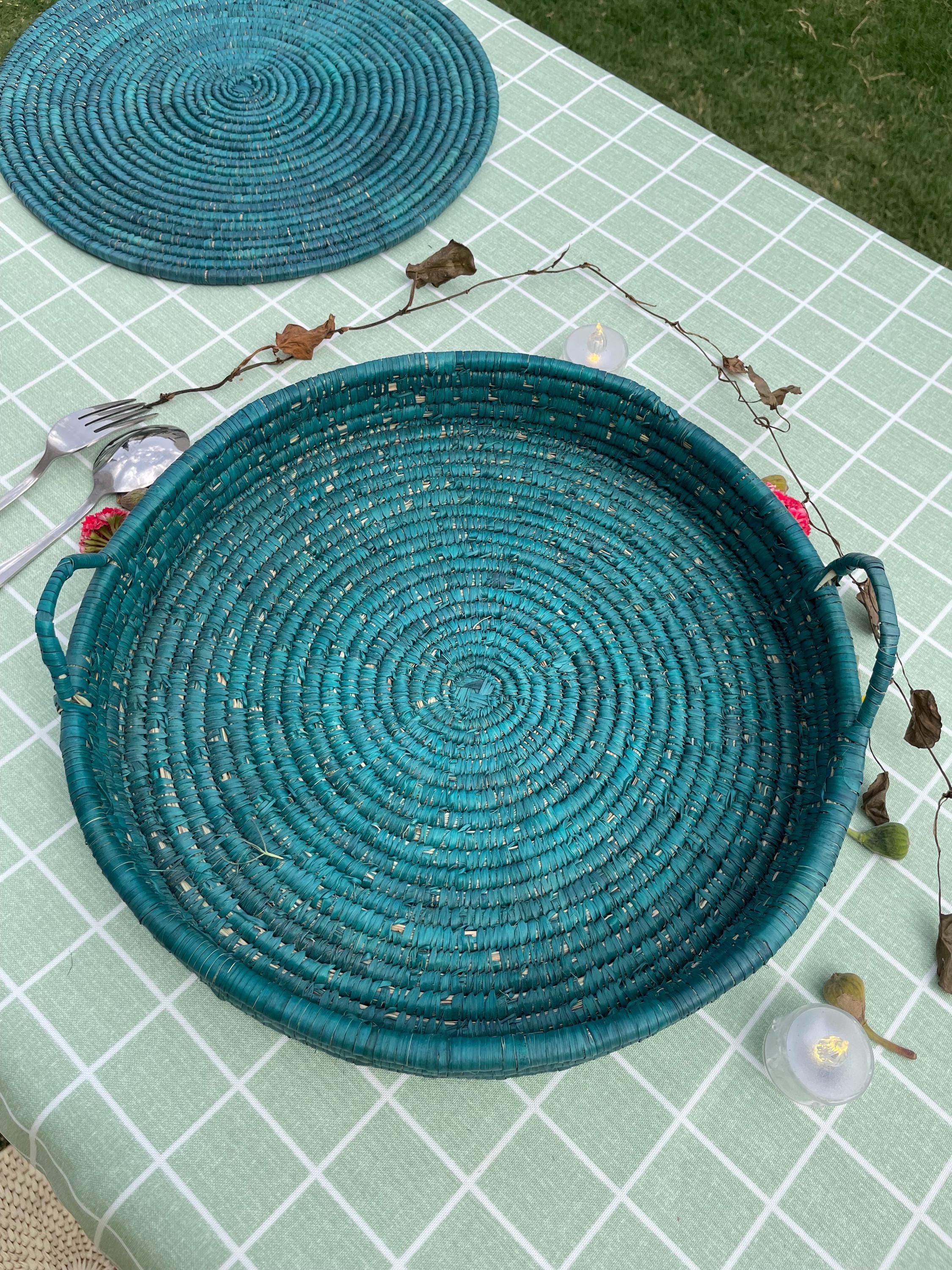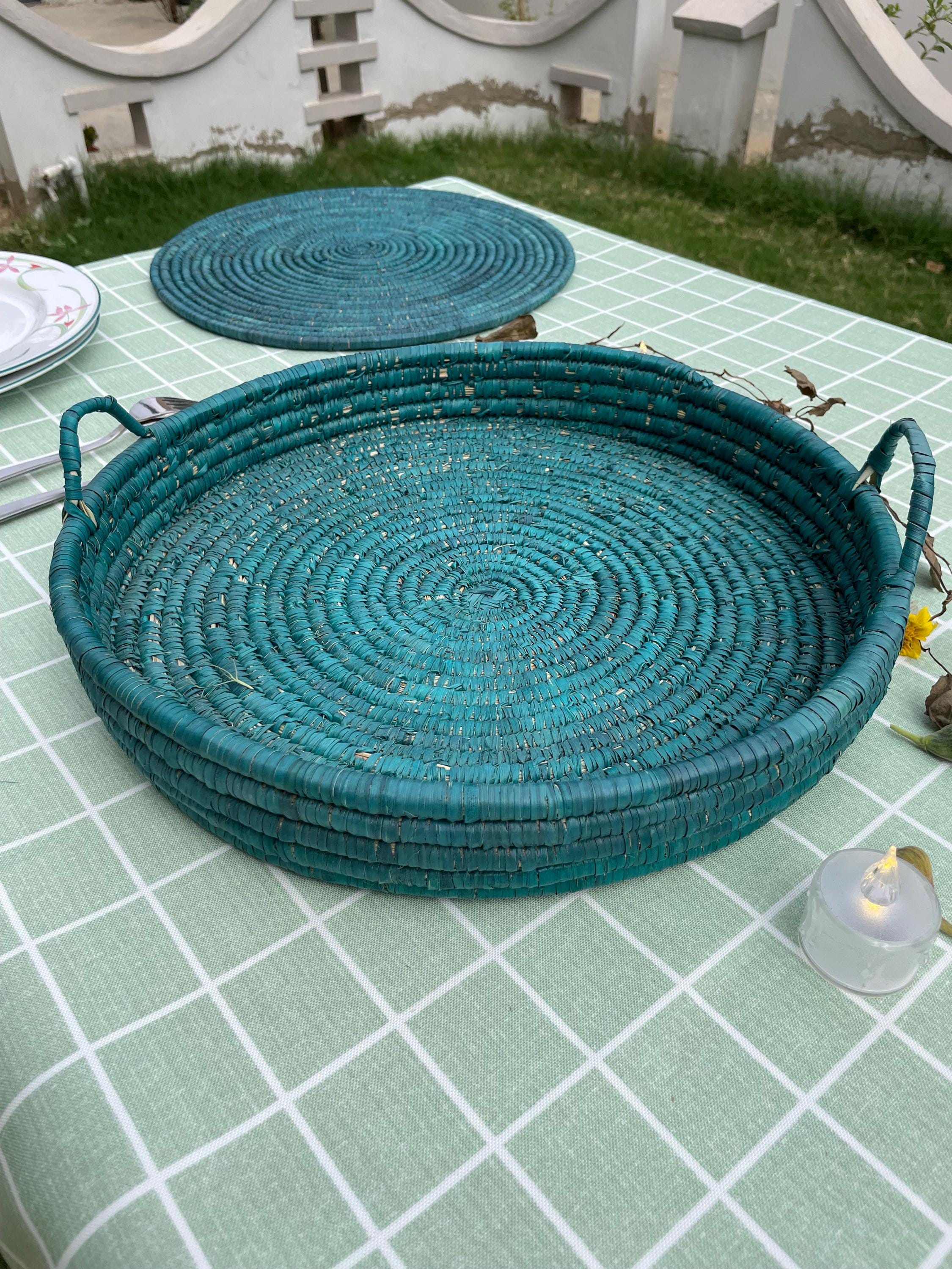 Each beautiful woven tray is sold individually and features a dyed green rustic color that pairs perfectly with both modern and traditional dinnerware.