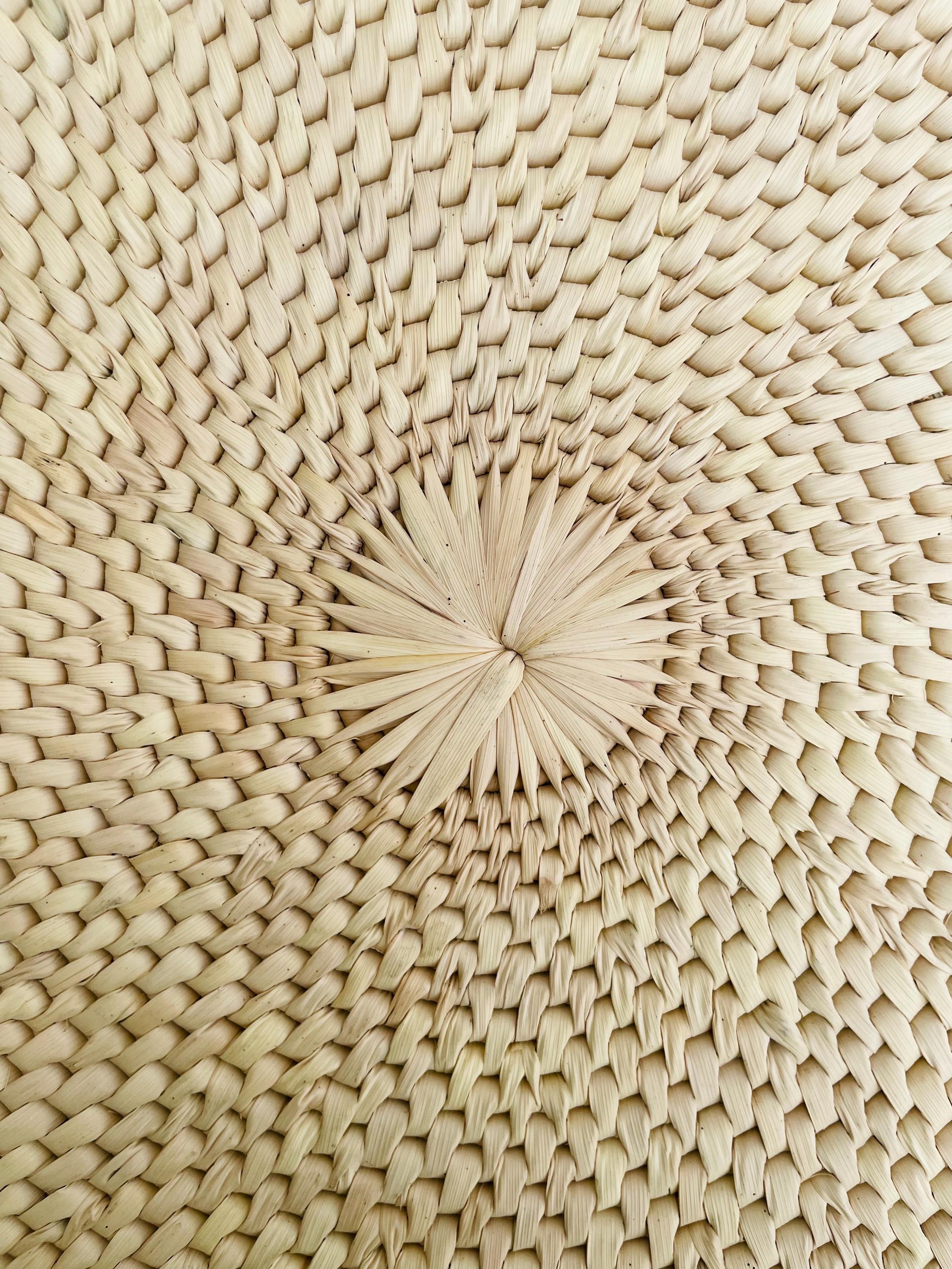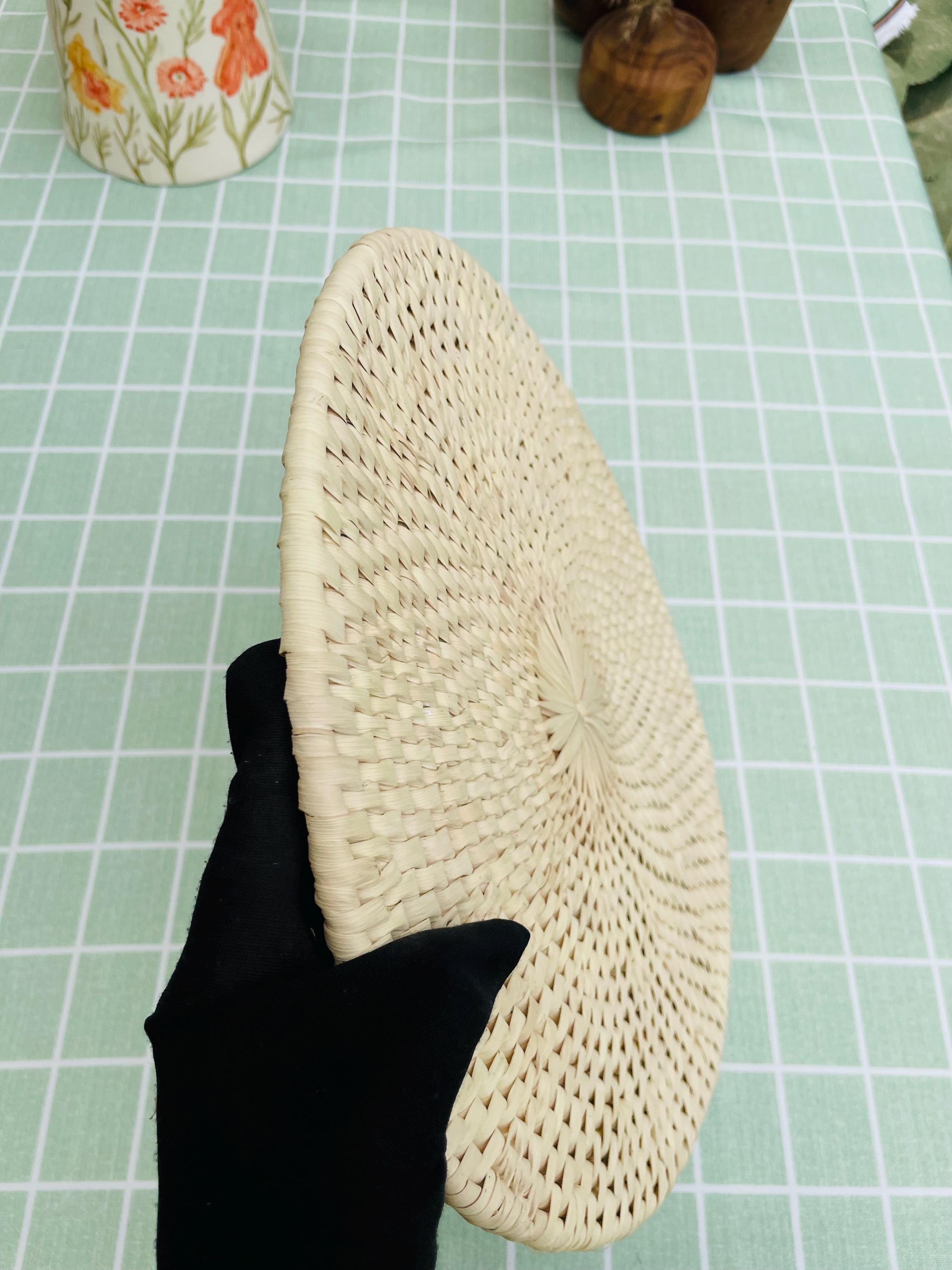 These hand woven round placemats sets is made from date palm fiber gathered from the various palm plantations that surround the artisans' village.