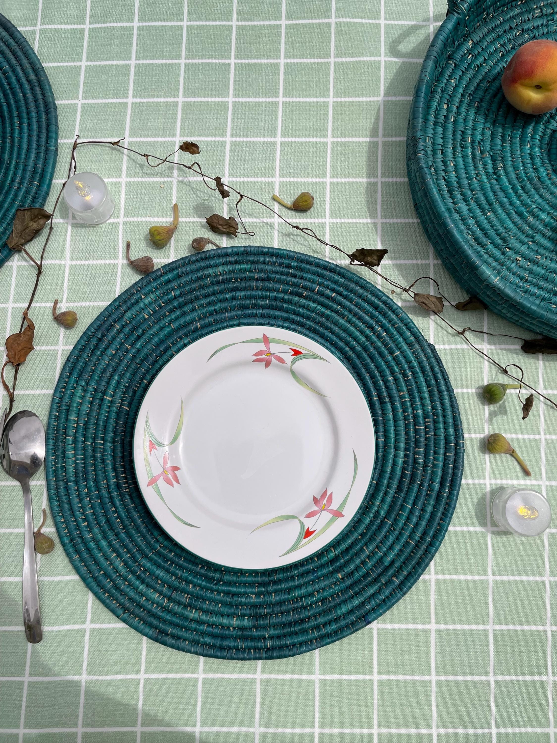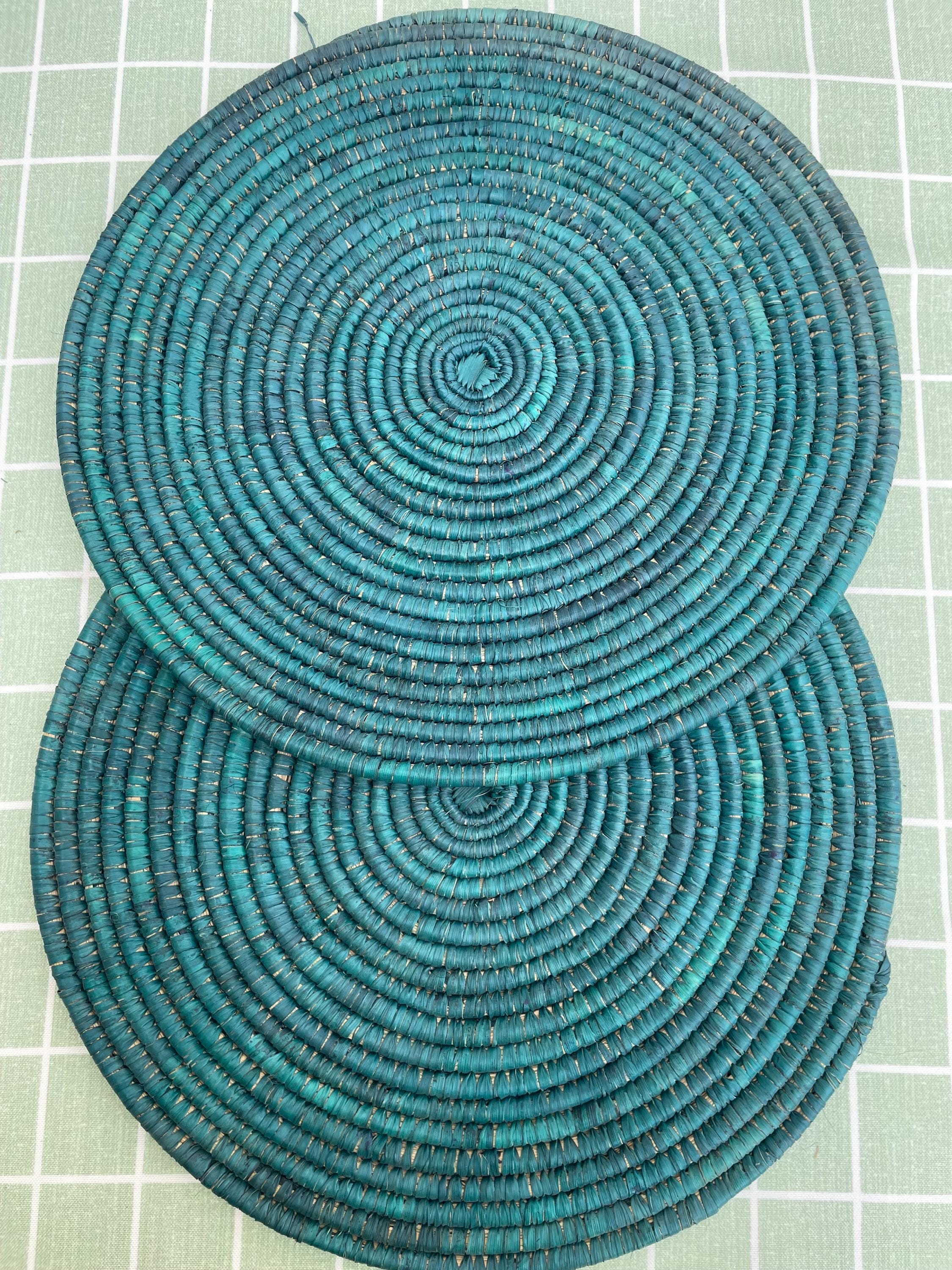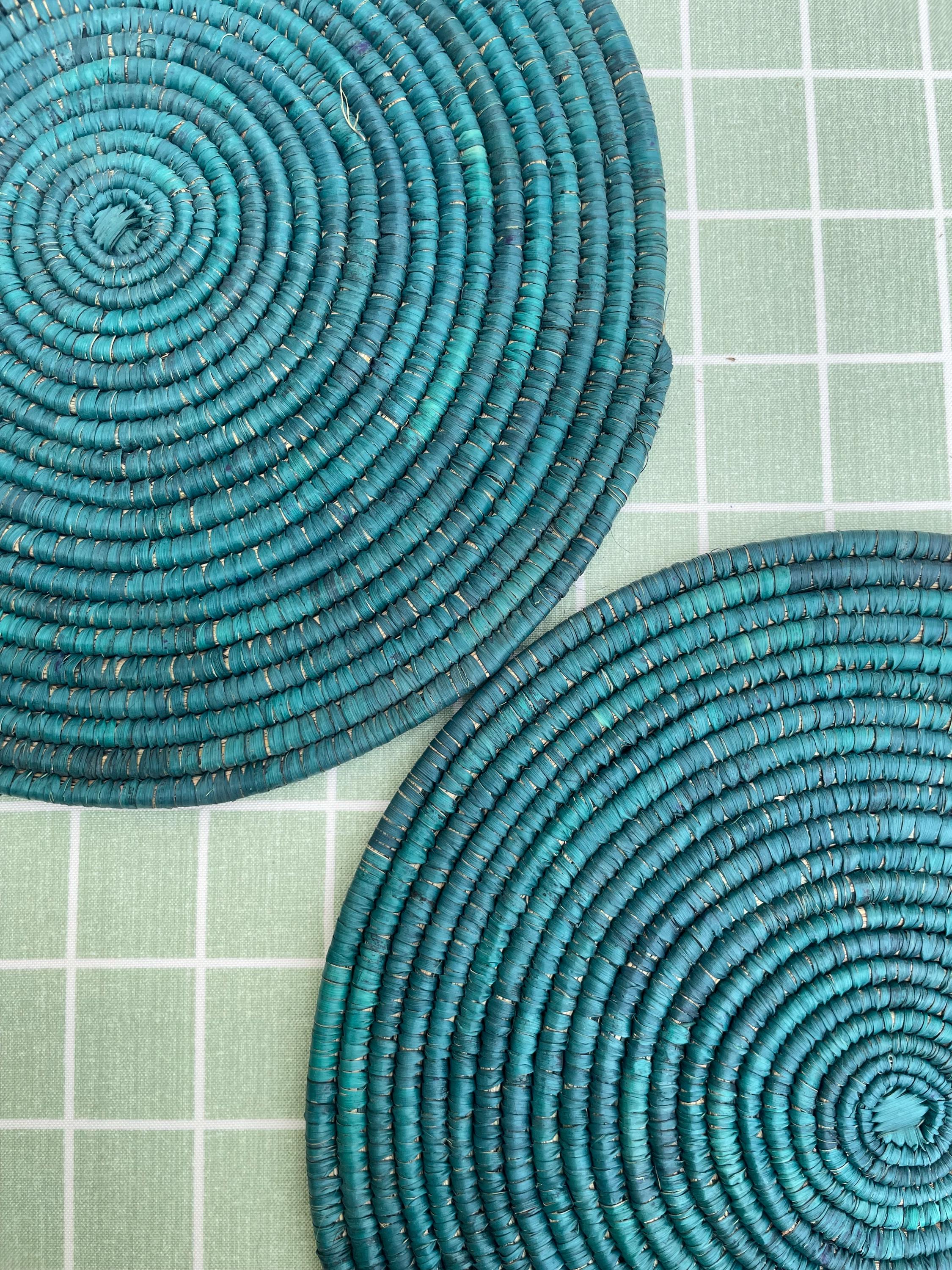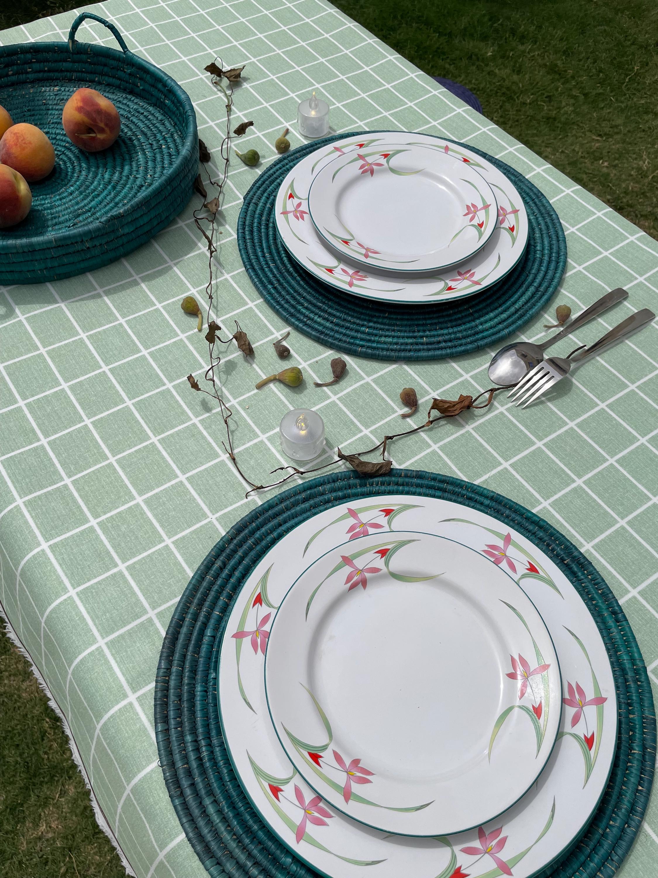 These boho green placemats is made from date palm fiber gathered from the various palm plantations that surround the artisans' village.