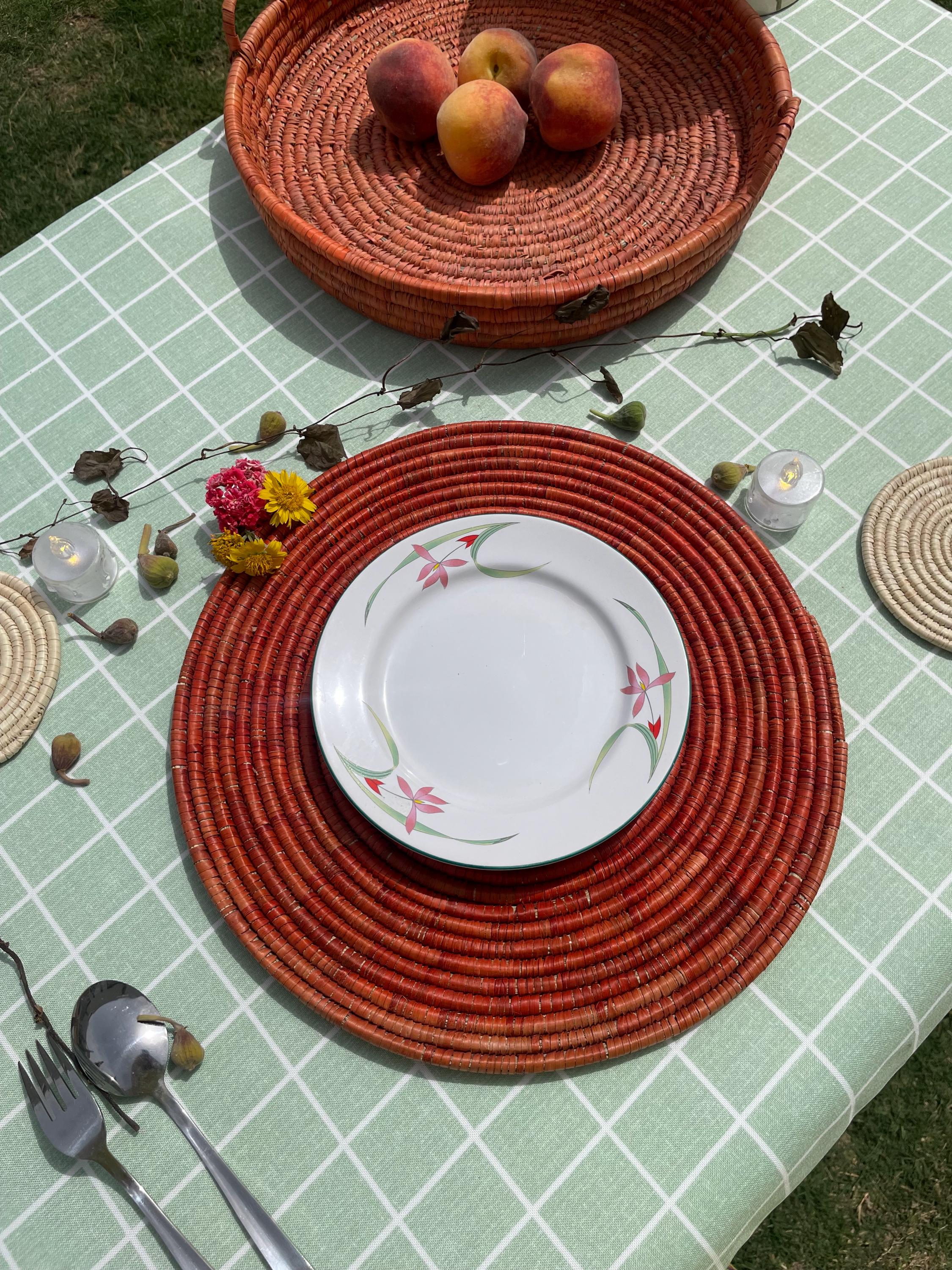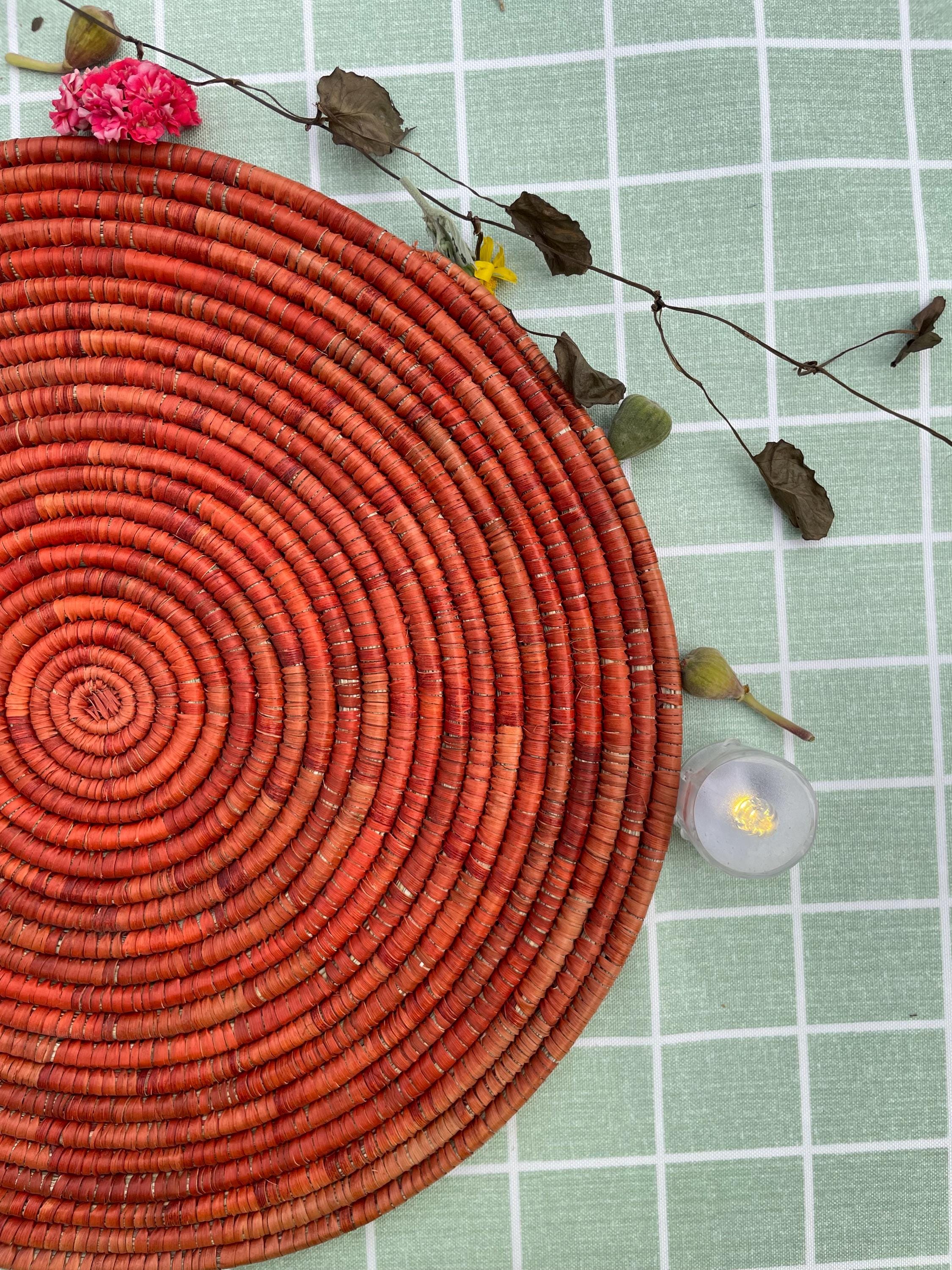 These boho woven placemats is made from date palm fiber gathered from the various palm plantations that surround the artisans' village.