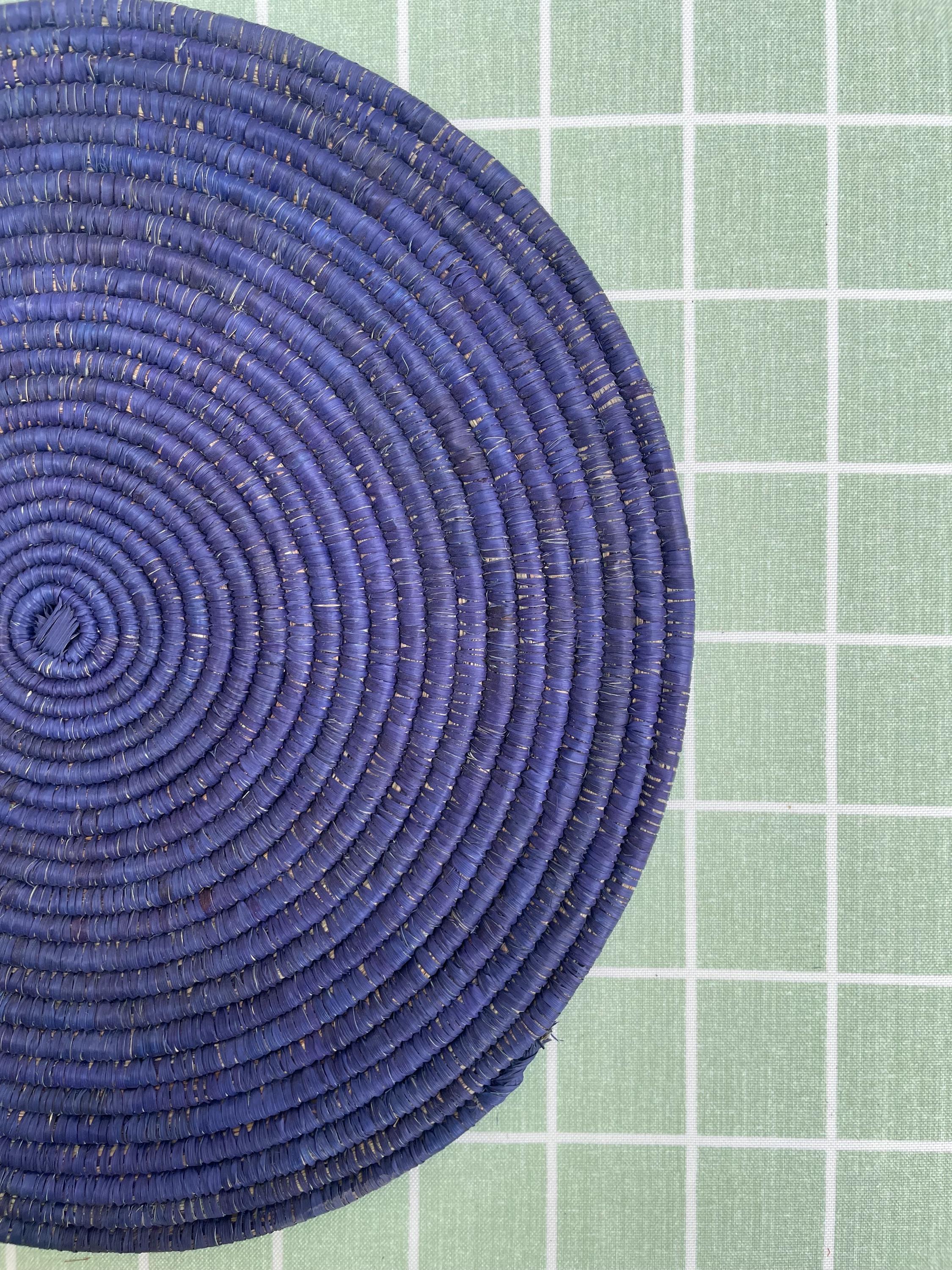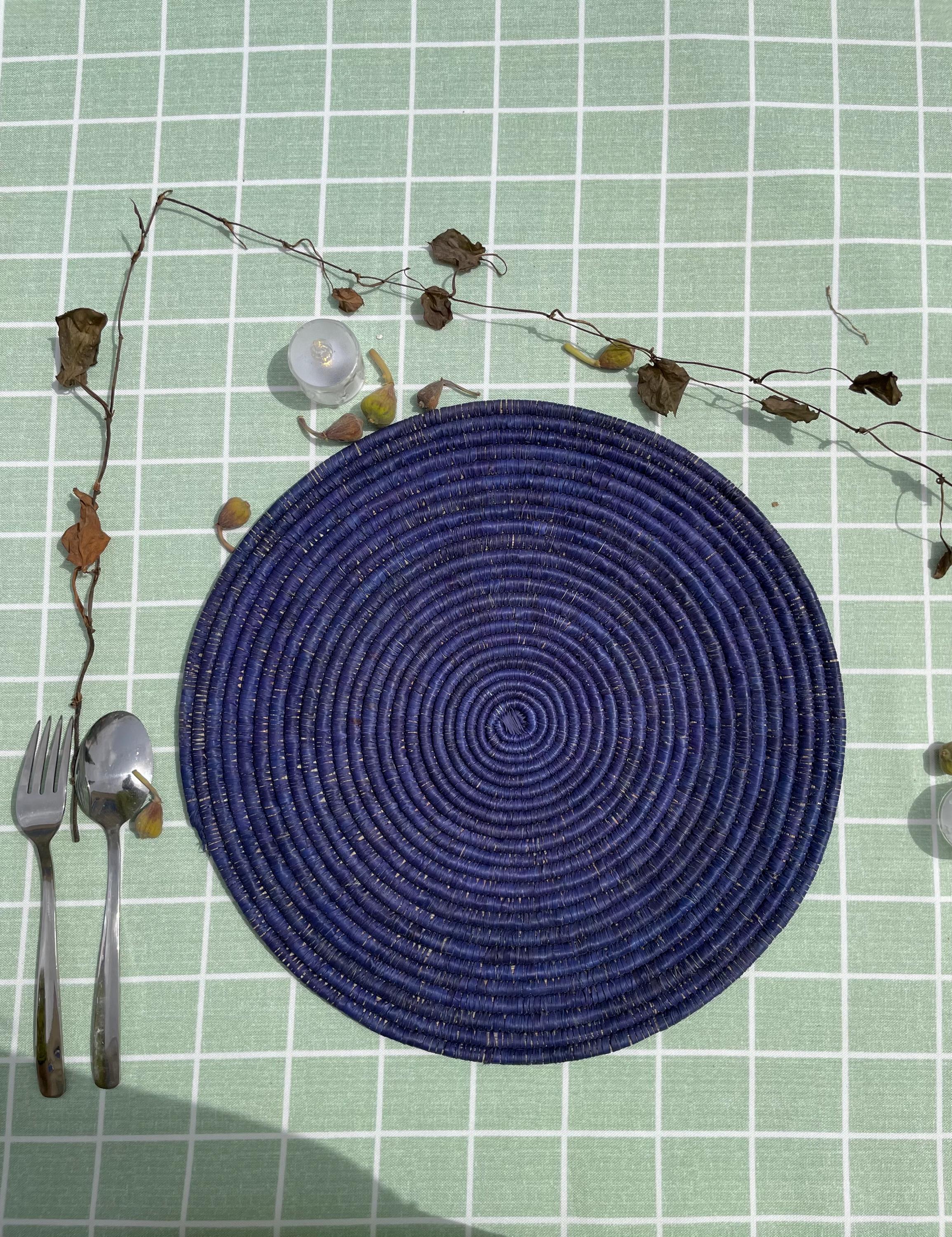 These boho blue placemats is made from date palm fiber gathered from the various palm plantations that surround the artisans' village.