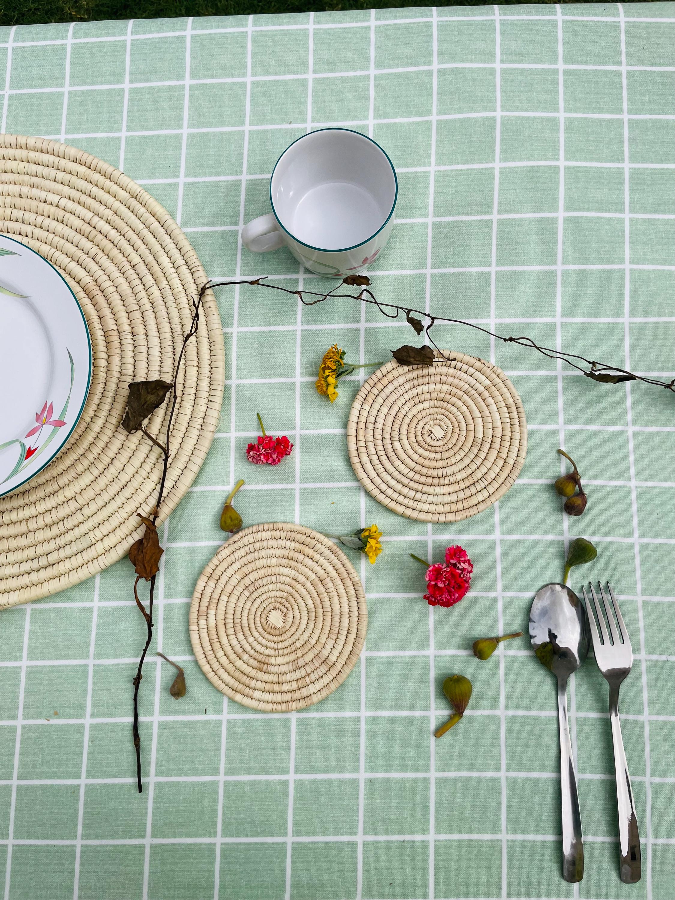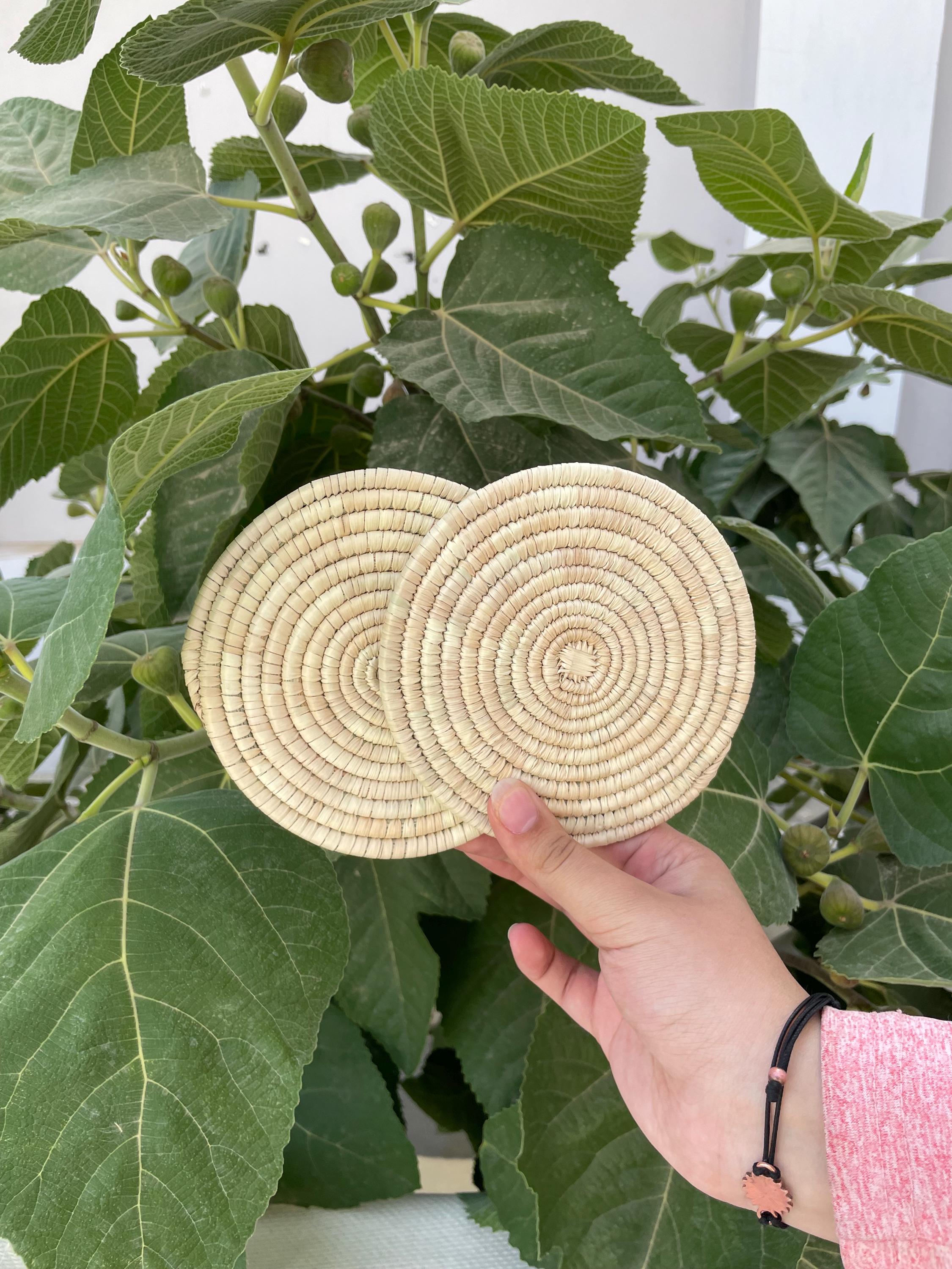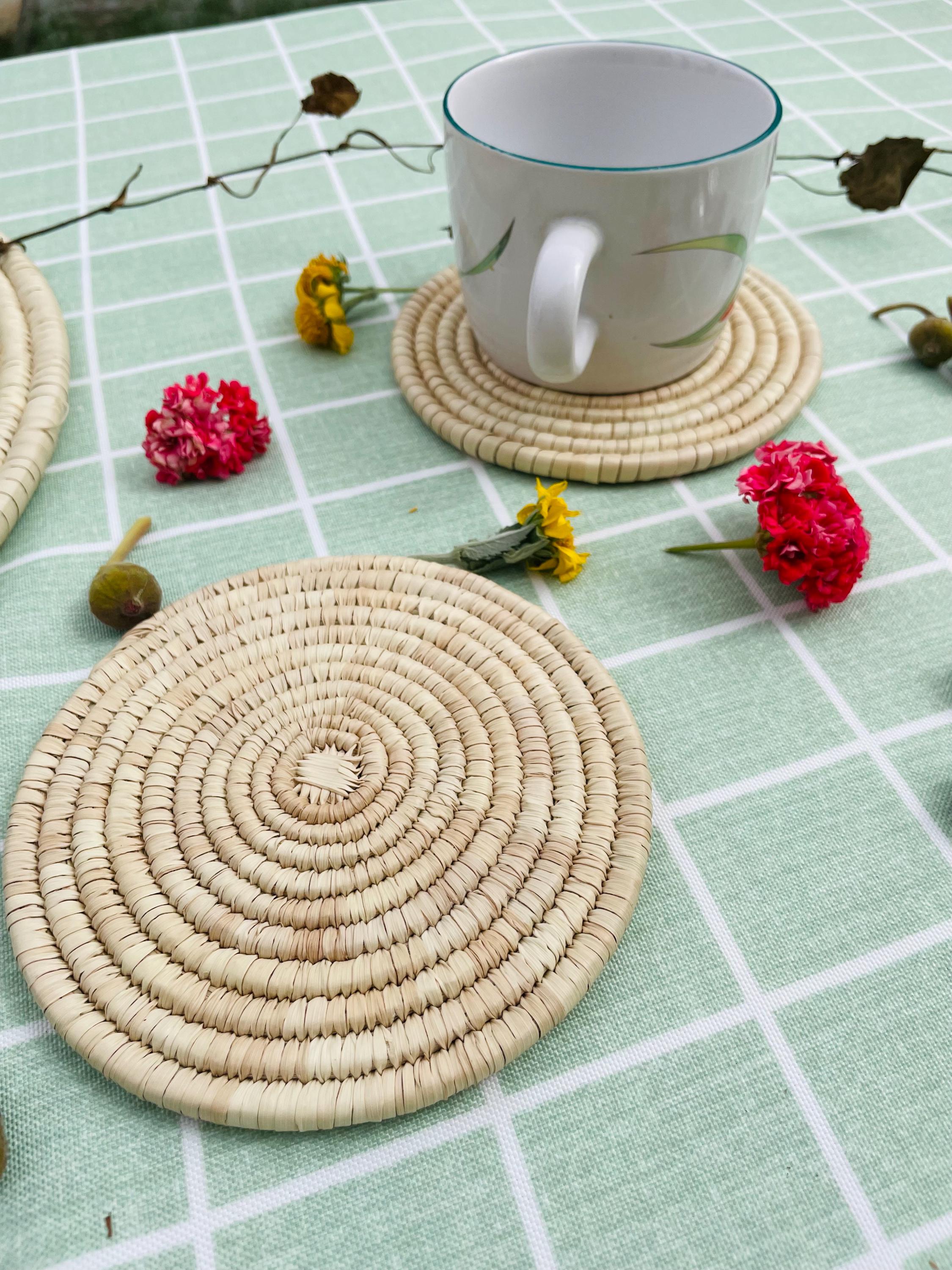 Protect your surfaces in style with these beautiful handmade natural palm coasters. Thoughtfully crafted and designed to complement any space, these boho coasters are a must-have for your kitchen, dining table, coffee bar, or even your office. They also make a thoughtful gift for any occasion—weddings, birthdays, housewarmings, Mother’s Day, Christmas, or even just a treat for yourself!