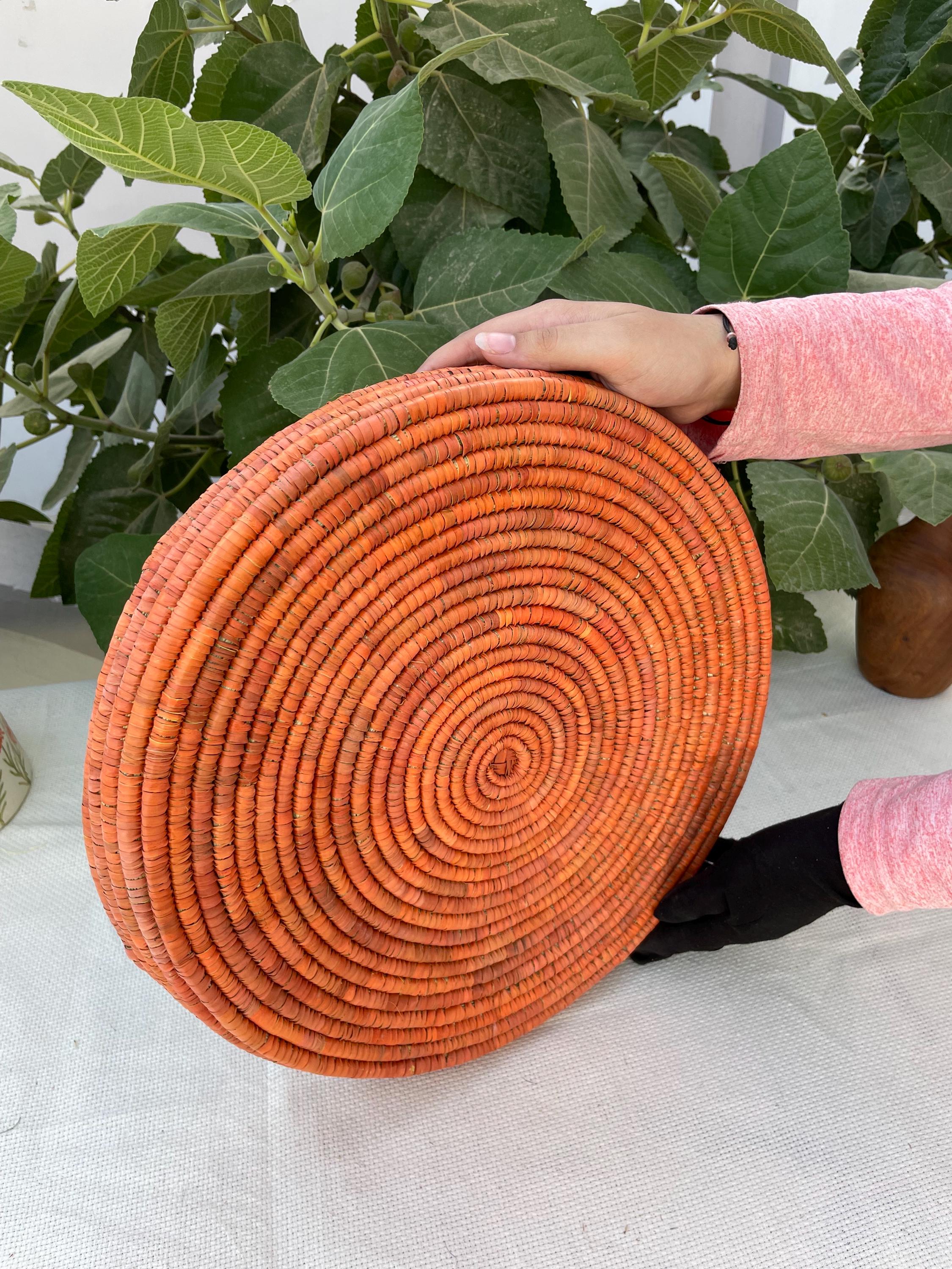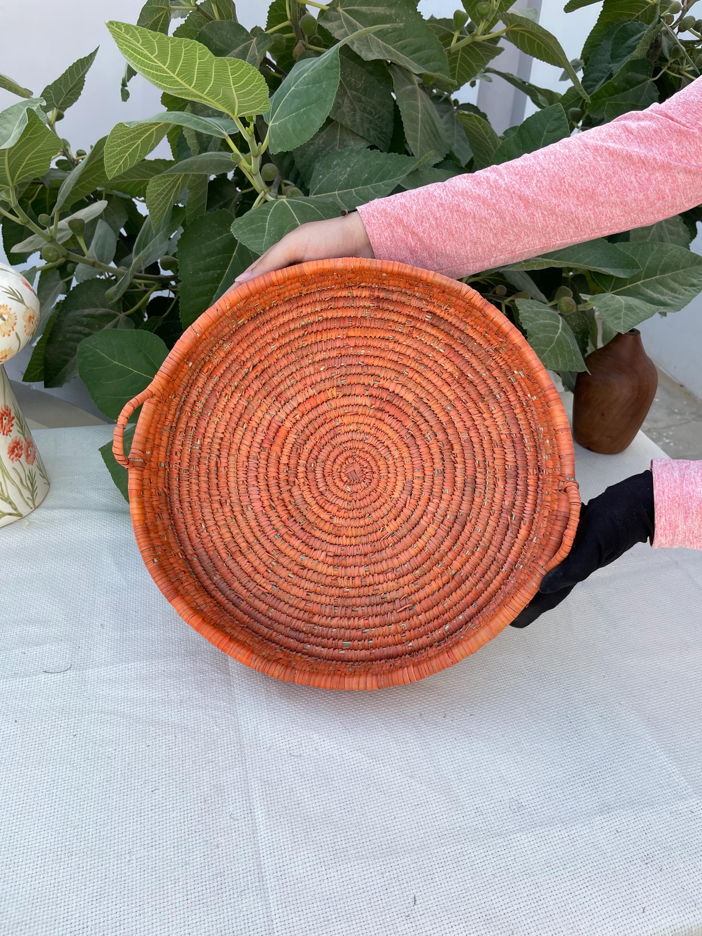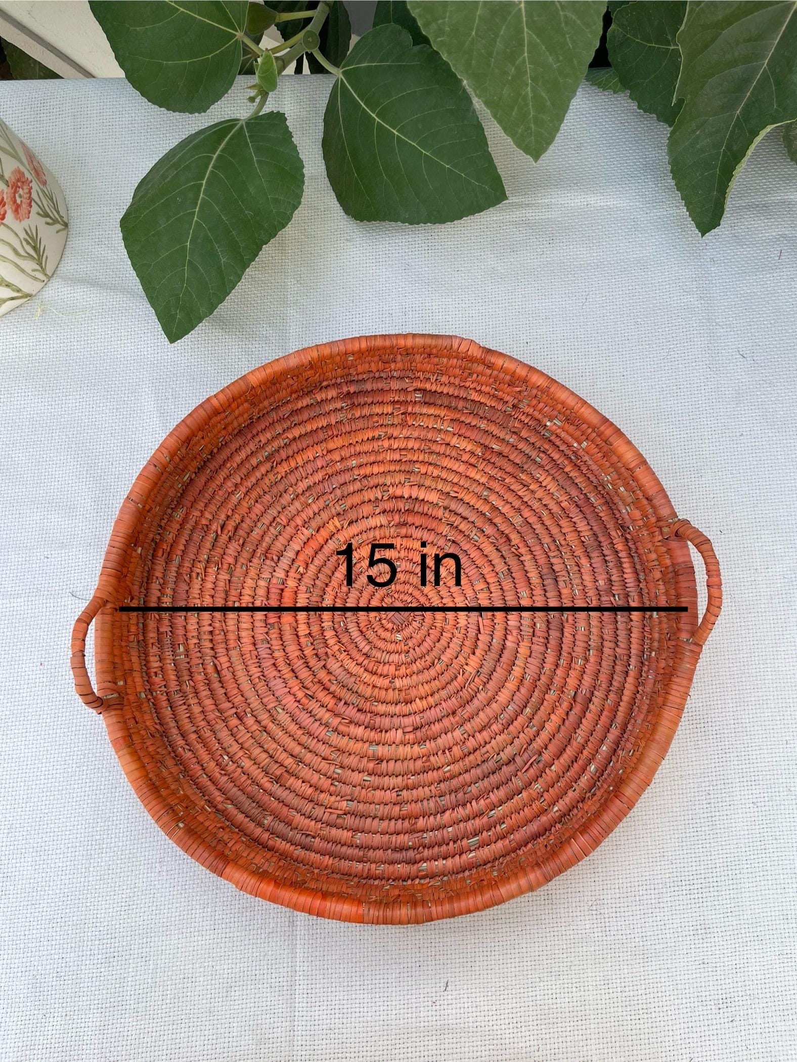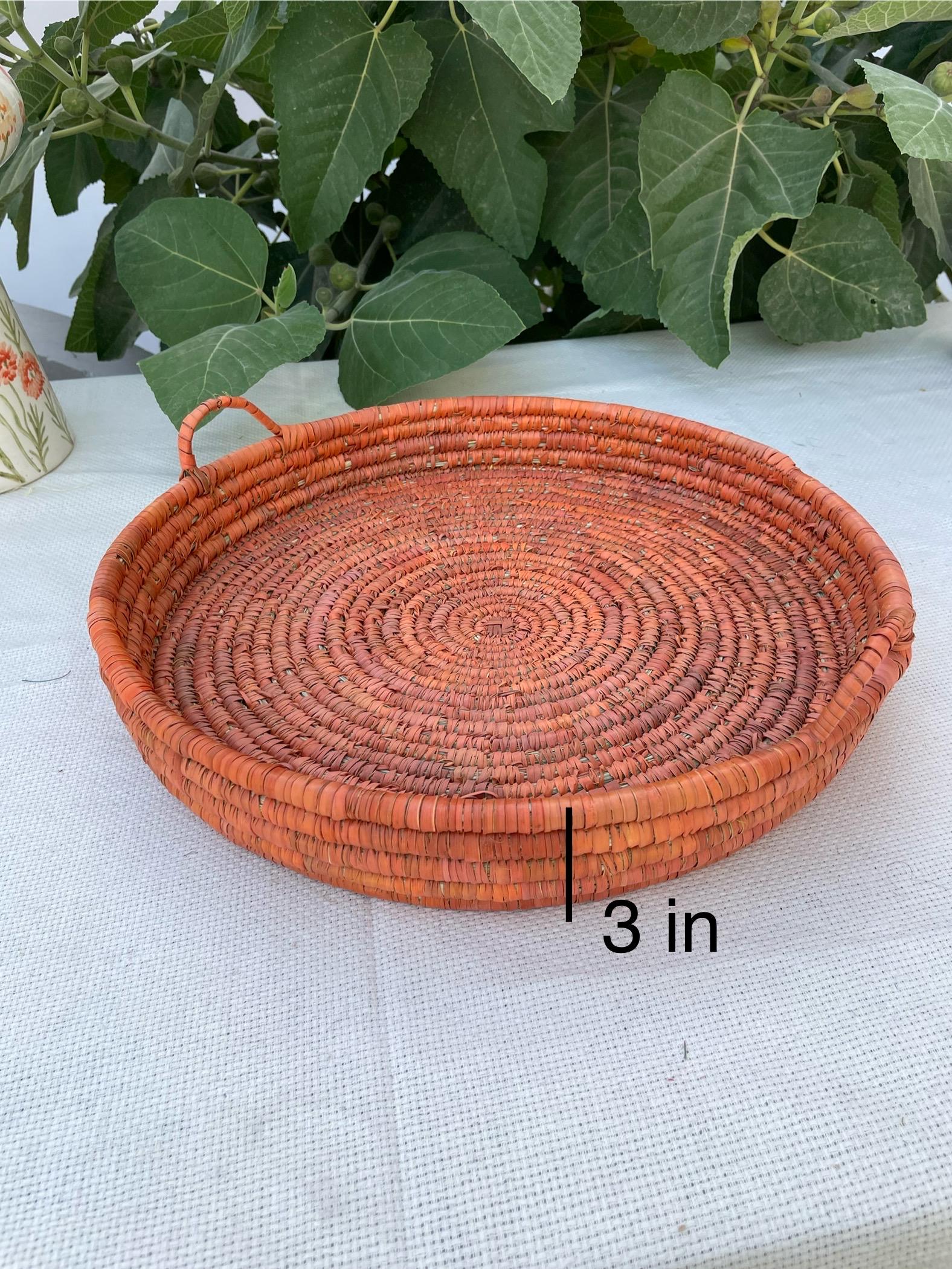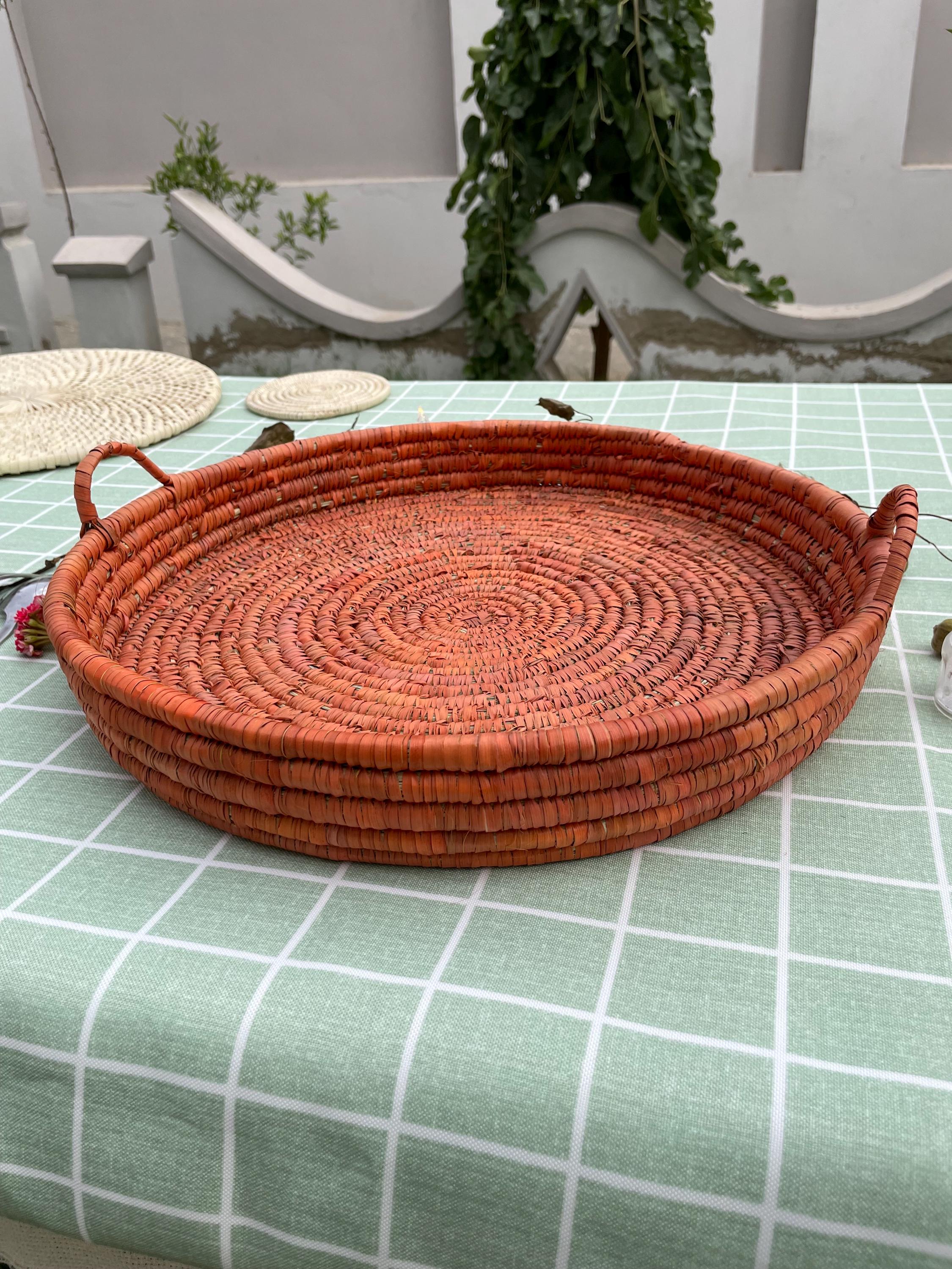 This rustic woven tray is made from date palm fiber gathered from the various palm plantations that surround the artisans' village.