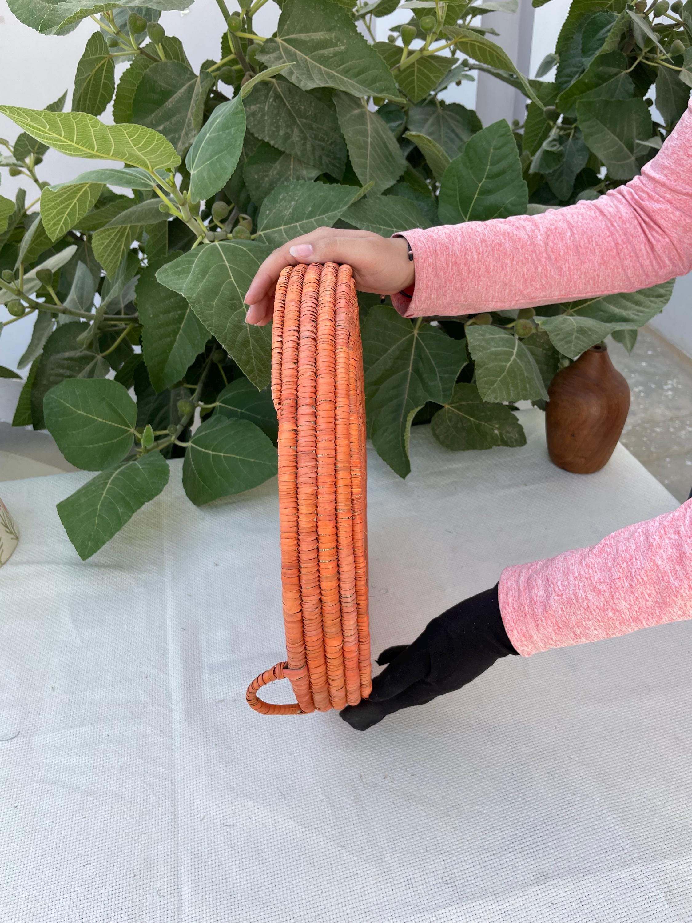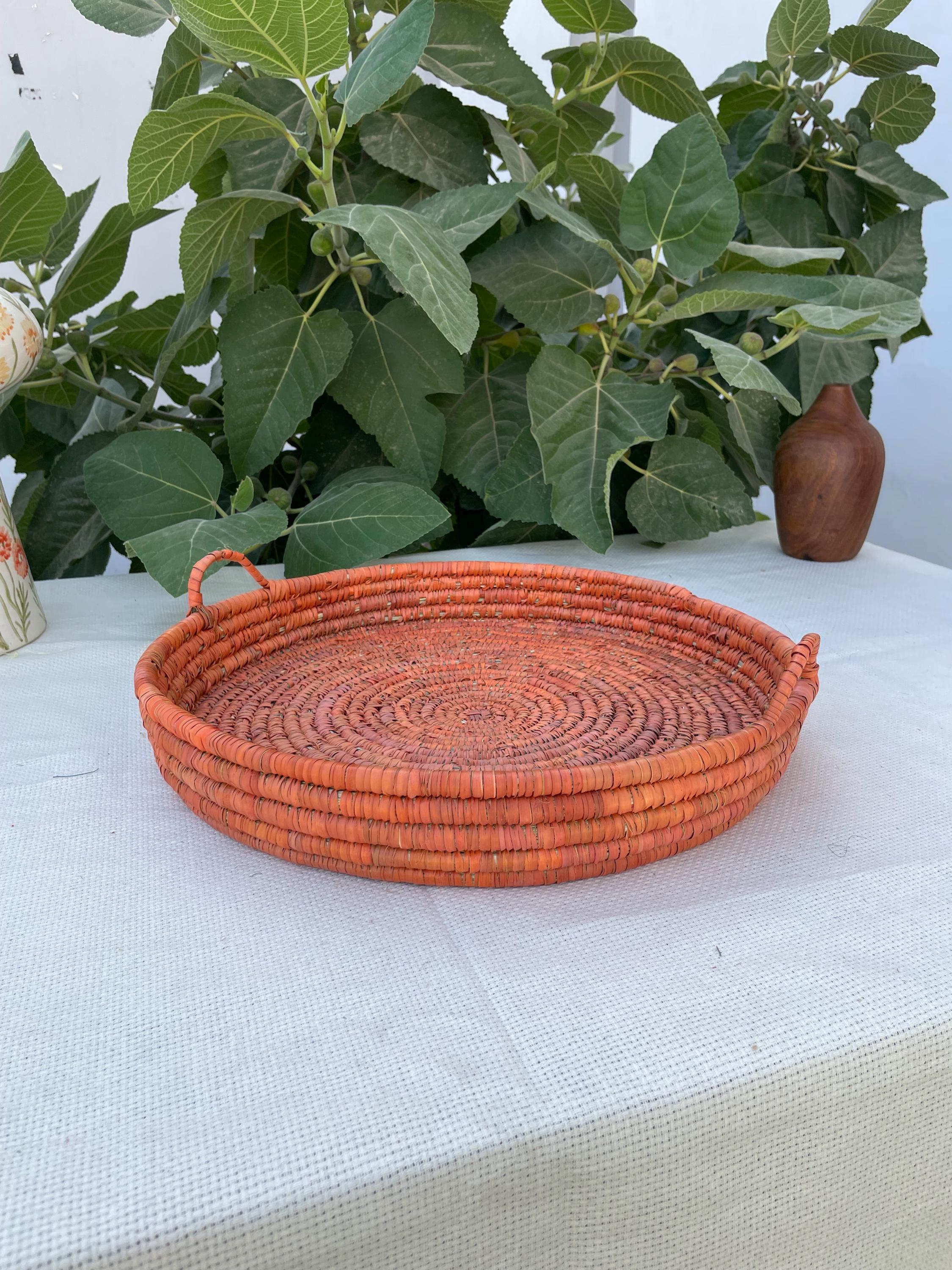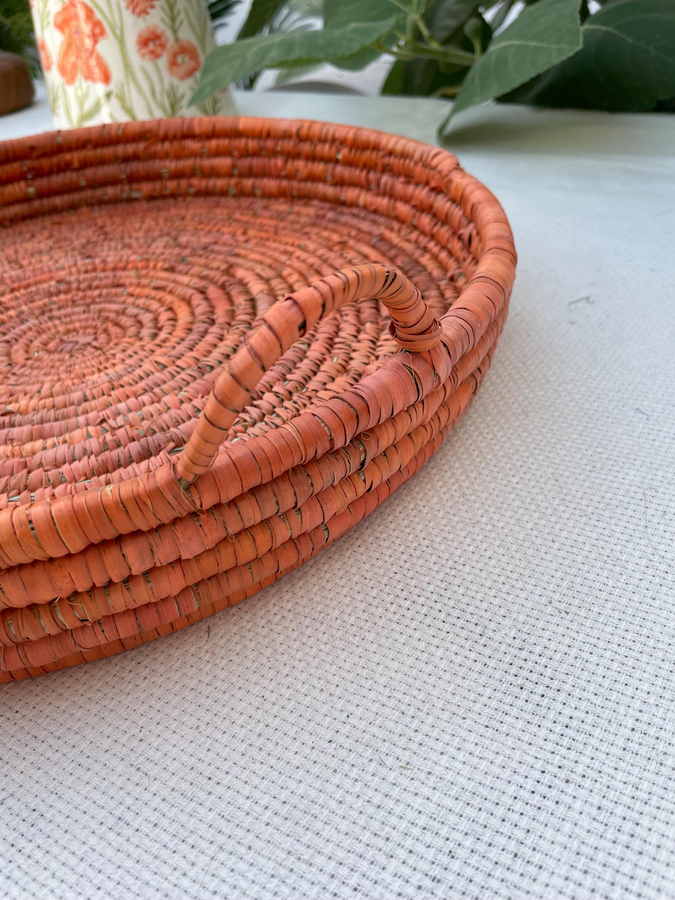 Each beautiful woven tray is sold individually and features a dyed terracotta rustic color that pairs perfectly with both modern and traditional dinnerware.