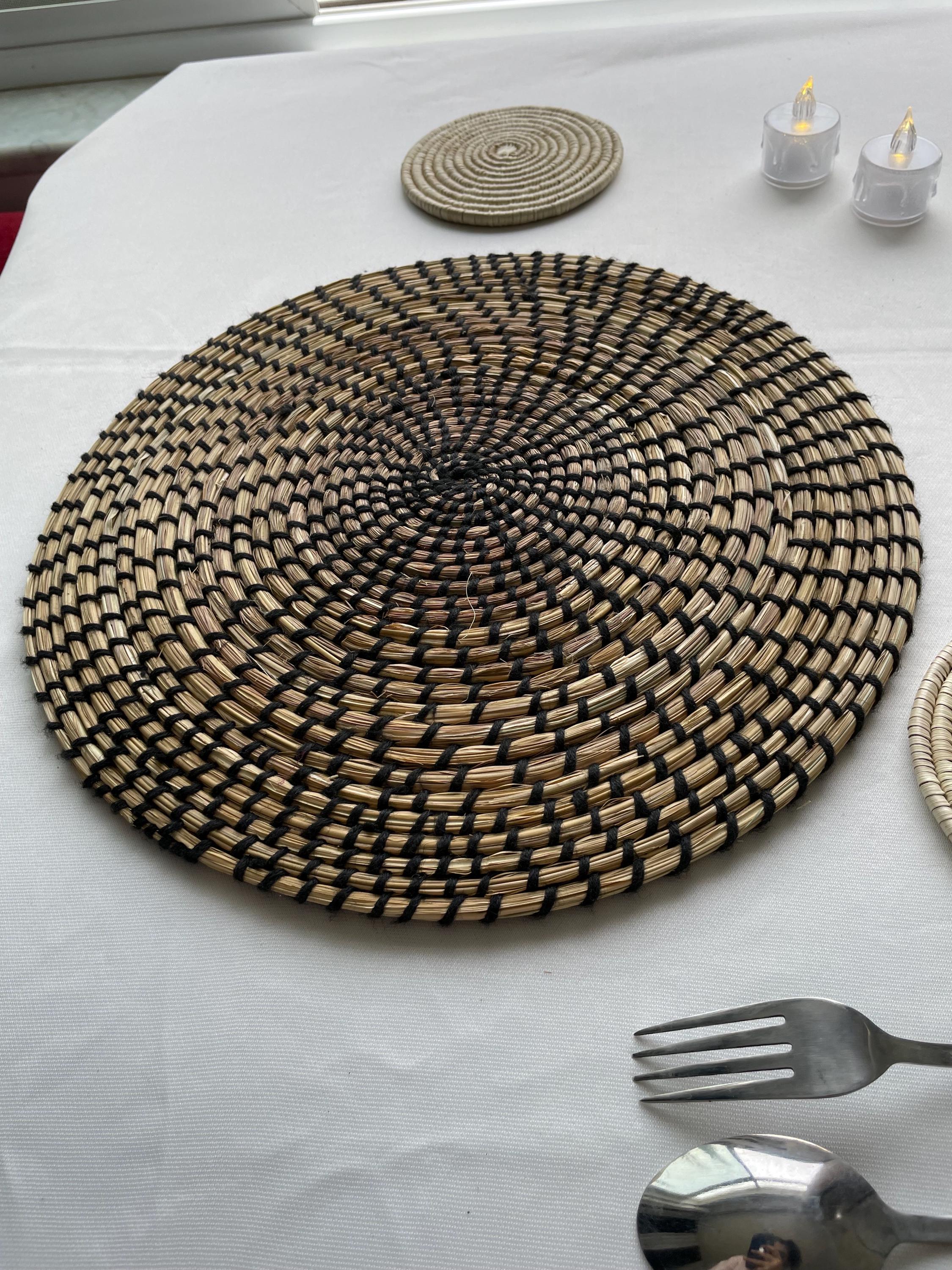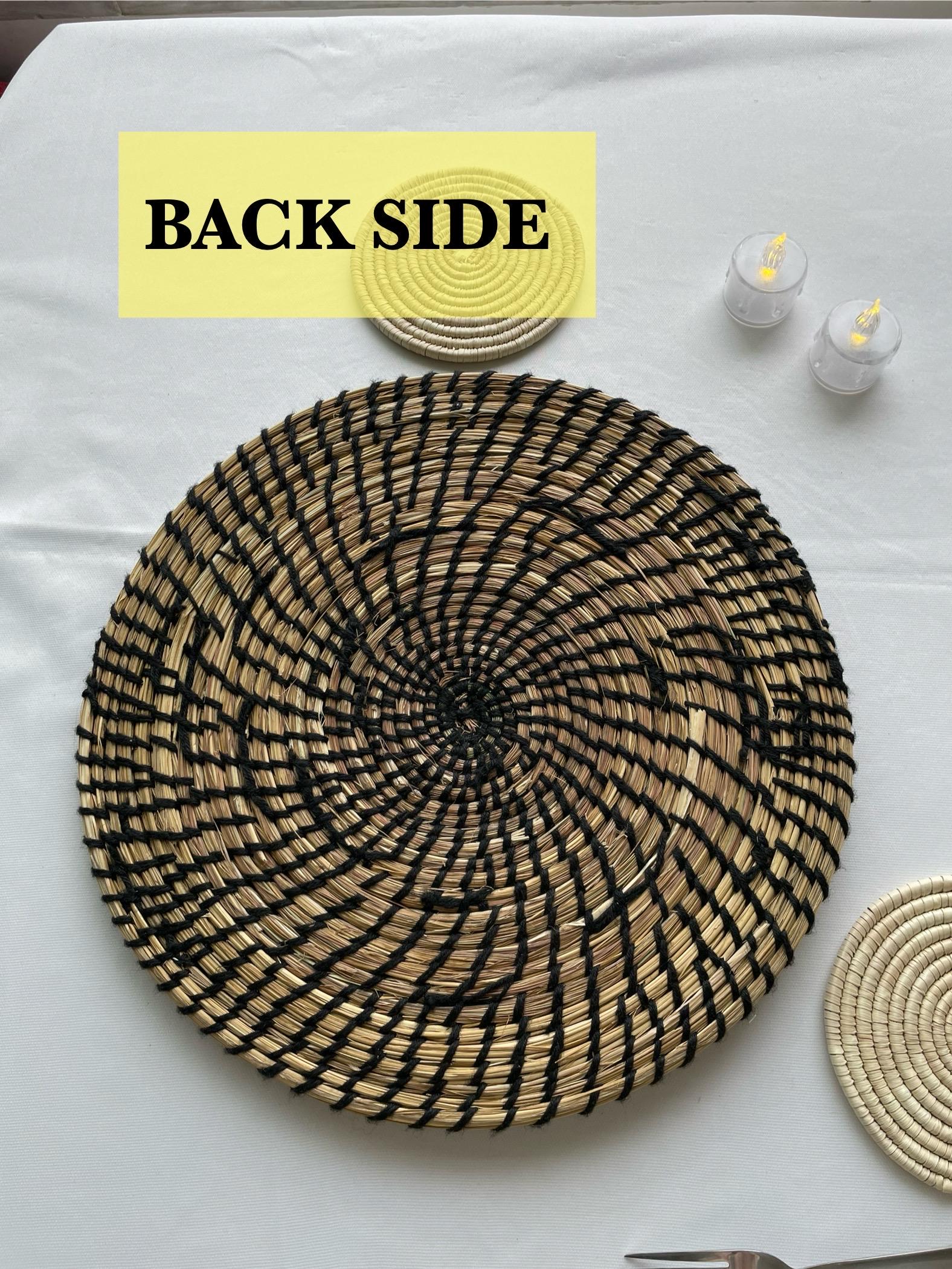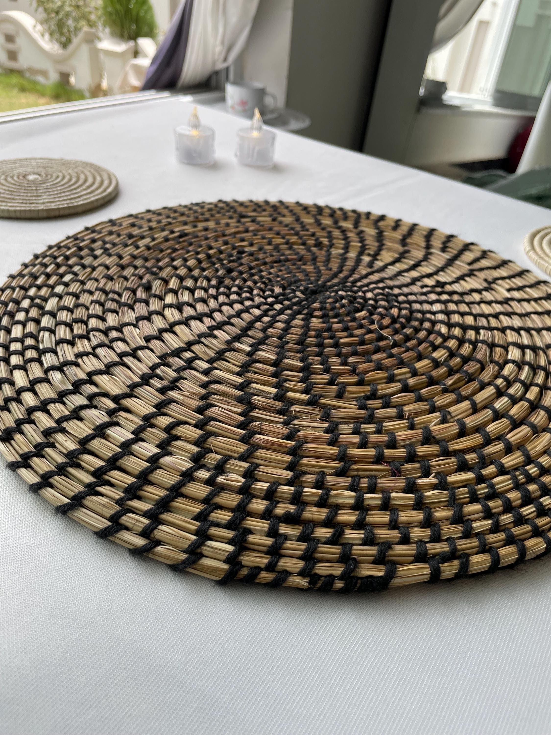 Each sea grass placemat is carefully crafted by skilled artisans and features a black and natural color scheme that adds a pop of color to your dining room.