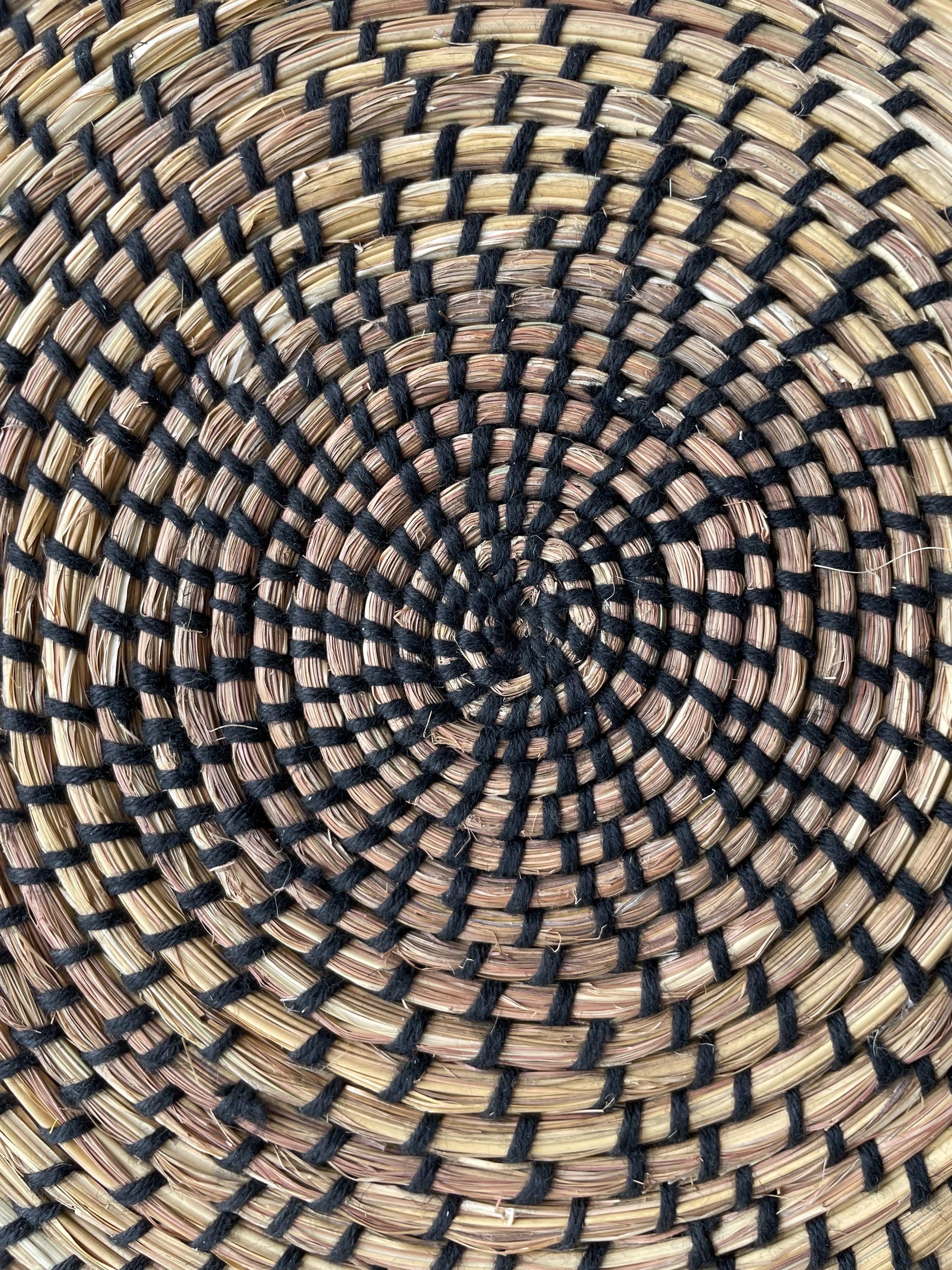 This hand woven sea grass placemat is made from seagrass and wool gathered from the various palm plantations that surround the artisans' village. Natural materials means that each place mat has its own unique color variations.