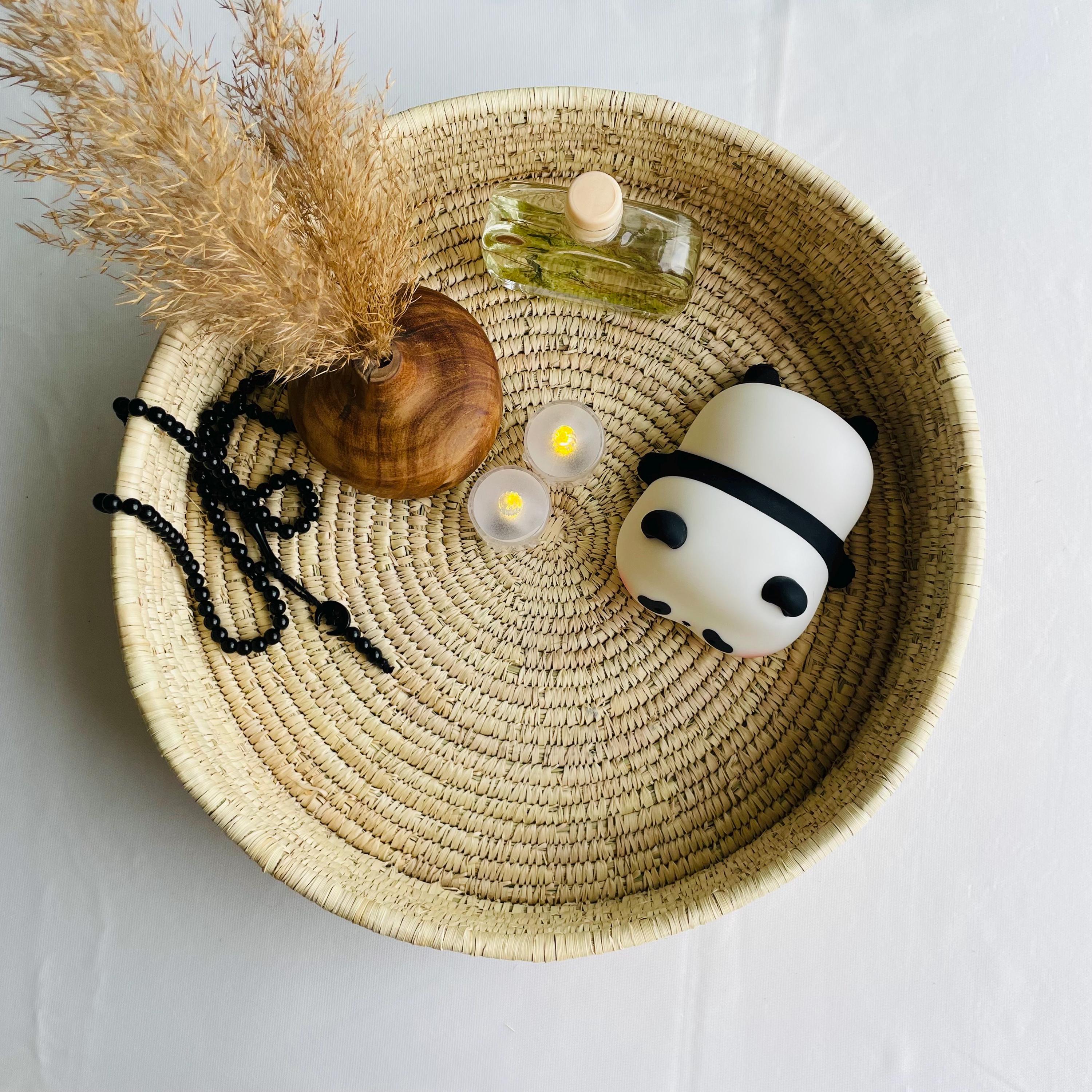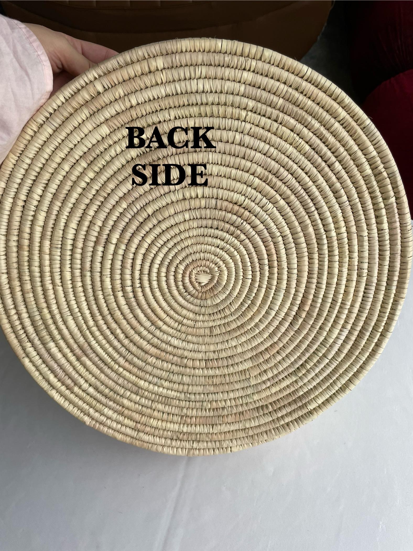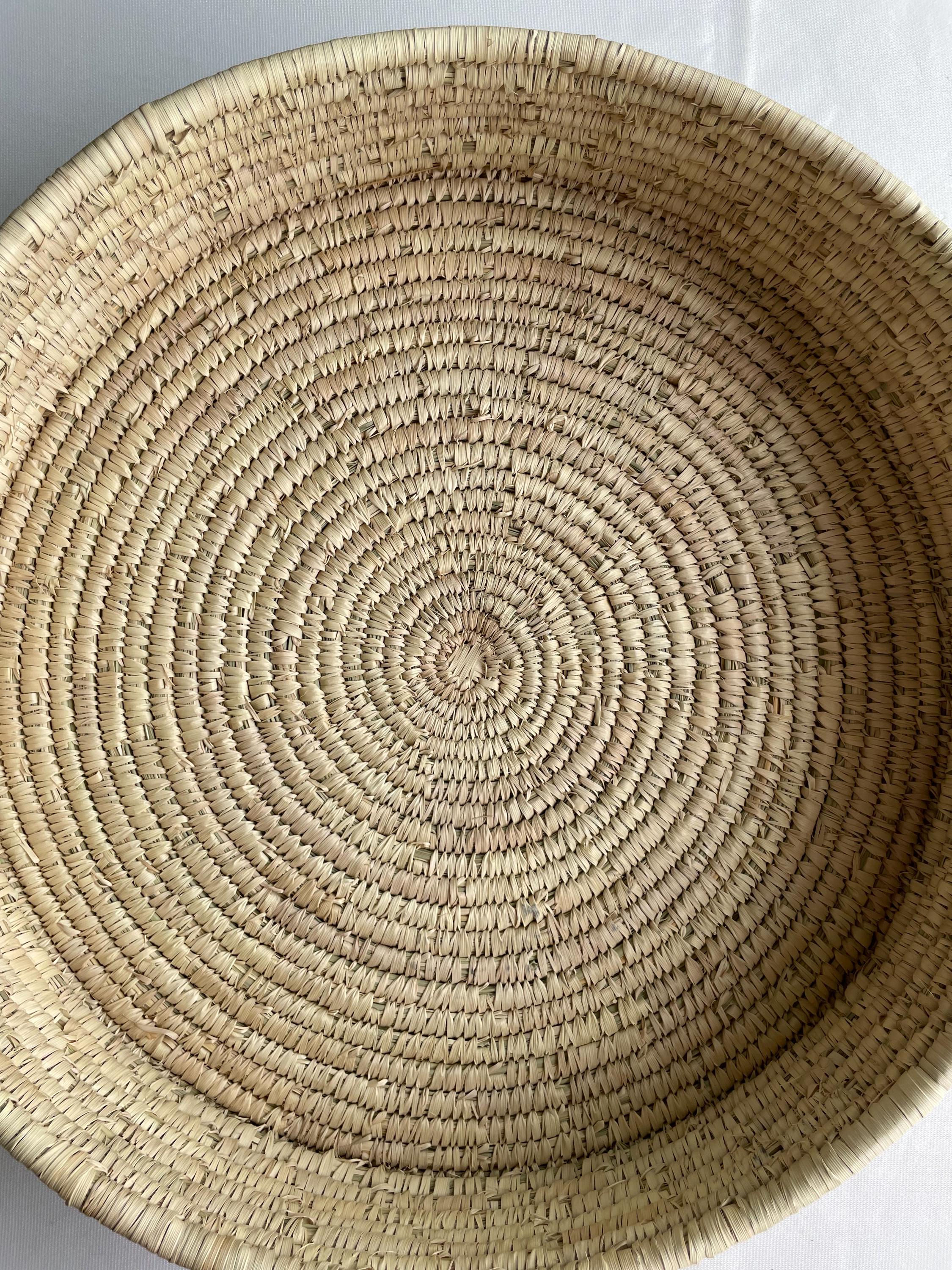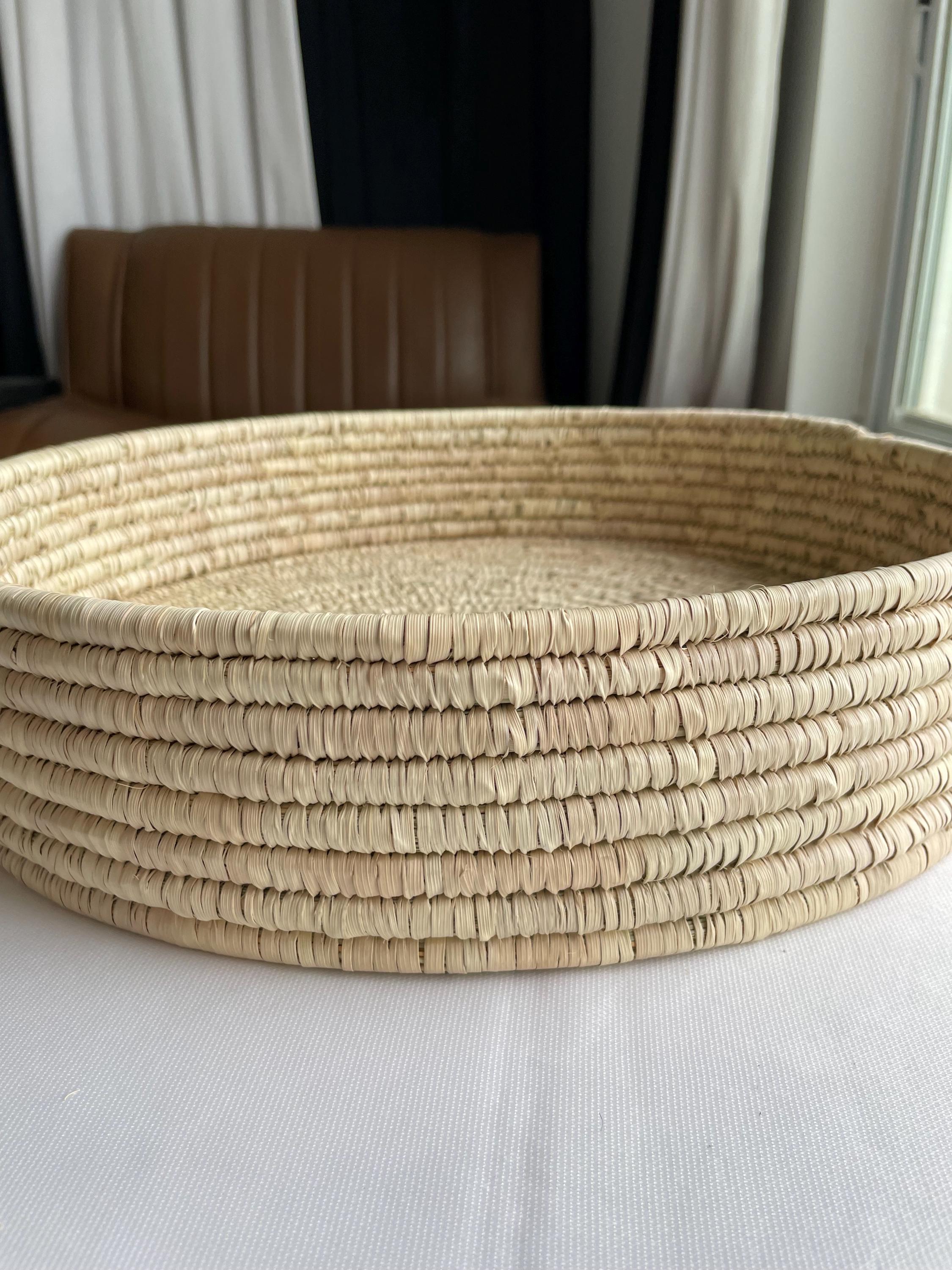 This rustic woven tray for coffee table is made from date palm fiber gathered from the various palm plantations that surround the artisans' village.