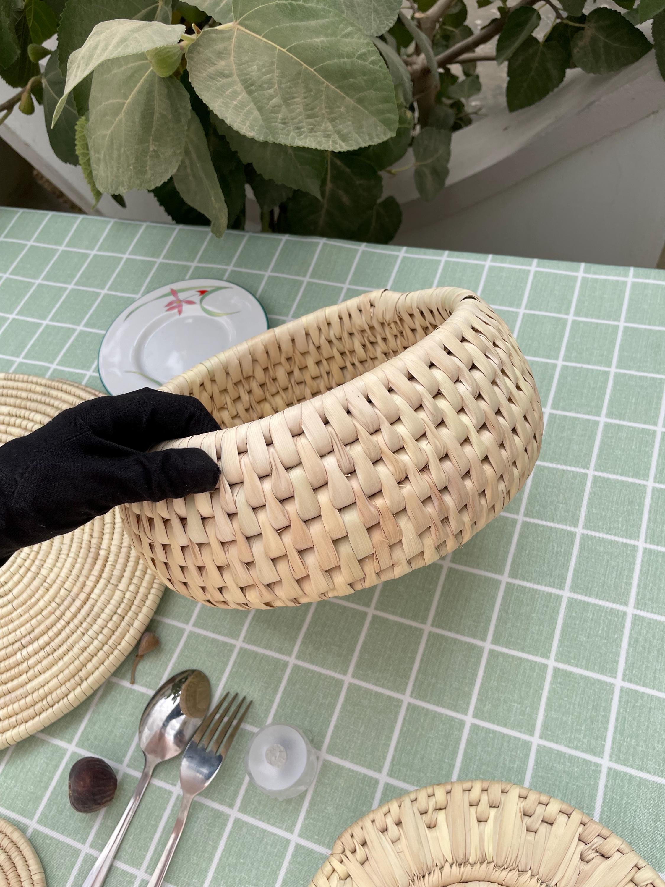 Each basket is carefully woven by skilled artisans using sustainable materials like palm leaves and sea grass, Whether you use it as a desktop organizer, a fruit storage basket, or simply as a boho decor piece, it brings both rustic charm and practical storage to your home.