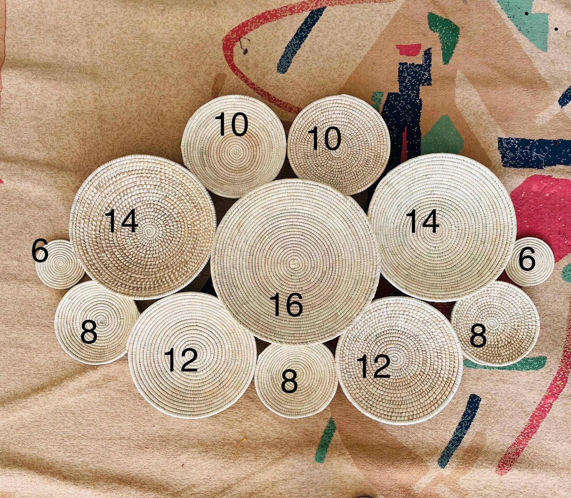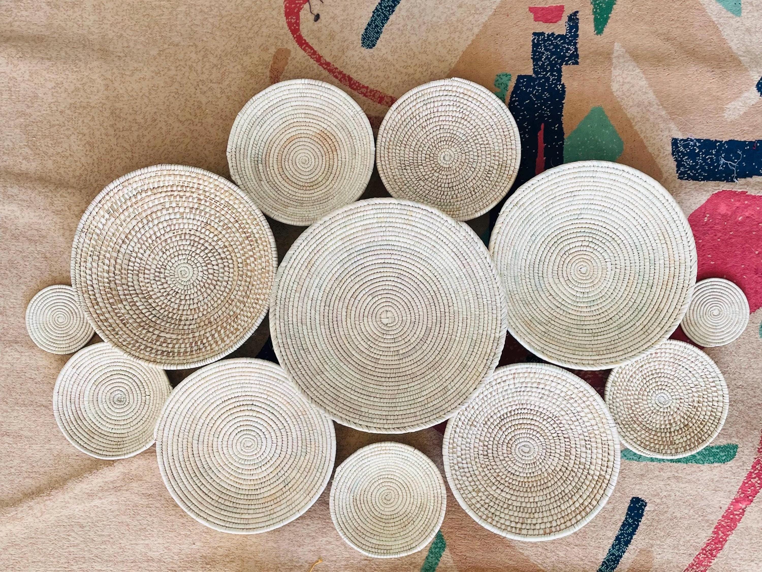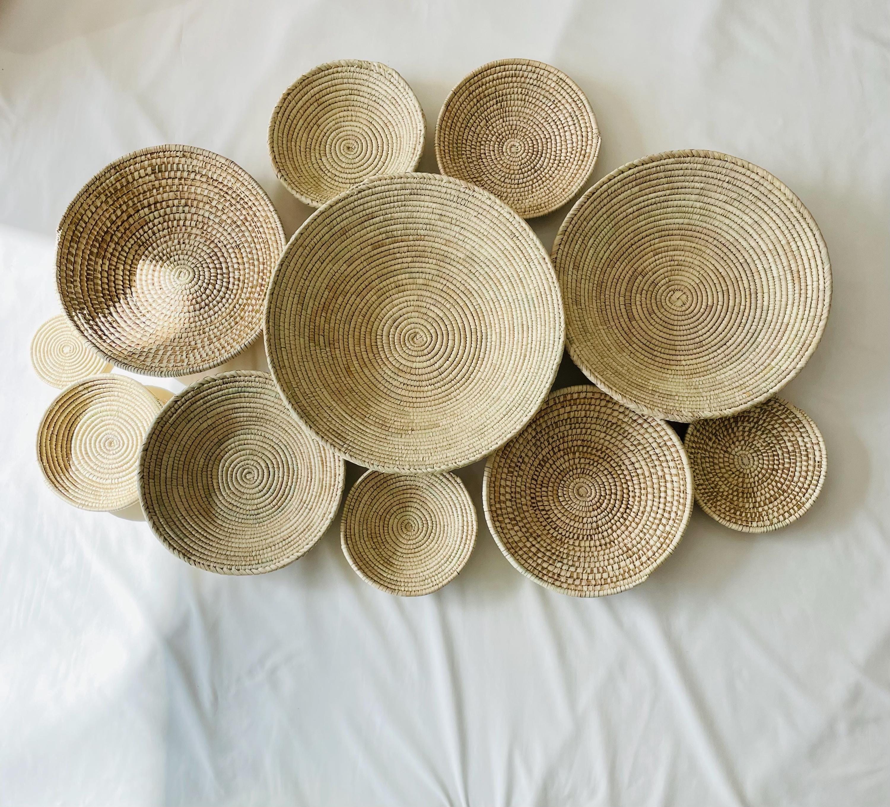 Enhance your space with the elegant, boho-inspired handwoven Wall Basket Set of 2,3,4,5,6,7,8,9,10,11 and 12 by suzzi home. This set of twelve boho wall baskets combines traditional craftsmanship with a contemporary aesthetic, featuring bold that bring an neutral colors to any room, these boho wall baskets add texture, depth, and a globally inspired touch to your decor.