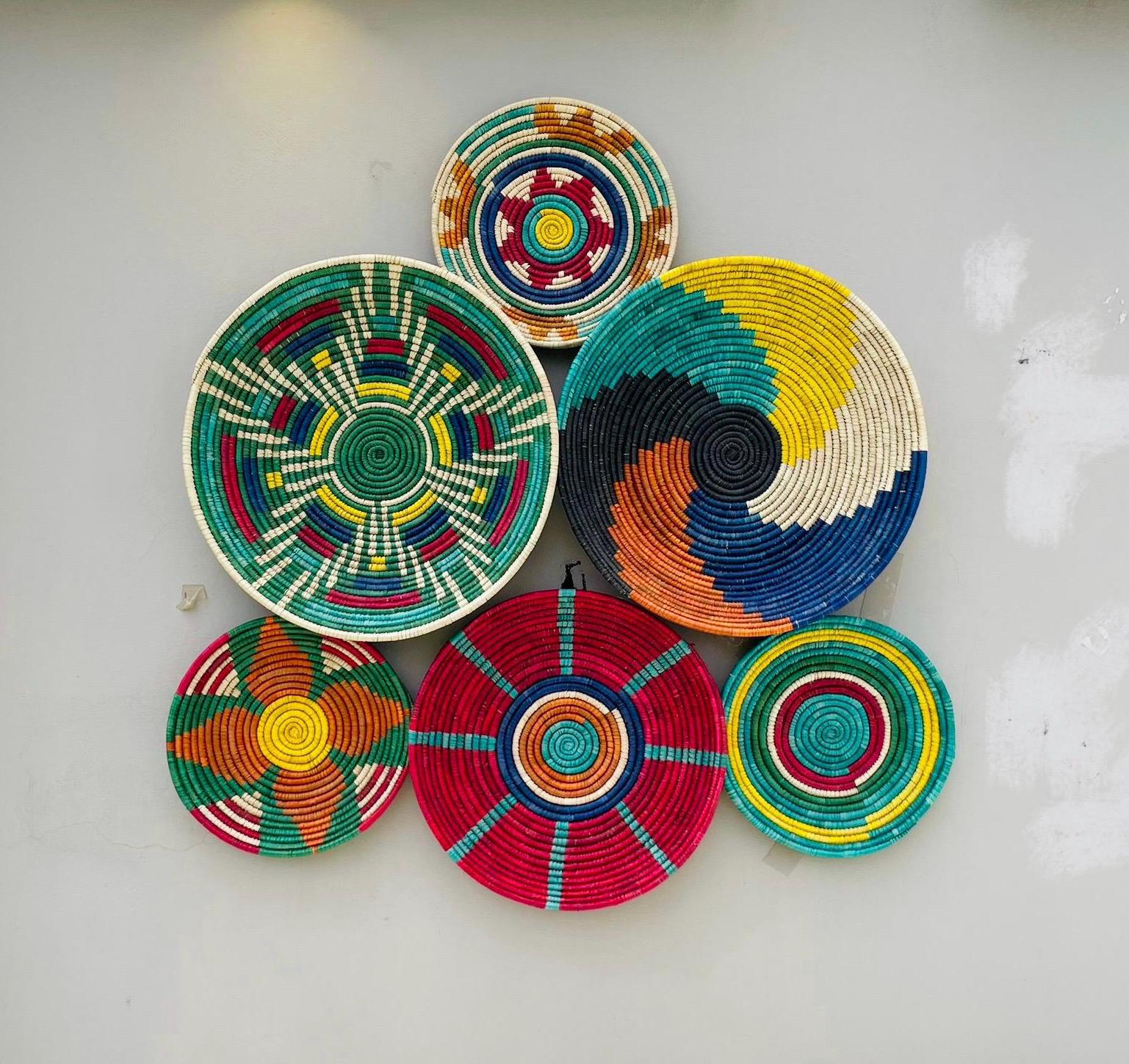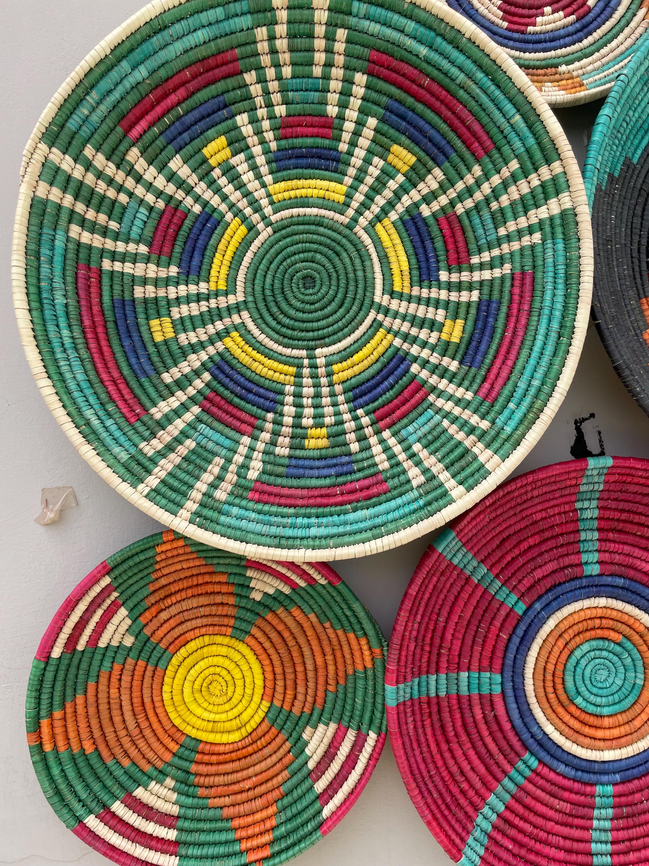 Create a unique atmosphere in every corner of your home with elegant and colourful woven wall baskets.