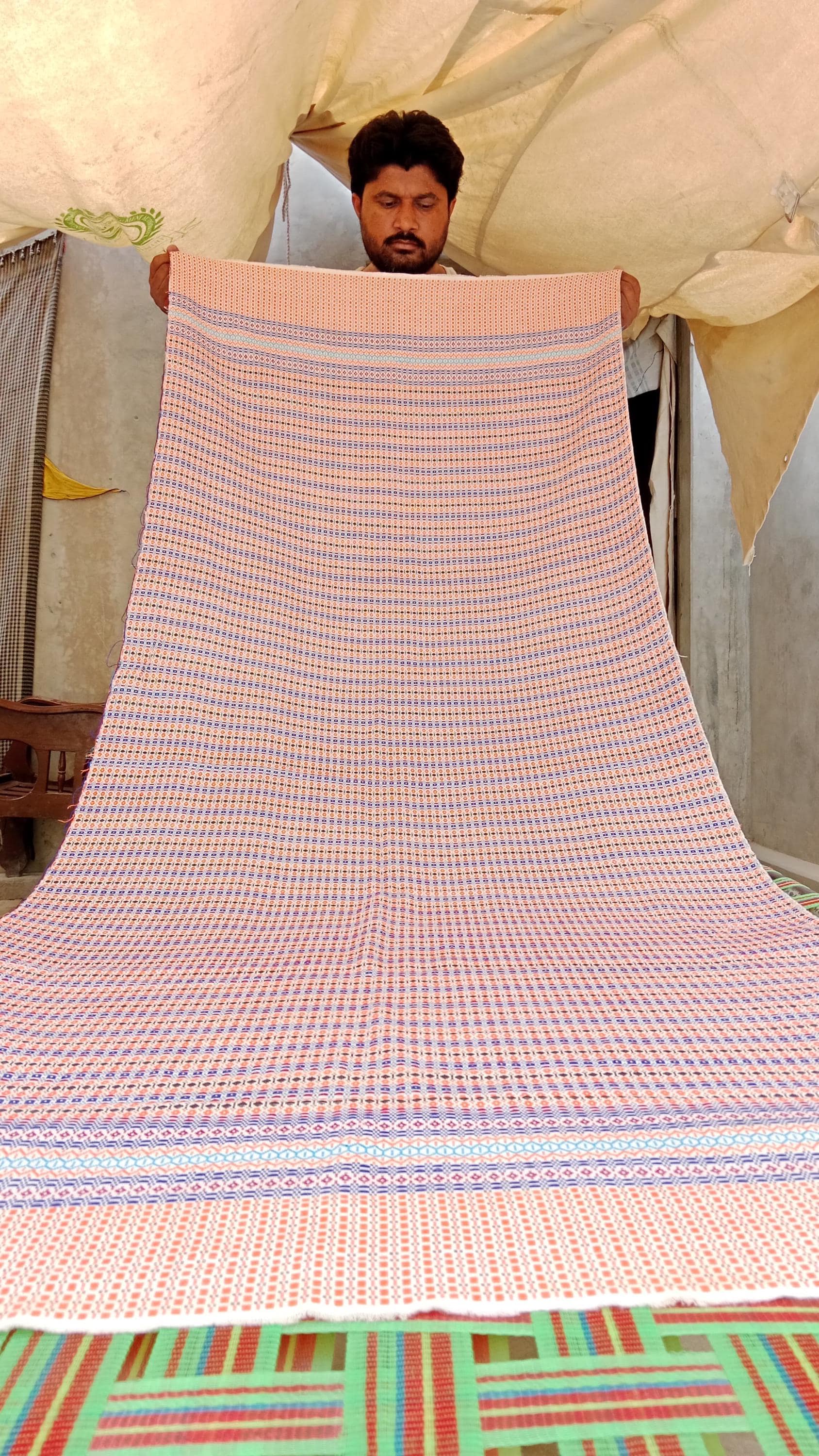 Rebozos are hand-woven by men artisans in a small community in sindh pakistan. These products showcase traditional sindhi designs and colours. The artisans weave these on a lap loom, a labour-intensive process. The sale of every rebozo helped their community and families with basic living expenses and supported Fair Trade.