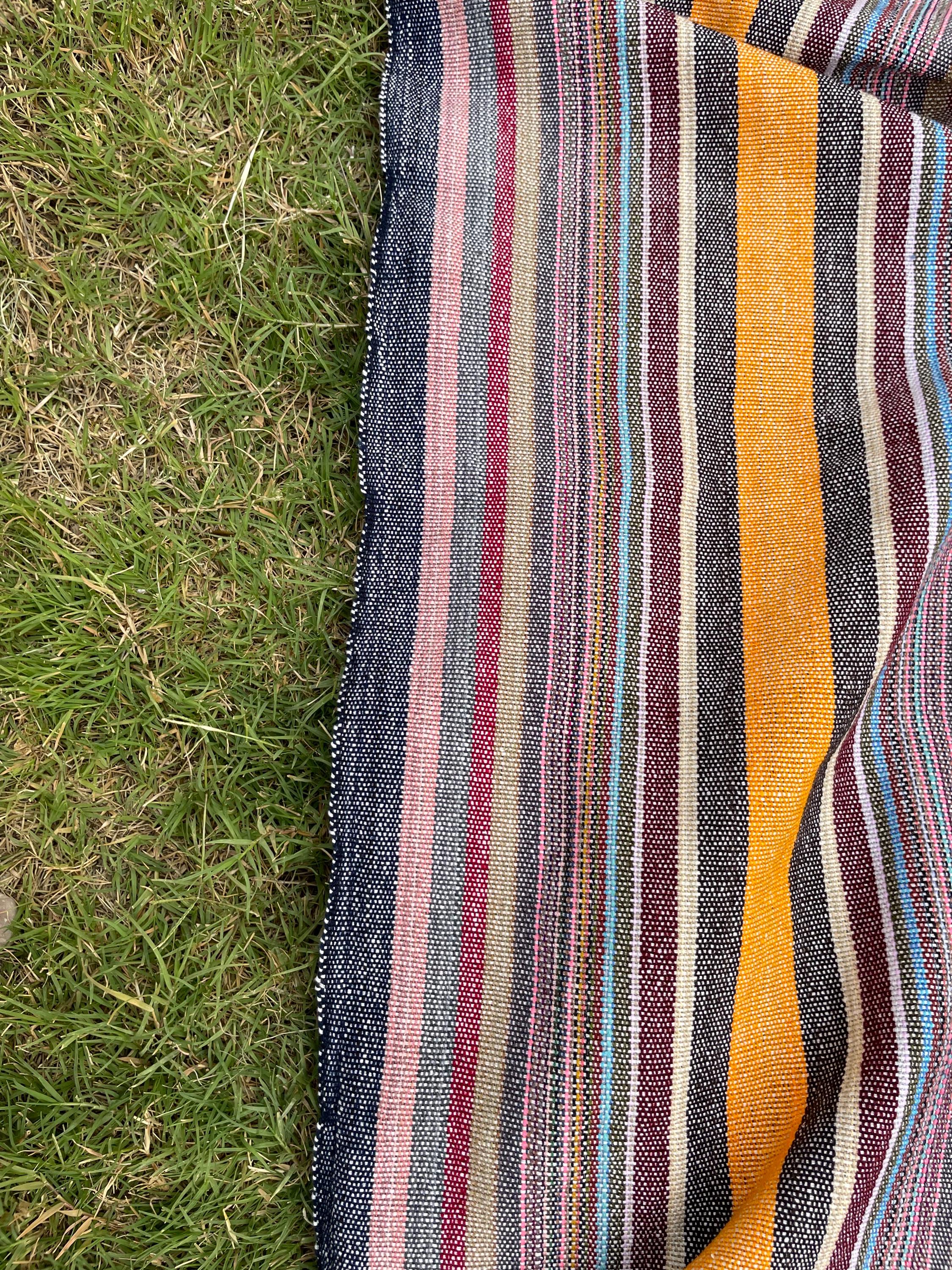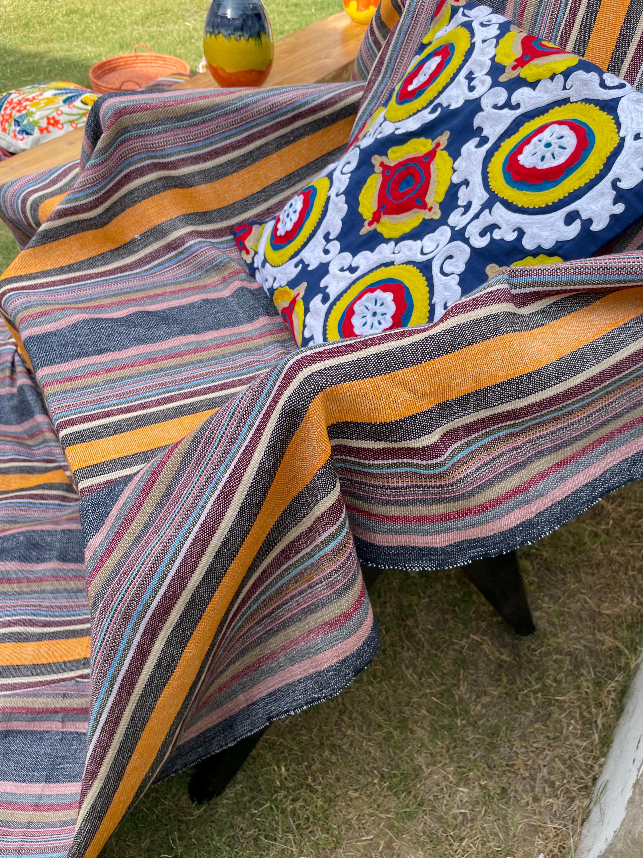 Perfect as a modern striped throw blanket for your couch, bed, or reading nook, this design blends contemporary style with a cozy, lived-in feel. Whether styled as a striped throw blanket for your couch, Use as a bed runner, draped as a colorful throw blanket for bed, or used as a woven tapestry blanket, its vibrant yet grounded color palette complements any décor.