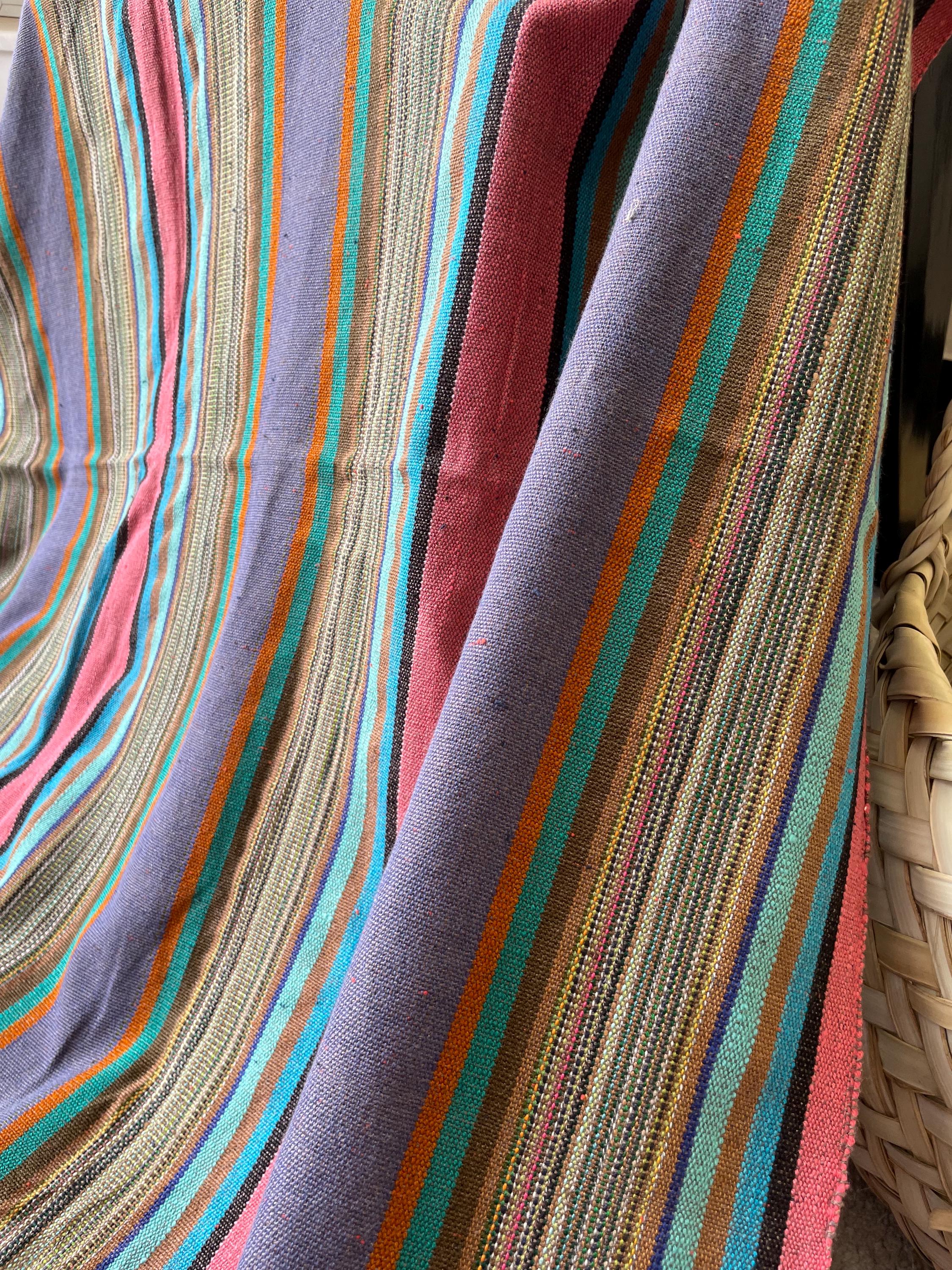 The colorful Striped Throw Blanket brings a playful and modern take on classic striped patterns. Featuring a grid of rich pink, lilic, light brown, muted greens, and creamy neutrals, this woven throw blanket is a statement piece for any space. whilst remaining fairly light weight and not too bulky. The balance between thickness and lightness is perfect for draping your cozy blanket on the arm of your chair. it’s soft, breathable, and finished with a two sided colorful fringe.