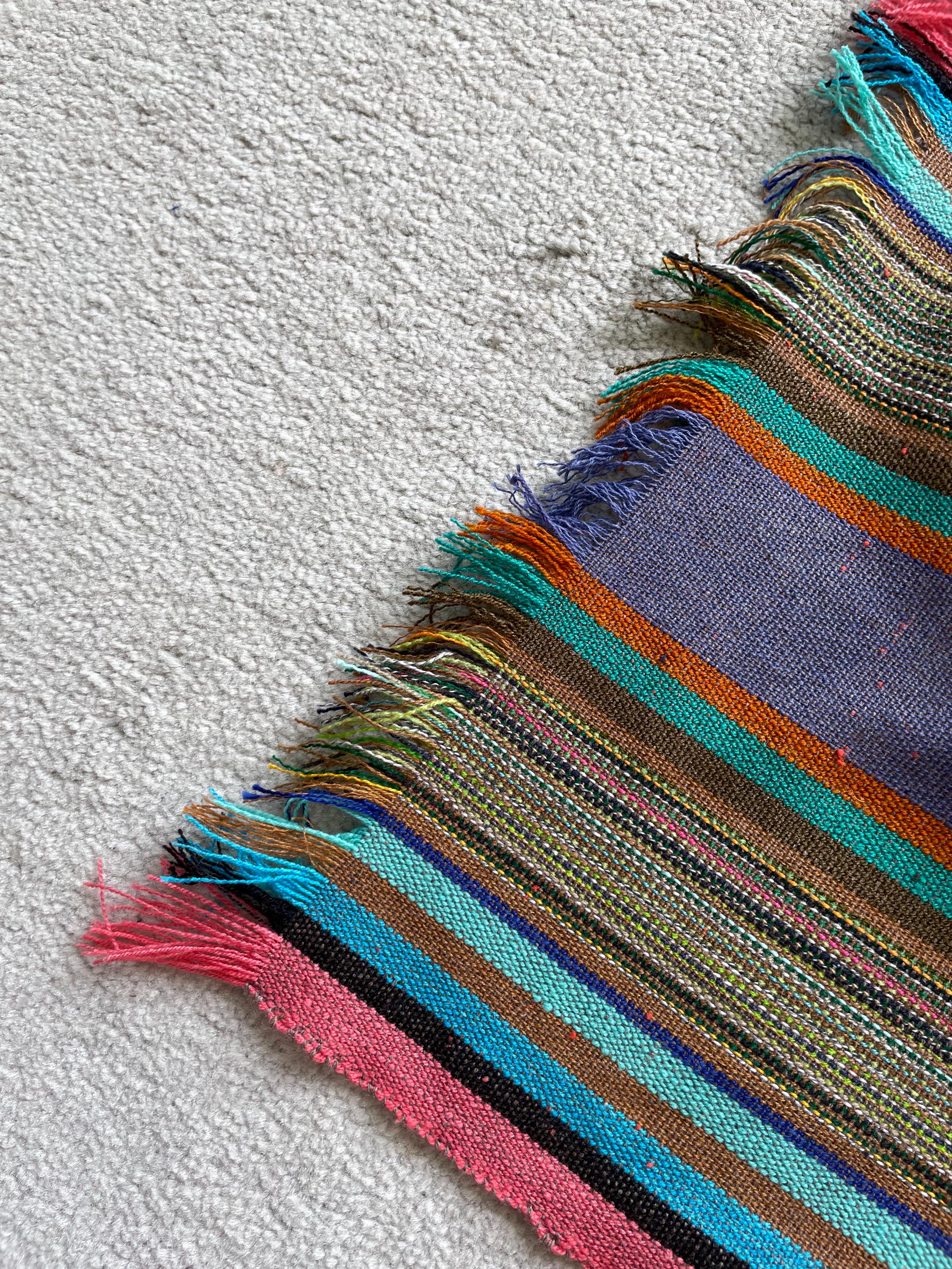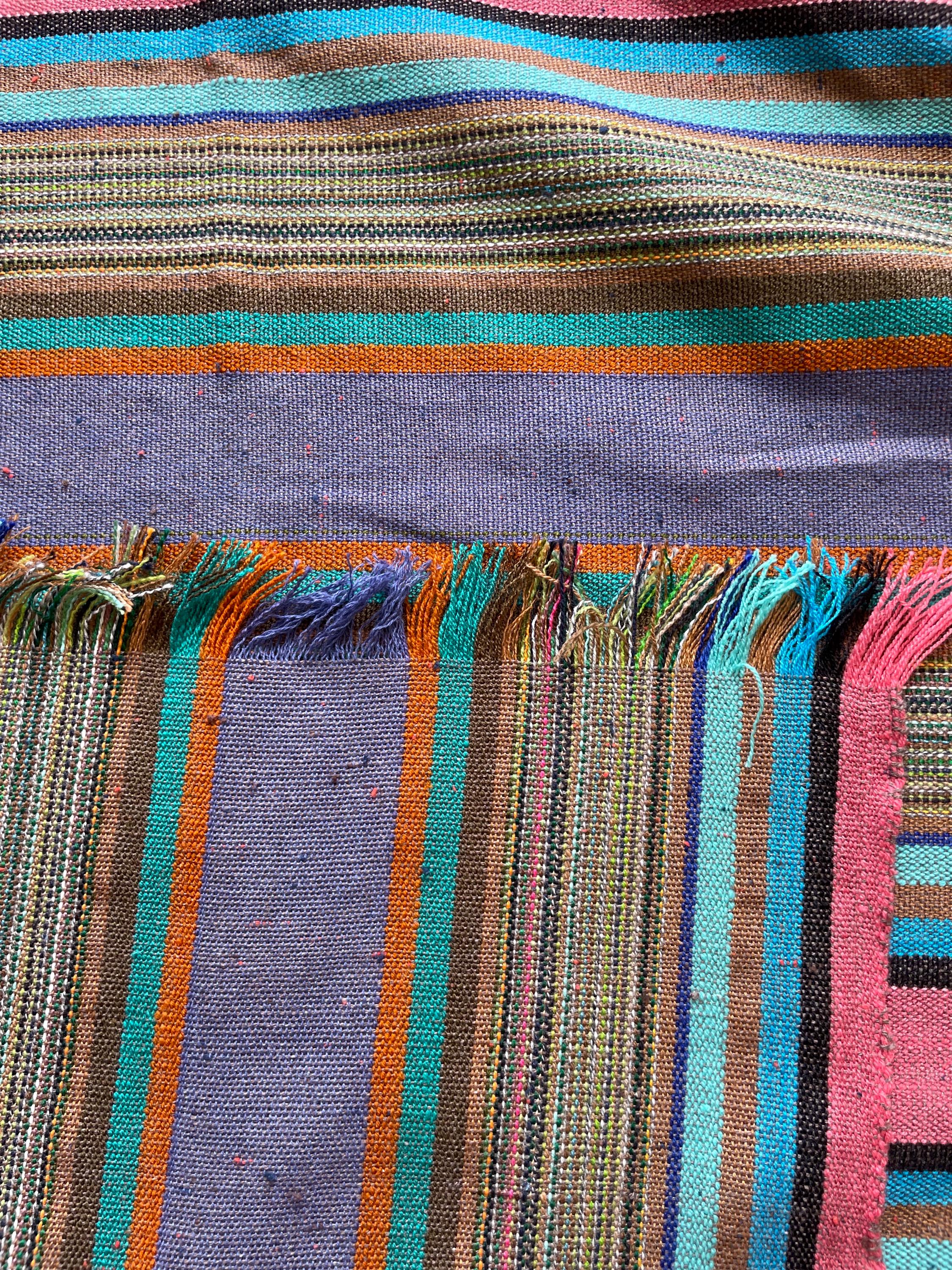 Perfect as a modern striped throw blanket for your couch, bed, or reading nook, this design blends contemporary style with a cozy, lived-in feel. Whether styled as a striped throw blanket for your couch, Use as a bed runner, draped as a colorful throw blanket for bed, or used as a woven tapestry blanket, its vibrant yet grounded color palette complements any décor.