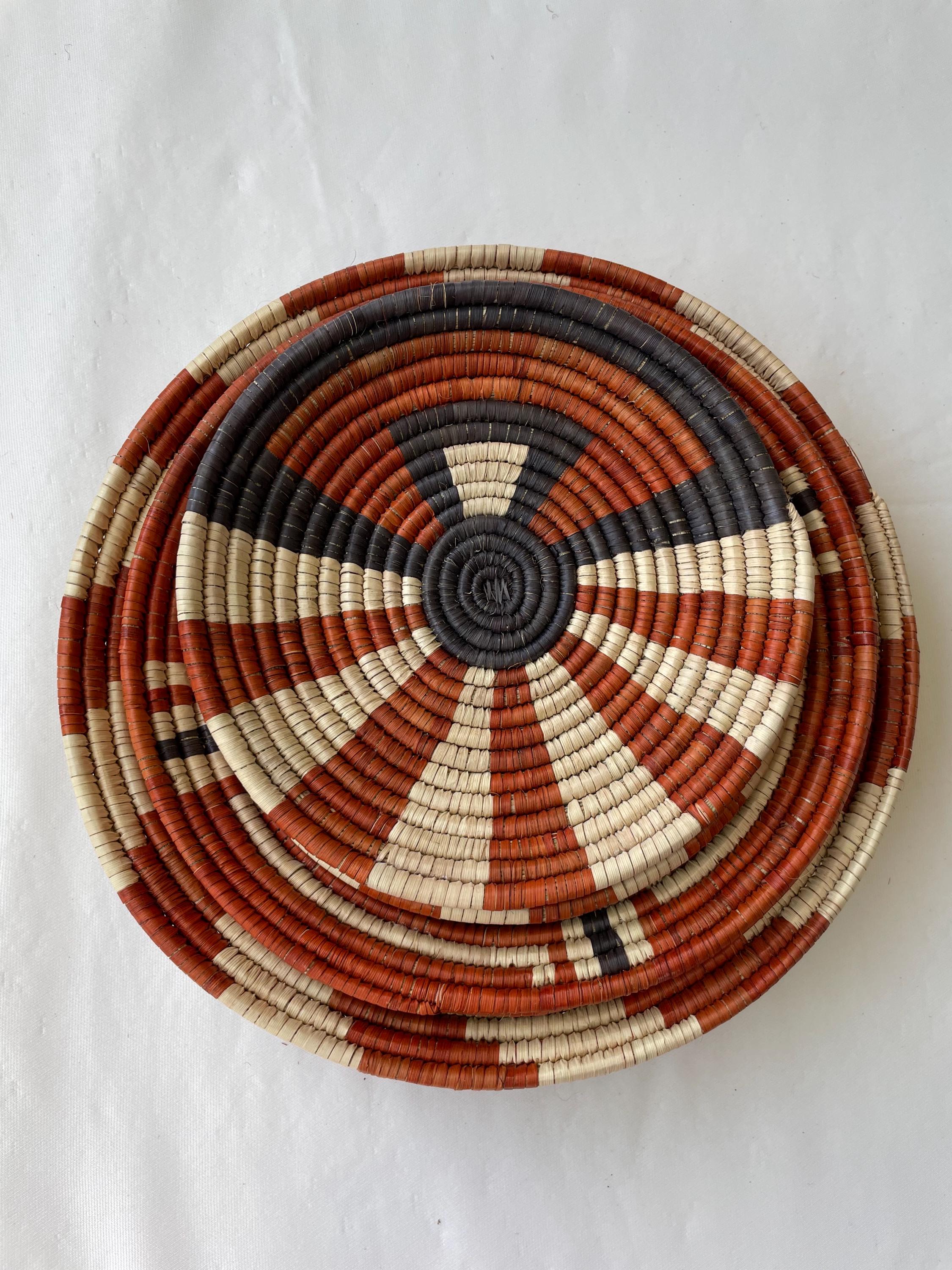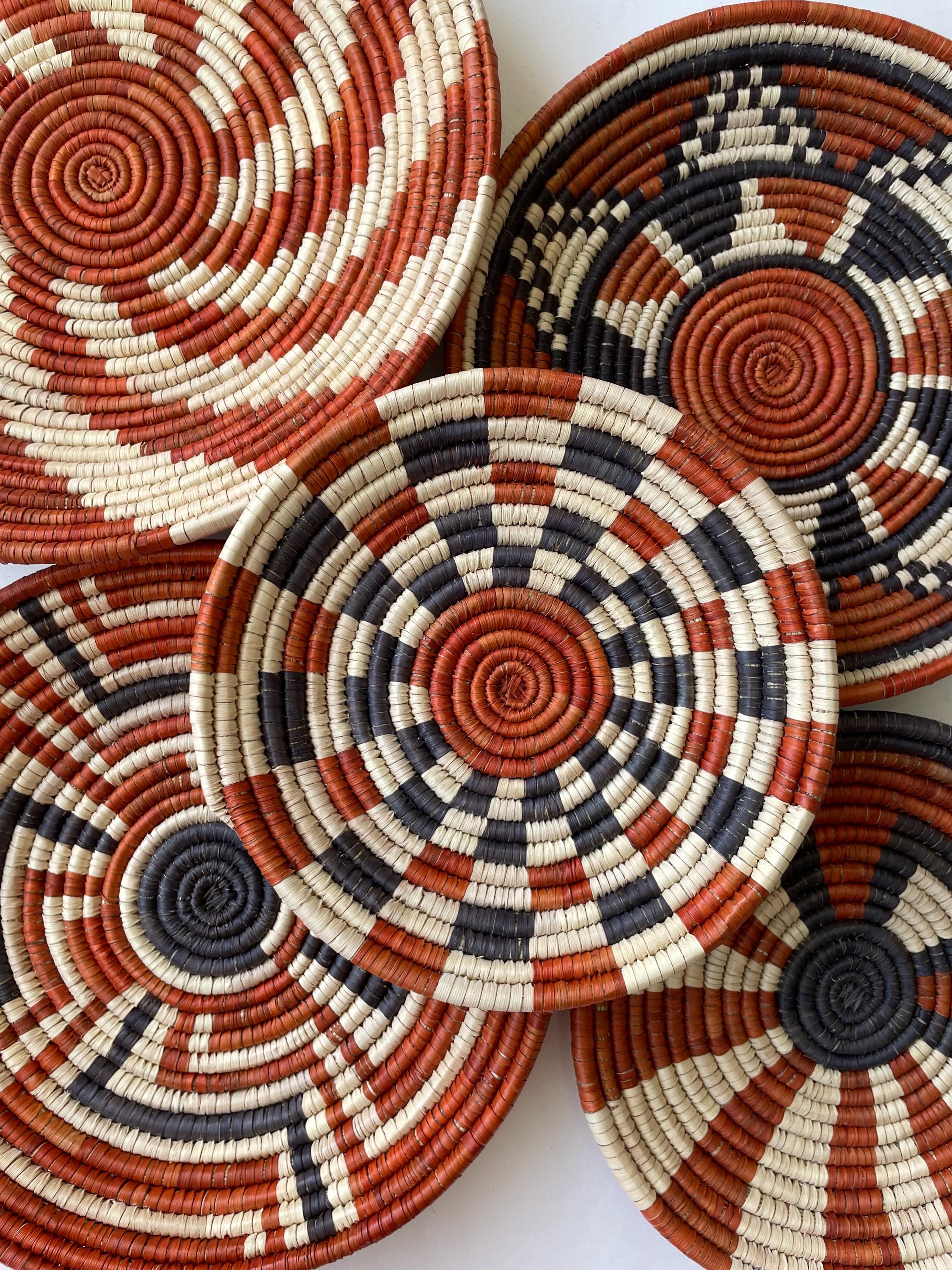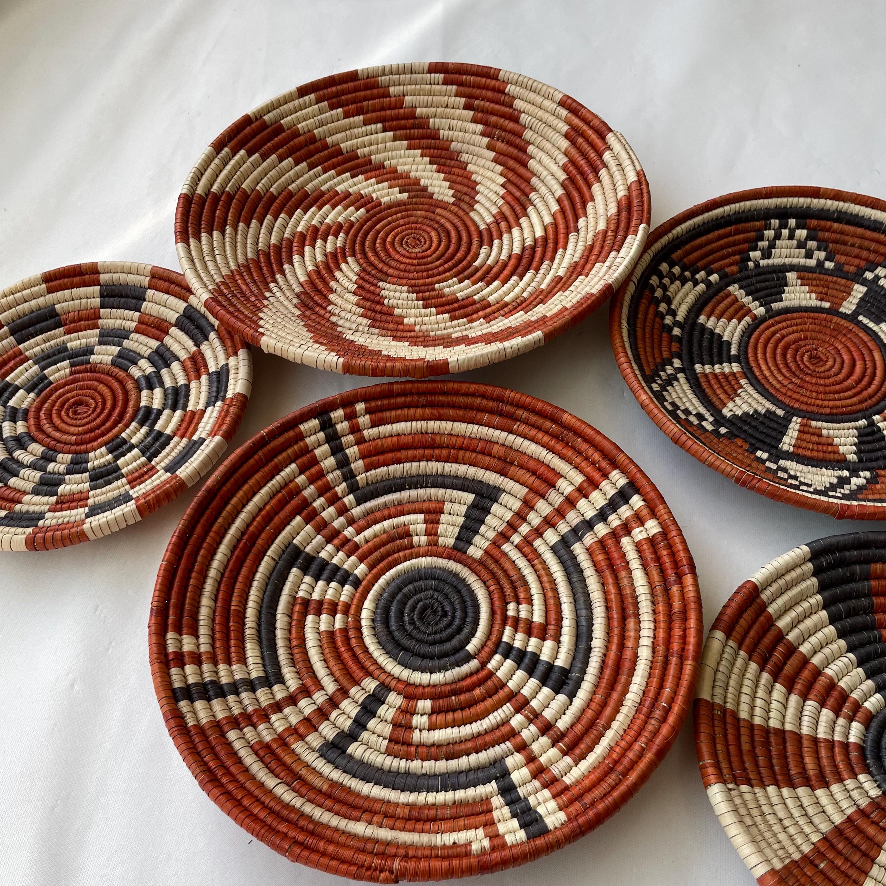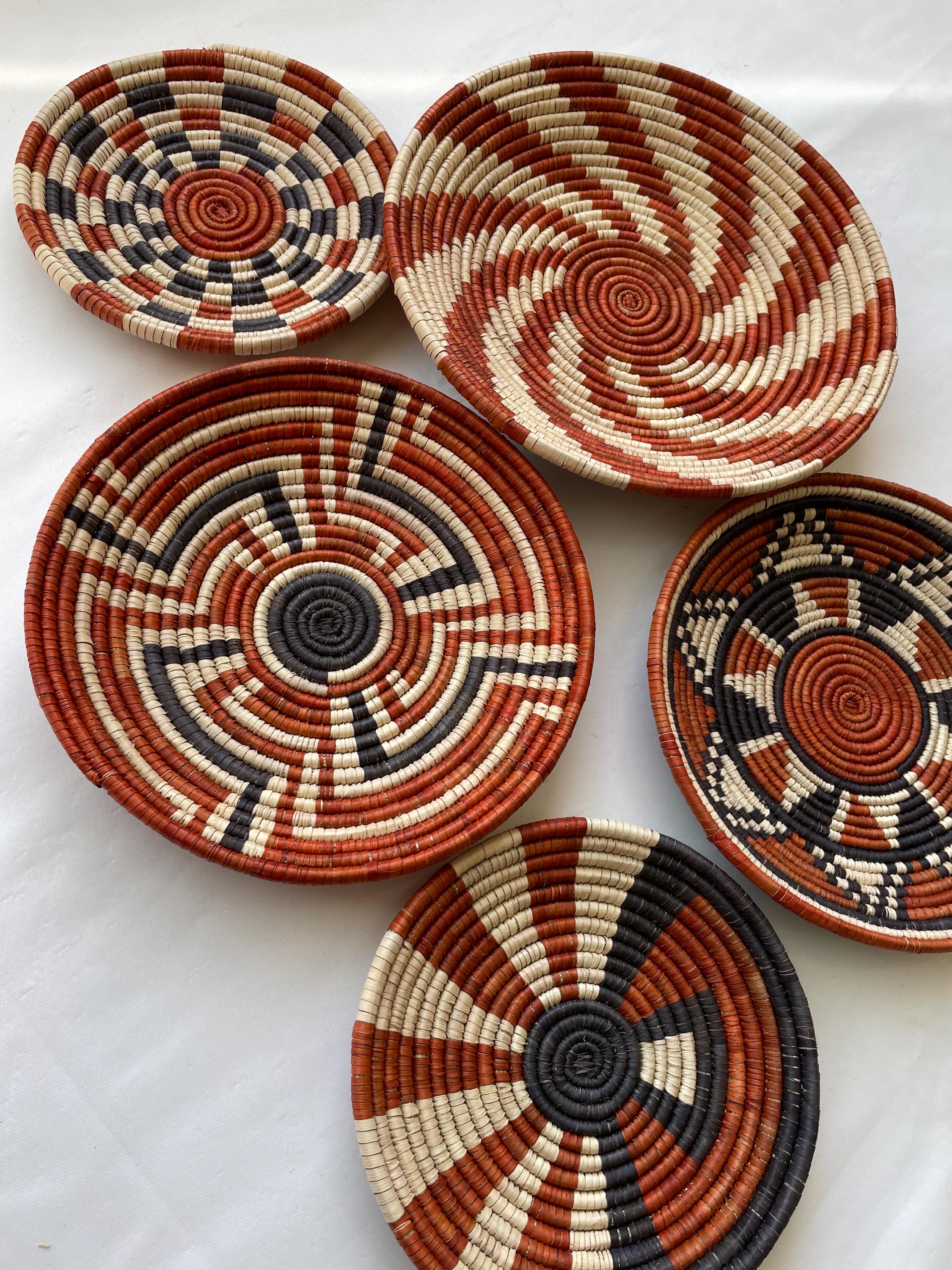 This set of 6 african style wall baskets combines traditional craftsmanship with a contemporary aesthetic, featuring bold, striking patterns that bring an neutral colors to any room, these woven wall baskets add texture, depth, and a globally inspired touch to your decor.