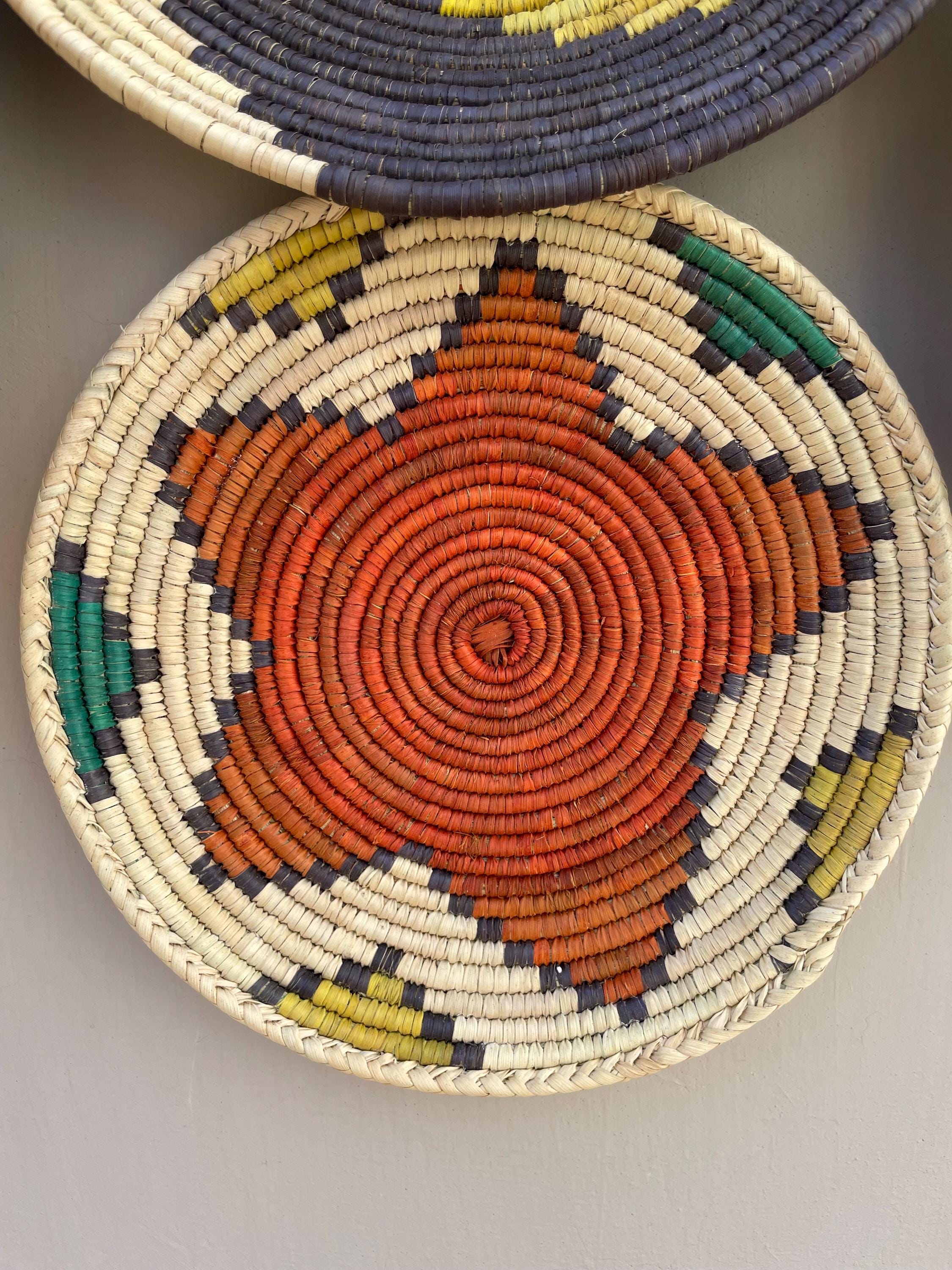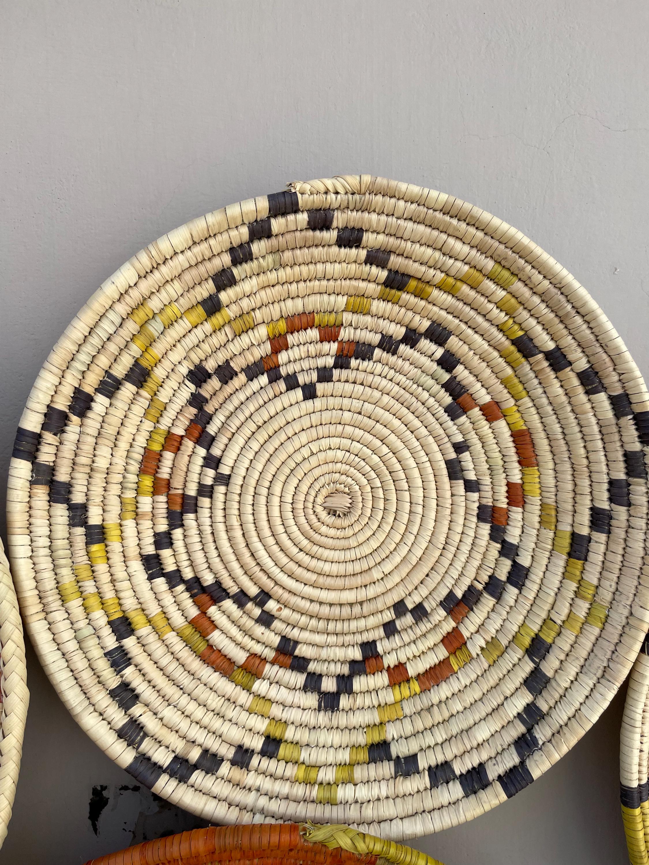 Add warmth, texture, and a touch of global charm to your walls with this beautiful set of handwoven wall baskets. Each basket is carefully crafted by skilled women artisans using high quality natural materials date leaves and grasses, making them not just decor, but a story of tradition and craftsmanship.