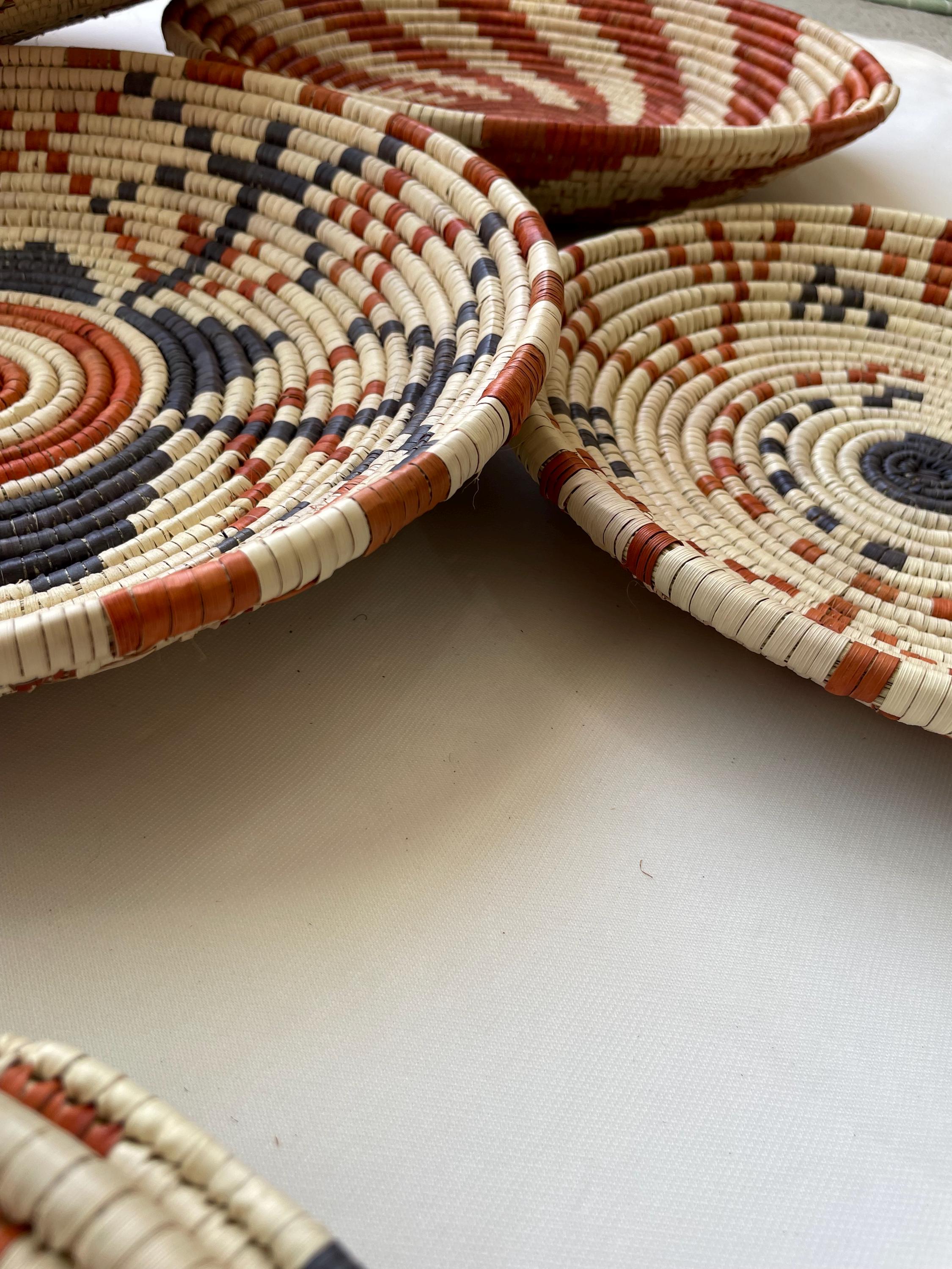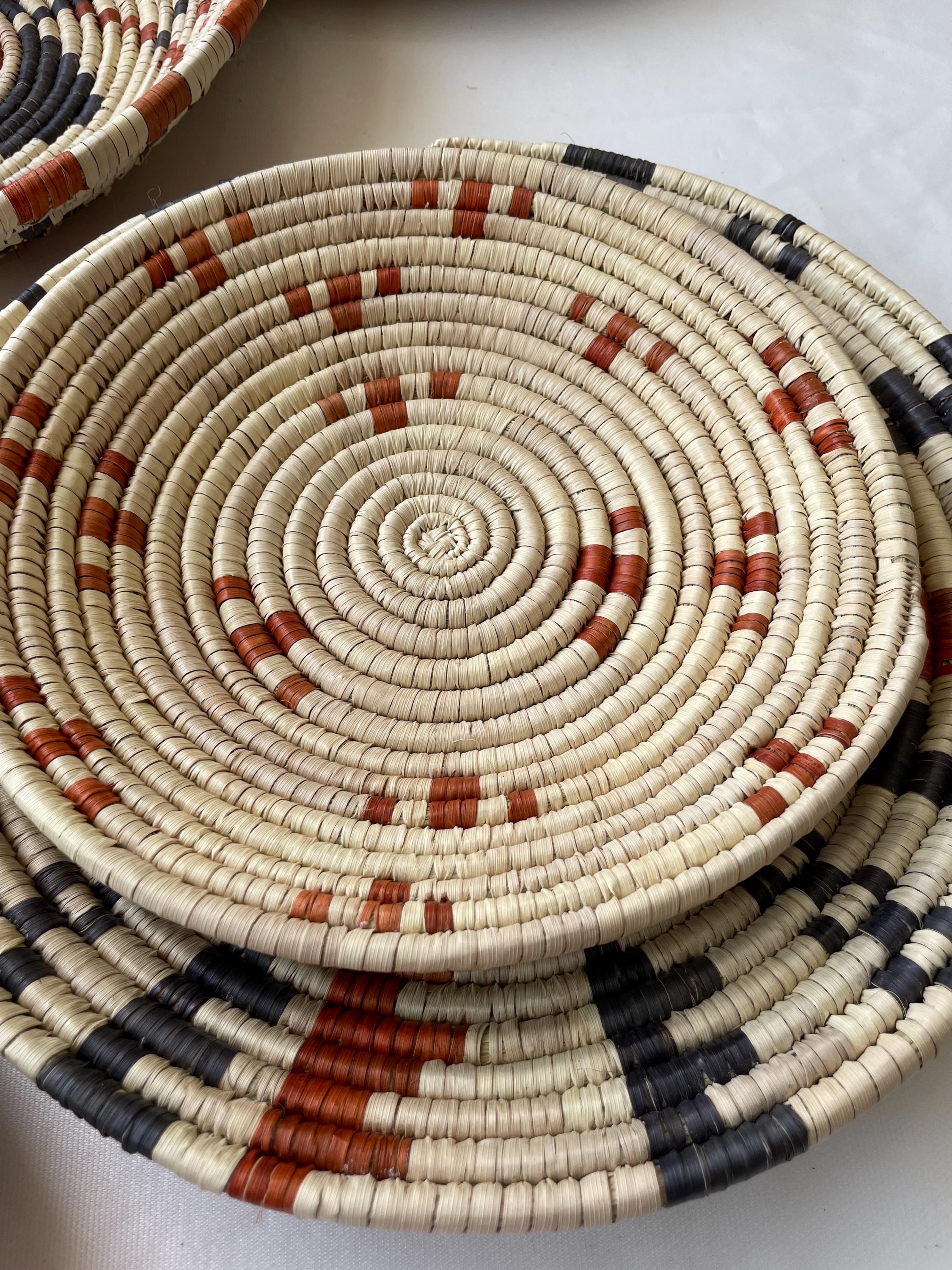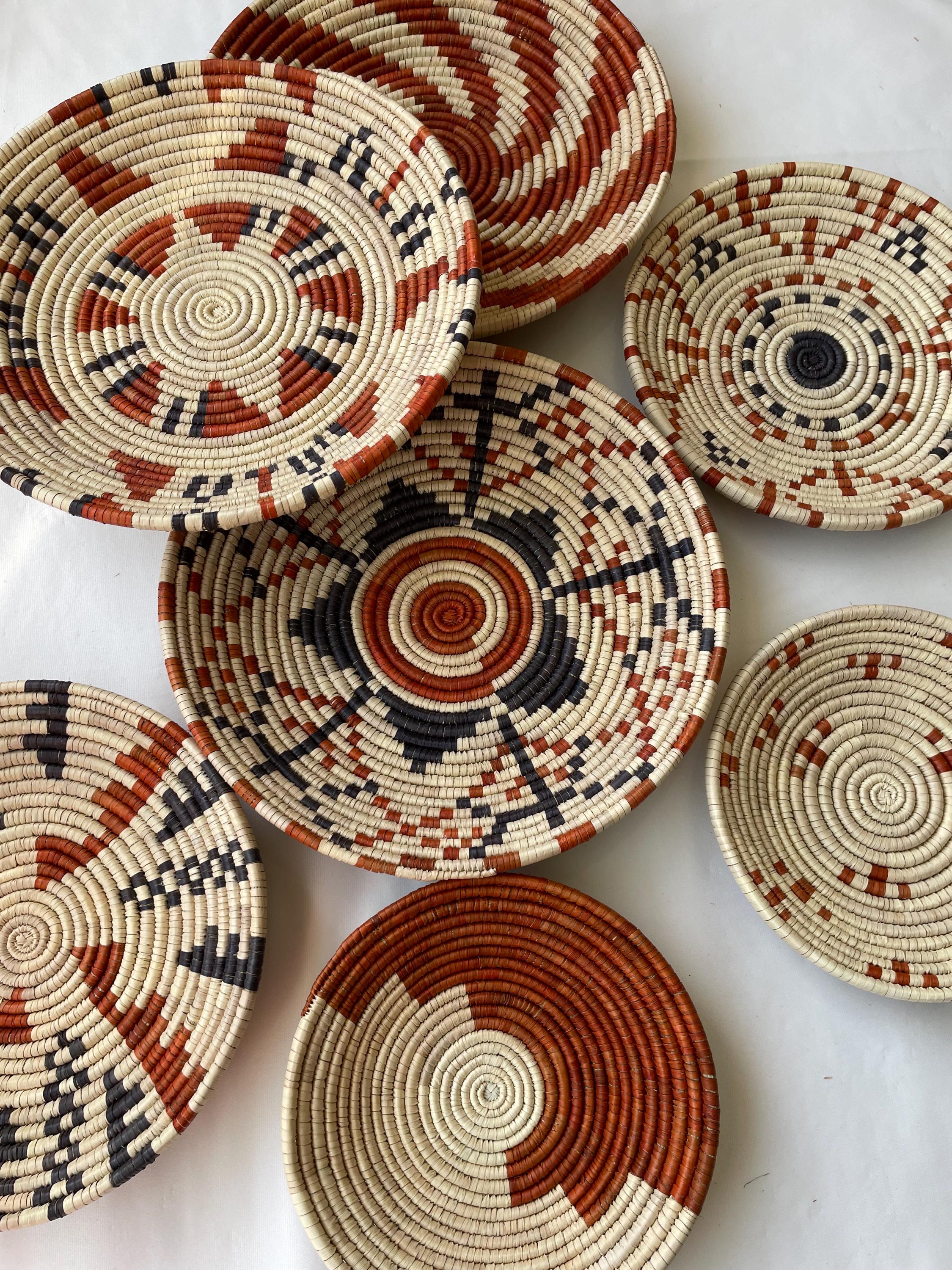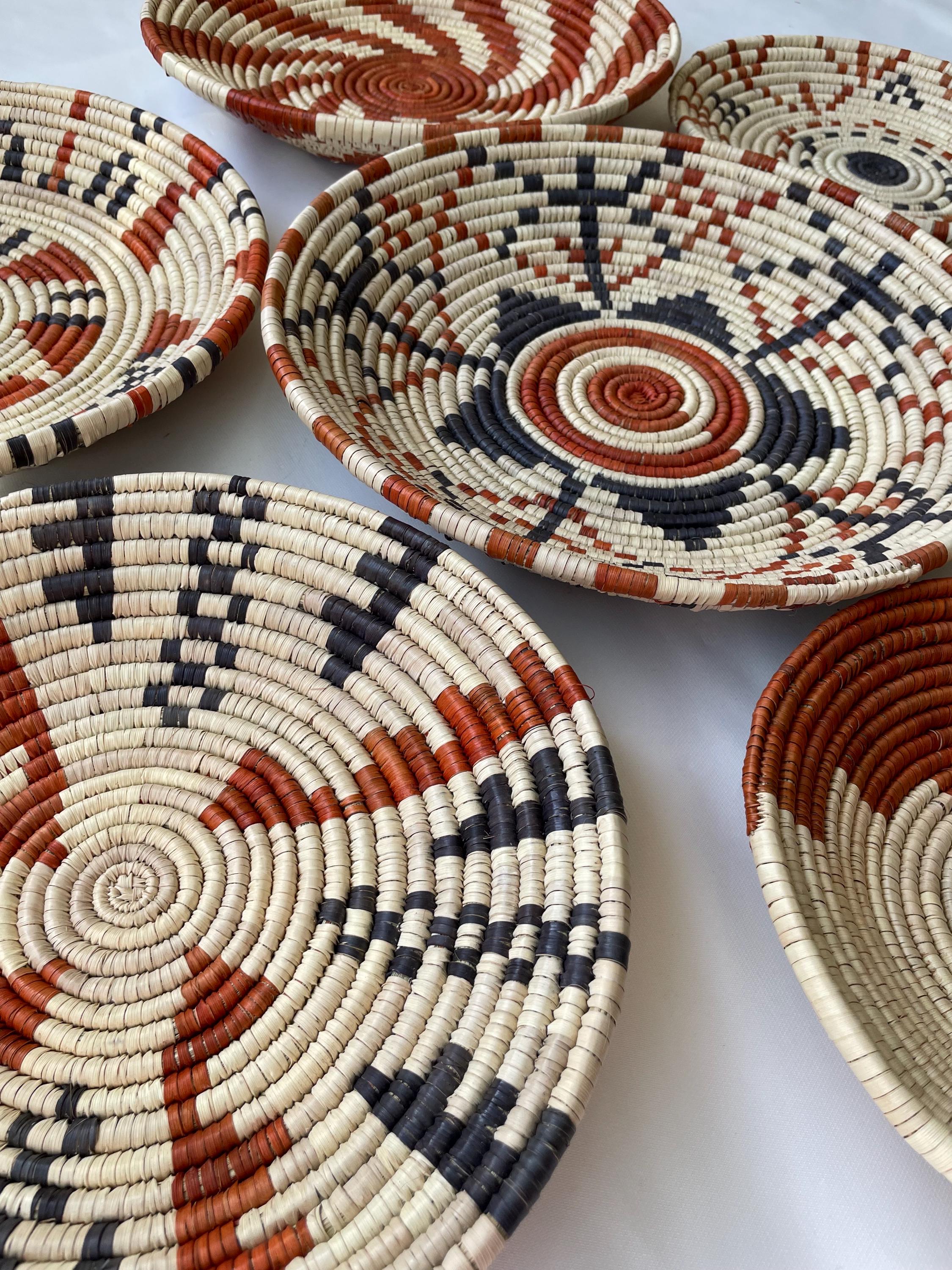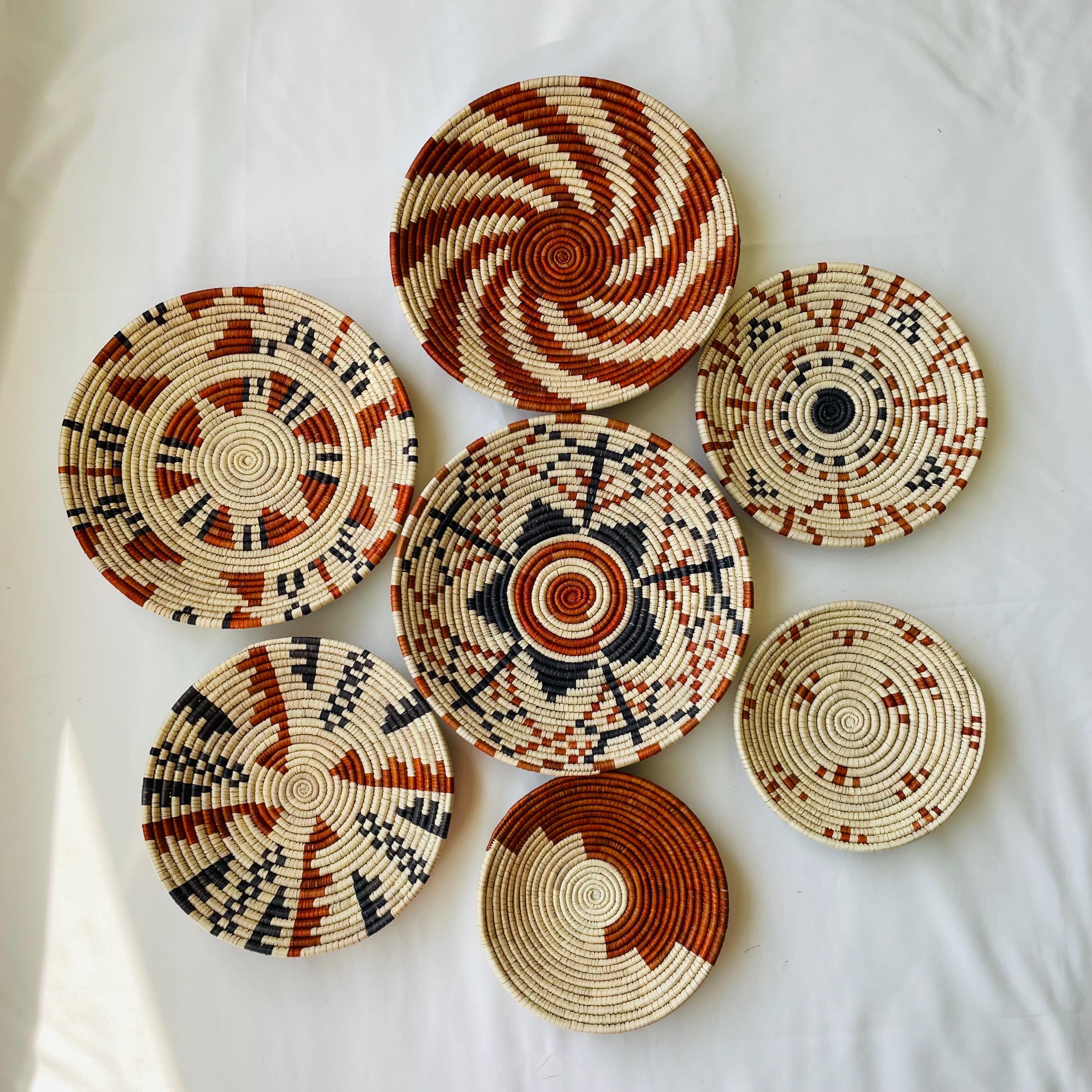 This set of seven boho wall baskets combines traditional craftsmanship with a contemporary aesthetic, featuring bold, striking patterns that bring an neutral colors to any room, these woven wall baskets add texture, depth, and a globally inspired touch to your decor.