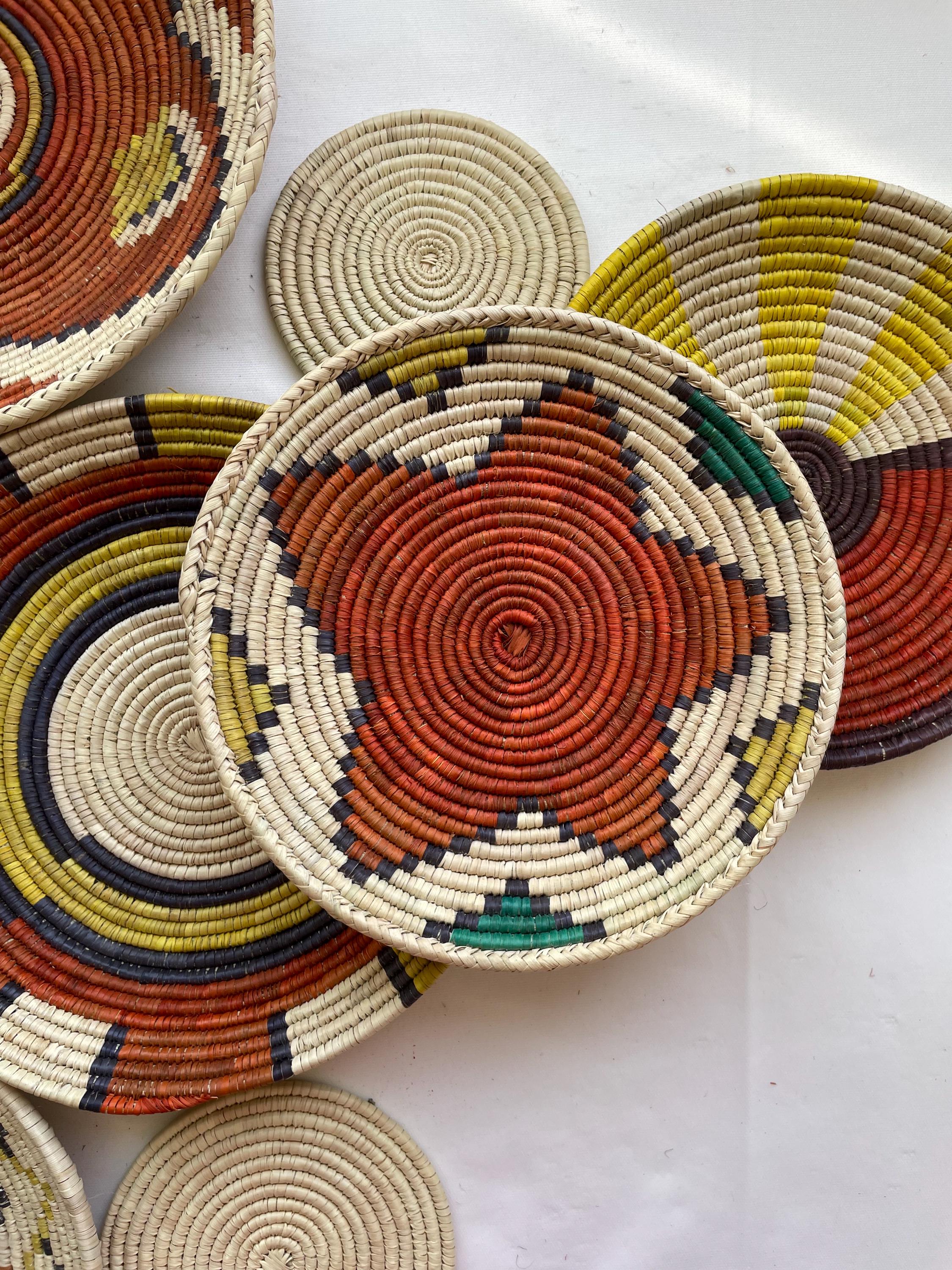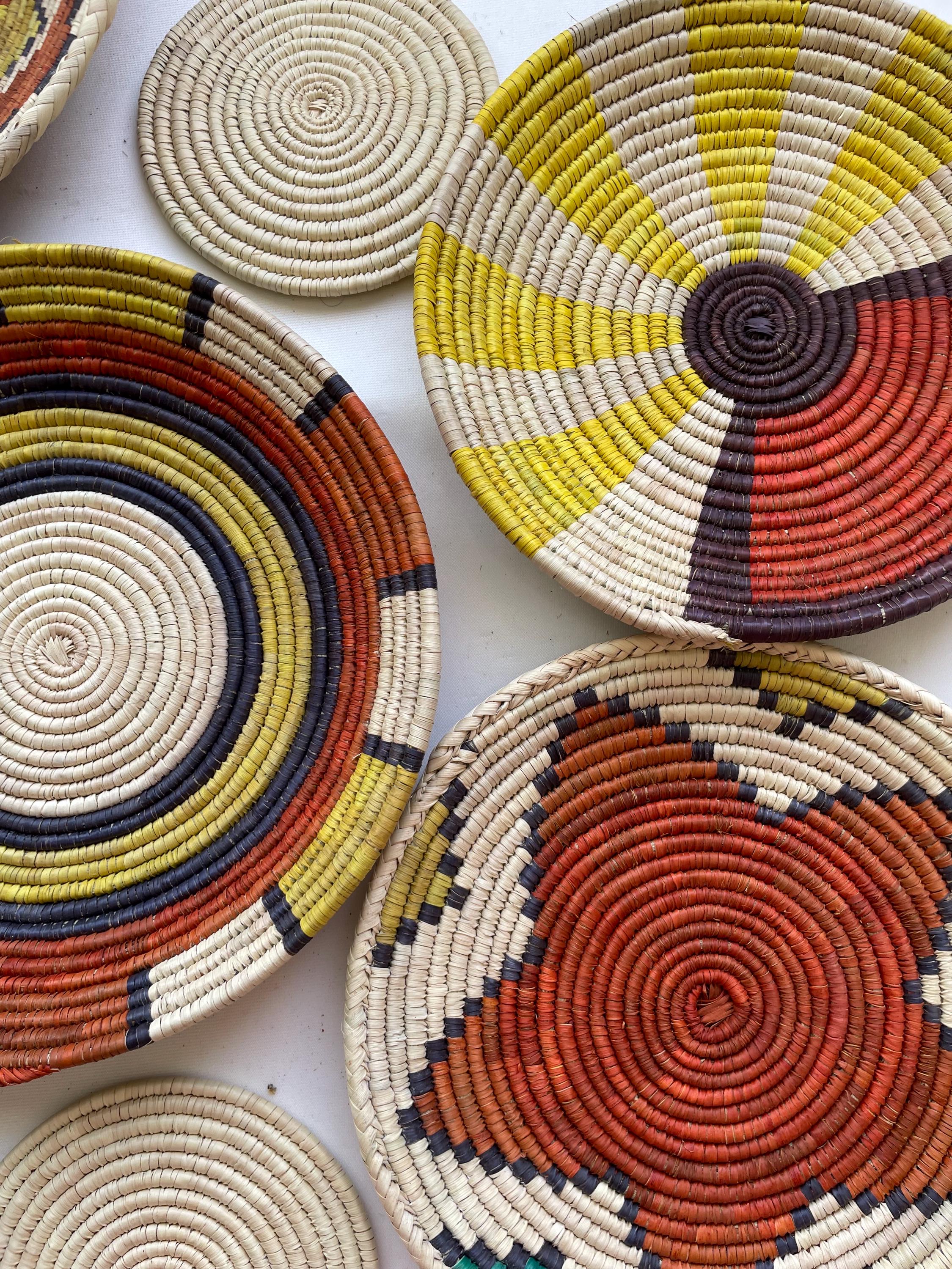 These african style baskets feature stunning spiral, sunburst, and geometric tribal patterns that instantly bring life and character to any space. Whether you’re creating a bohemian gallery wall, adding a rustic touch to your dining area, or styling a cozy corner in your bedroom, these baskets make a versatile and eye-catching statement.