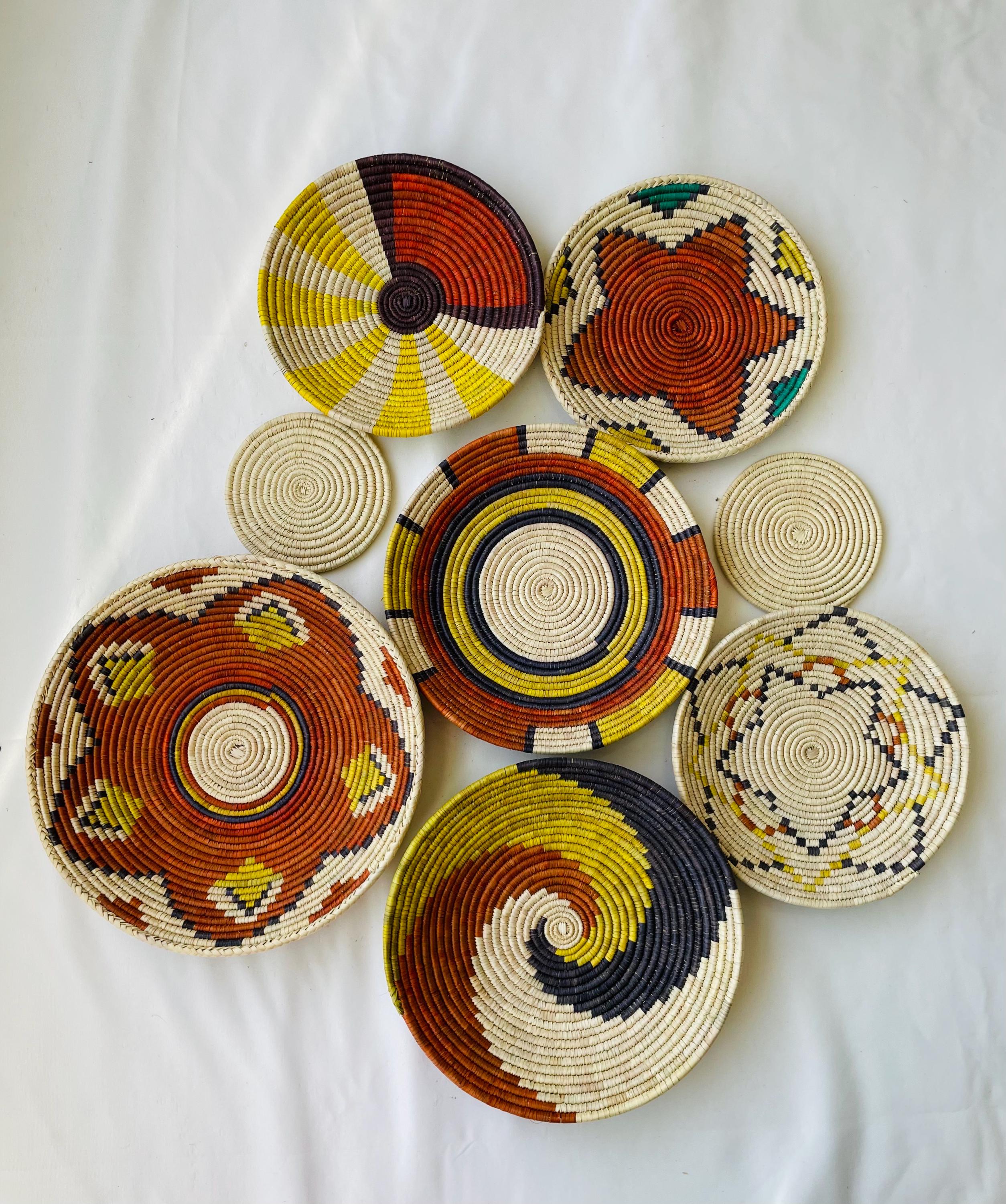 Add warmth, texture, and a touch of global charm to your walls with this beautiful set of 8 boho wall baskets. Each basket is carefully crafted by skilled women artisans using high quality natural materials date leaves and grasses, making them not just decor, but a story of tradition and craftsmanship.