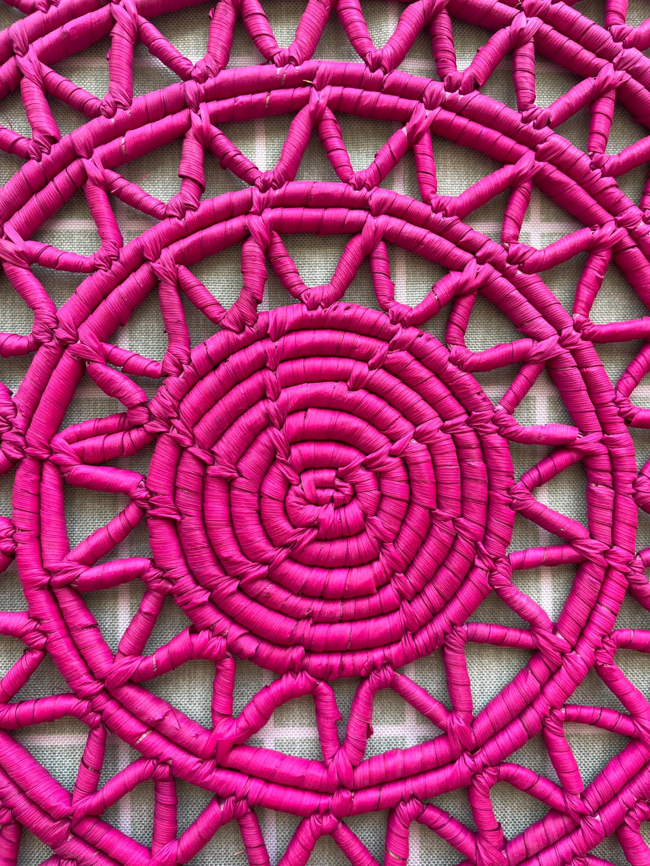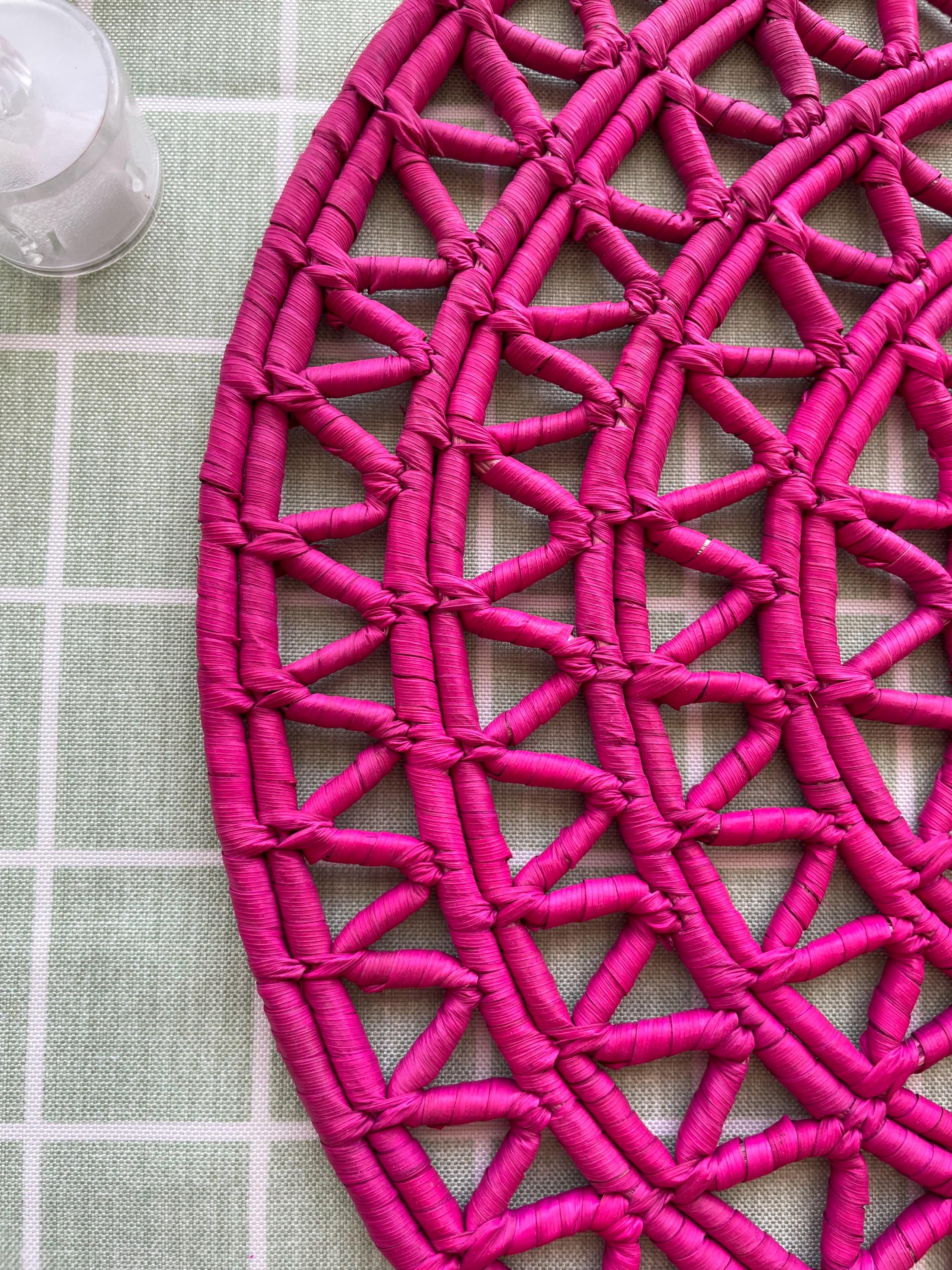 Each hot pink placemat is carefully crafted by skilled artisans and features a vibrant pink and natural color scheme that adds a pop of color to your dining room.