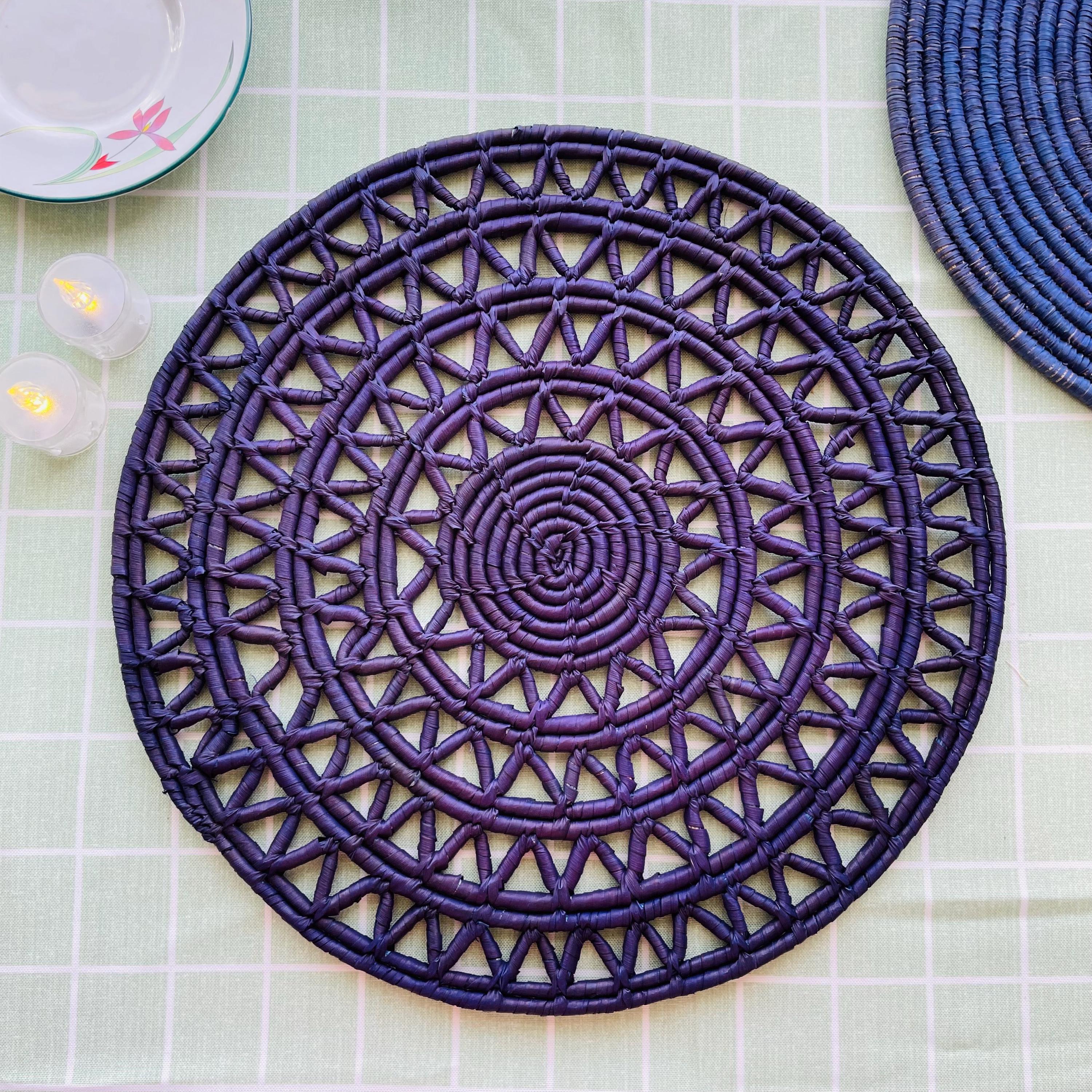 Rustic Placemats are an easy way to elevate your table from everyday meals to special occasions. These classic, simple, and elegant blue round placemats are use it as table centerpiece, dining tabel mats, a side table mat, console mat, farmhouse dining decor, or a garden party table decor and also add a charming touch to festive settings like Easter or weddings.